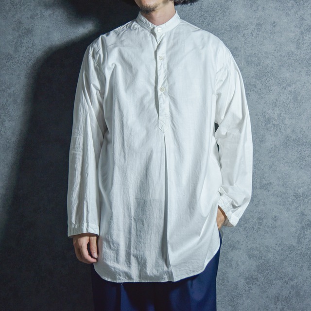 Thousand Mile (サウザンドマイル)は1993年に米国カリフォルニア州南端に位置するサンディエゴでローカルのライフガードにより設立されました。 自分たちが着たいと思えるタフで機能的な服がないという悩みからスタートしており、ブランド名には「1000マイルの長旅に出かけても、快適に過ごせるウェア」という願いが込められています。 オリジナルのアイテムをフォルクスワーゲンバスに積み込みビーチで販売するようになり次第にビジネスとして成り立っていきます。 こちらはいわゆる国内で流通しているライセンスモノではなく、アメリカ本国で企画生産されているアイテム。 厚手のガシッとした生地感が特徴の布帛素材でワークウェアやミリタリーウェアにみられるタフな雰囲気ながら、ポロシャツのような衿のディテール、スリットなどバランスの良いデザインです。 ボックスシルエットでラフな雰囲気のあるシルエットで良い意味で雑に使えるカジュアルなアイテム。 洗い込んでいきながら長く愛用していける実用性の高いグッドピースです。 【color】 ネイビー 【condition】 こちらはデッドストックのアイテムです。 特記するダメージ等は写真、またはテキストにてご説明しておりますが、生産されてから長期間経過しておりますので、経年変化等ございますが、風合いとしてご理解頂き、ご購入下さい。 【size 】 着丈 約77cm 身幅 約62cm 肩幅 約51cm 袖丈 約64cm ※サイズ計測の多少の誤差はご了承下さい。 【model】 173cm 60kg --返品・交換に関して-- 商品にご満足いただけなかった場合、お届け後3日以内に当店までご連絡いただければ、返品・交換を承ります。 なお、商品は返送後に未使用であると当店が判断でさせて頂いた場合のみ返品・交換を受け付けます。 サイズ交換など、お客様都合による返品の場合は、往復送料はお客様負担となります。 商品到着後、お手数ですが商品状態をご確認いただき、写真との相違、不良品等がある場合は下記、メールアドレスまでお早めにご連絡ください。 [email protected] ーー配送に関してーー ご注文いただいてから3営業日以内を目処に発送いたします。(土日祝日、年末年始(12/29〜1/3)の発送は行っておりません。) ※1)送料に関しましてはシステム上、個別設定ができないため全国一律800円を頂戴しております。 税込11,000円以上お買い上げで送料無料です。 ※2)配送にはヤマト運輸(株)を利用しており、宅急便だけでなく宅急便コンパクト、ネコポスでお送りさせて頂く場合もございますのであらかじめご了承下さい。 レビューを書いて下さる方には、簡単なノベルティをプレゼントします。 購入時、要望の備考欄に『ノベルティ希望』と入力の上、ご購入お願いします。