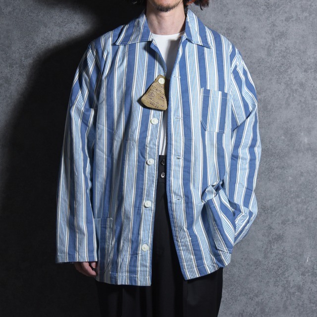 Haband(ハバンド)よりジップアップジャケットのご紹介。 1925年にアメリカで創業した歴史のあるブランドで、当時のアメリカにおけるワーカーや一般消費者向けの機能的でタフなライフスタイルウェアを提供していました。 フロントはジップアップ、両胸に配置された逆ハの字のファスナーがアクセントになっており、フラップ付きの腰ポケットはハンドウォーマーとしても使える機能的なデザイン。 いわゆる軽めのT/Cツイルで、綿にポリエステルを混紡することで、コットン100%よりもシワになりにくく、速乾性と耐久性を高めている当時のアメリカのワーク・カジュアルウェアで信頼されていたテキスタイルです。 身幅にもゆとりがあるボックスシルエット重ね着しやすく、春先、秋口はもちろん季節の変わり目や肌寒い梅雨時期の羽織りとしても活躍の機会も多い機能的なジャケットです。 【color】 ベージュ 【Material】 コットン ポリエステル 【condition】 こちらユーズドのアイテムです。 特記するダメージ等は写真、またはテキストにてご説明しておりますが、生産されてから長期間経過しておりますので、経年変化等ございますが、風合いとしてご理解頂き、ご購入下さい。 【size spec】 着丈 約69cm 身幅 約60cm 肩幅 約50cm 袖丈 約63cm ※サイズ計測の多少の誤差はご了承下さい。 【model】 173cm 60kg --返品・交換に関して-- 商品にご満足いただけなかった場合、お届け後3日以内に当店までご連絡いただければ、返品・交換を承ります。 なお、商品は返送後に未使用であると当店が判断でさせて頂いた場合のみ返品・交換を受け付けます。 サイズ交換など、お客様都合による返品の場合は、往復送料はお客様負担となります。 商品到着後、お手数ですが商品状態をご確認いただき、写真との相違、不良品等がある場合は下記、メールアドレスまでお早めにご連絡ください。 [email protected] ーー配送に関してーー ご注文いただいてから3営業日以内を目処に発送いたします。(土日祝日、年末年始(12/29〜1/3)の発送は行っておりません。) ※1)送料に関しましてはシステム上、個別設定ができないため全国一律800円を頂戴しております。 税込11,000円以上お買い上げで送料無料です。 ※2)配送にはヤマト運輸(株)を利用しており、宅急便だけでなく宅急便コンパクト、ネコポスでお送りさせて頂く場合もございますのであらかじめご了承下さい。 レビューを書いて下さる方には、簡単なノベルティをプレゼントします。 購入時、要望の備考欄に『ノベルティ希望』と入力の上、ご購入お願いします。