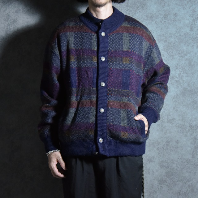 80s Spain Wool Jacquard Cardigan スペイン製 ウール ジャガード カーディガン