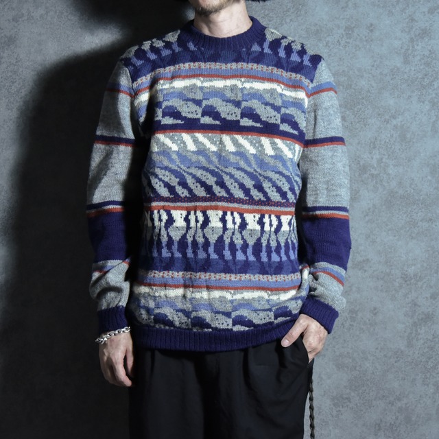 70-80s Italia NOBA1950 Jacquard Knit Jacket イタリア製 ジャガード ニット ジャケット