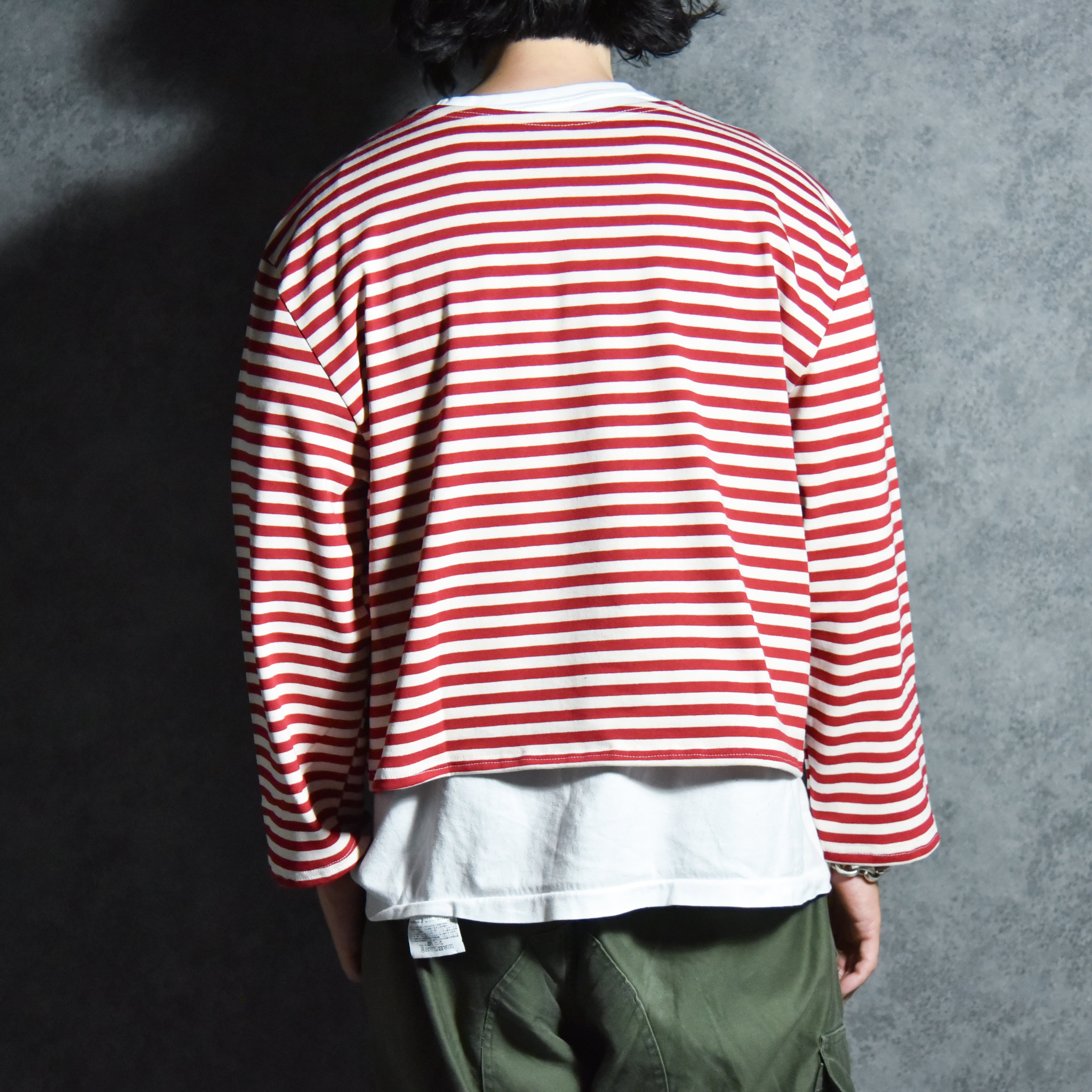 【DEAD STOCK】Remake Russian Army Border Long Sleeve T-shirts Red ロシア軍 ボーダー ロンT レッド リメイク クロップド丈