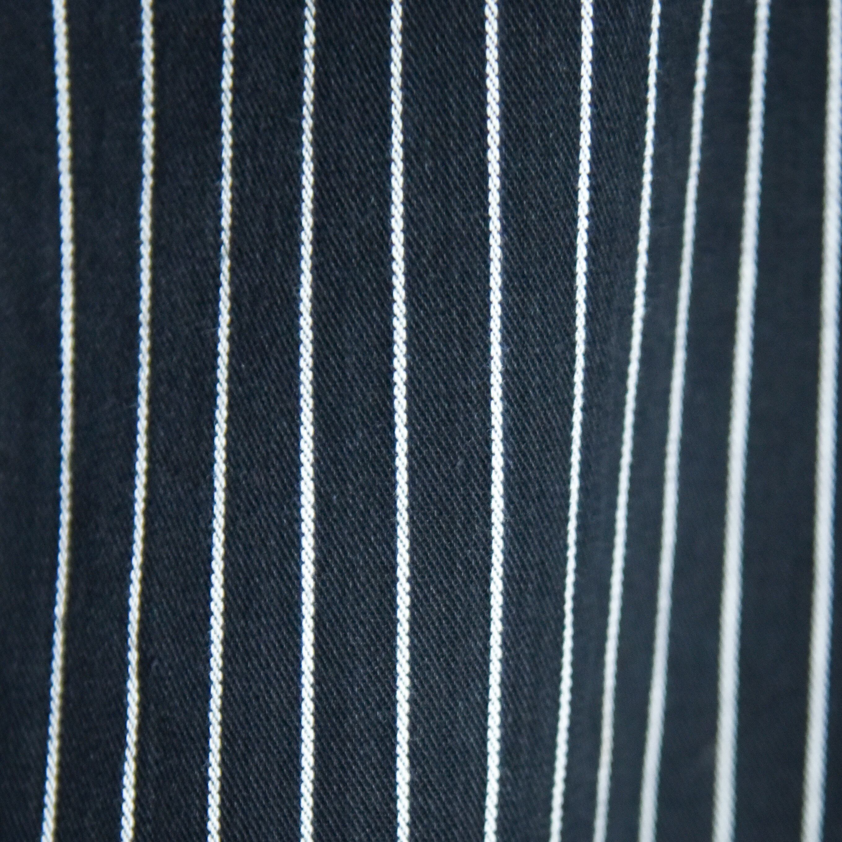 生地はサラッとした肌触りの春から秋にかけて最適なコットン素材で、ネイビーボディにシェフパンツらしいホワイトストライプが映える合わせやすい色柄です。