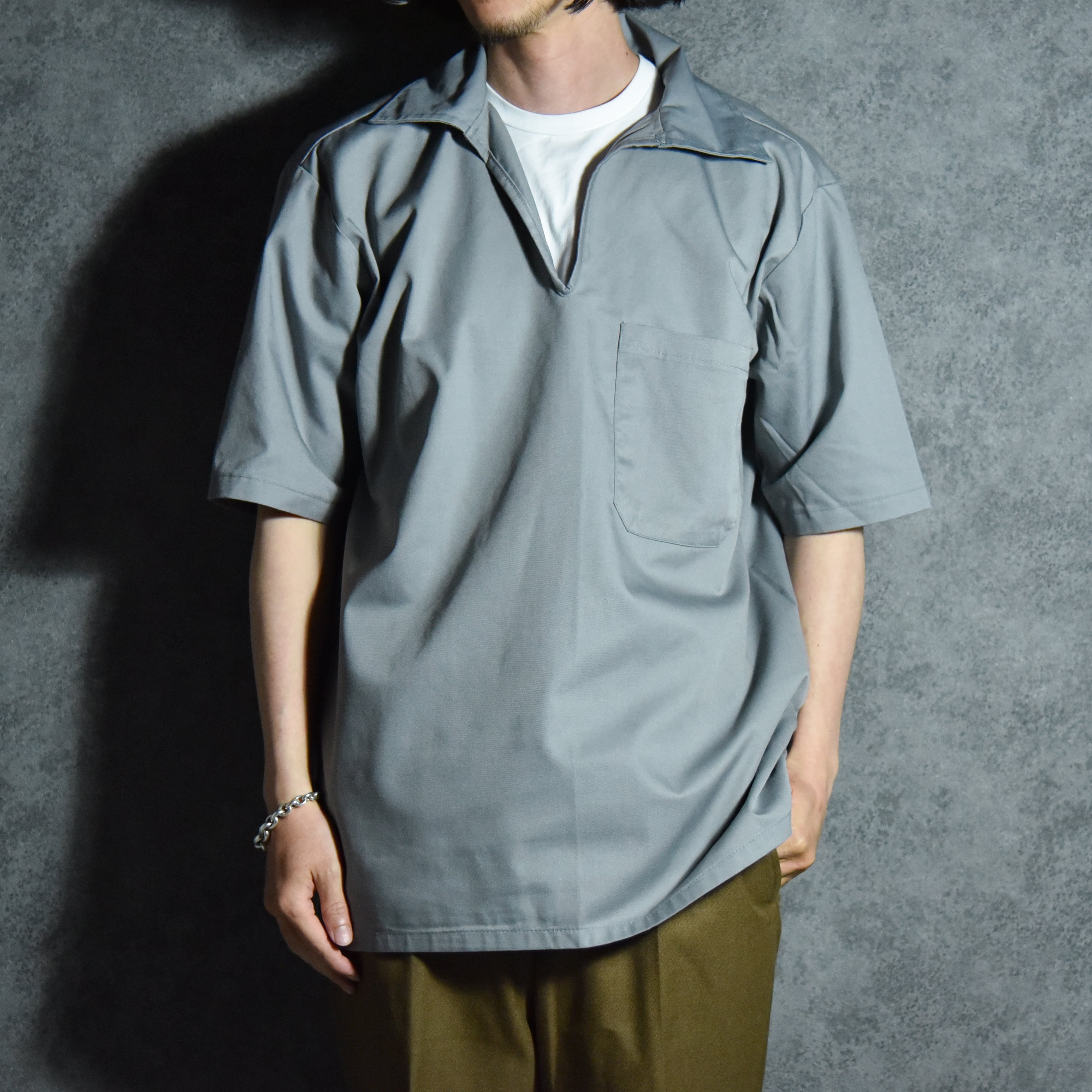【DEAD STOCK】US Prisoner Skipper Shirts Short Sleeve Gray アメリカ プリズナー スキッパー シャツ 半袖