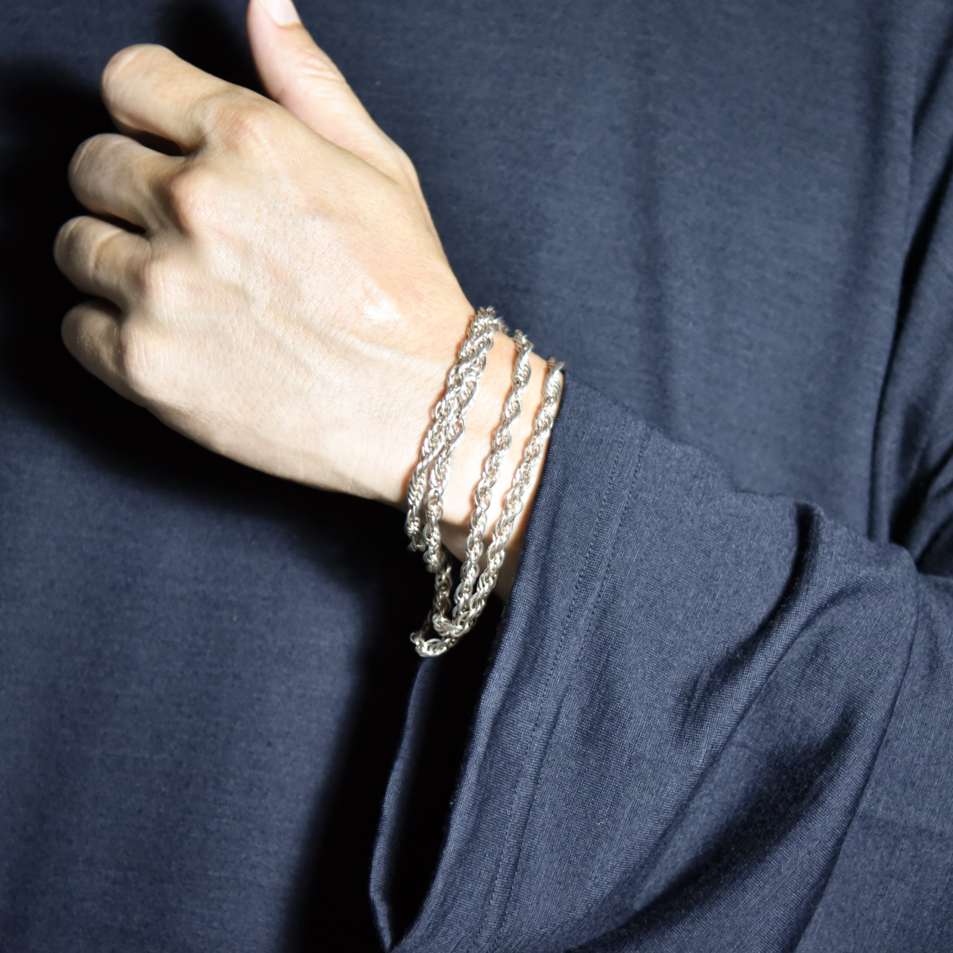 長めの設定なので単体での着用はもちろん、ペンダントトップを合わせたり、他のネックレスとの重ね付け、腕に巻くなどアレンジもおすすめです。