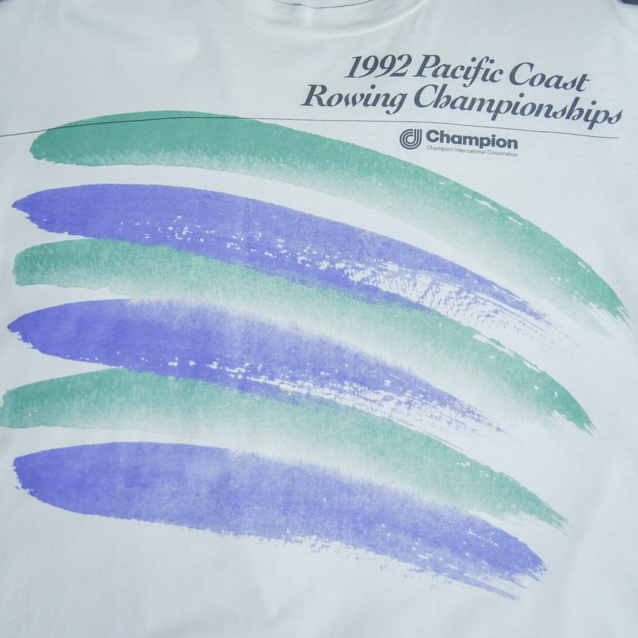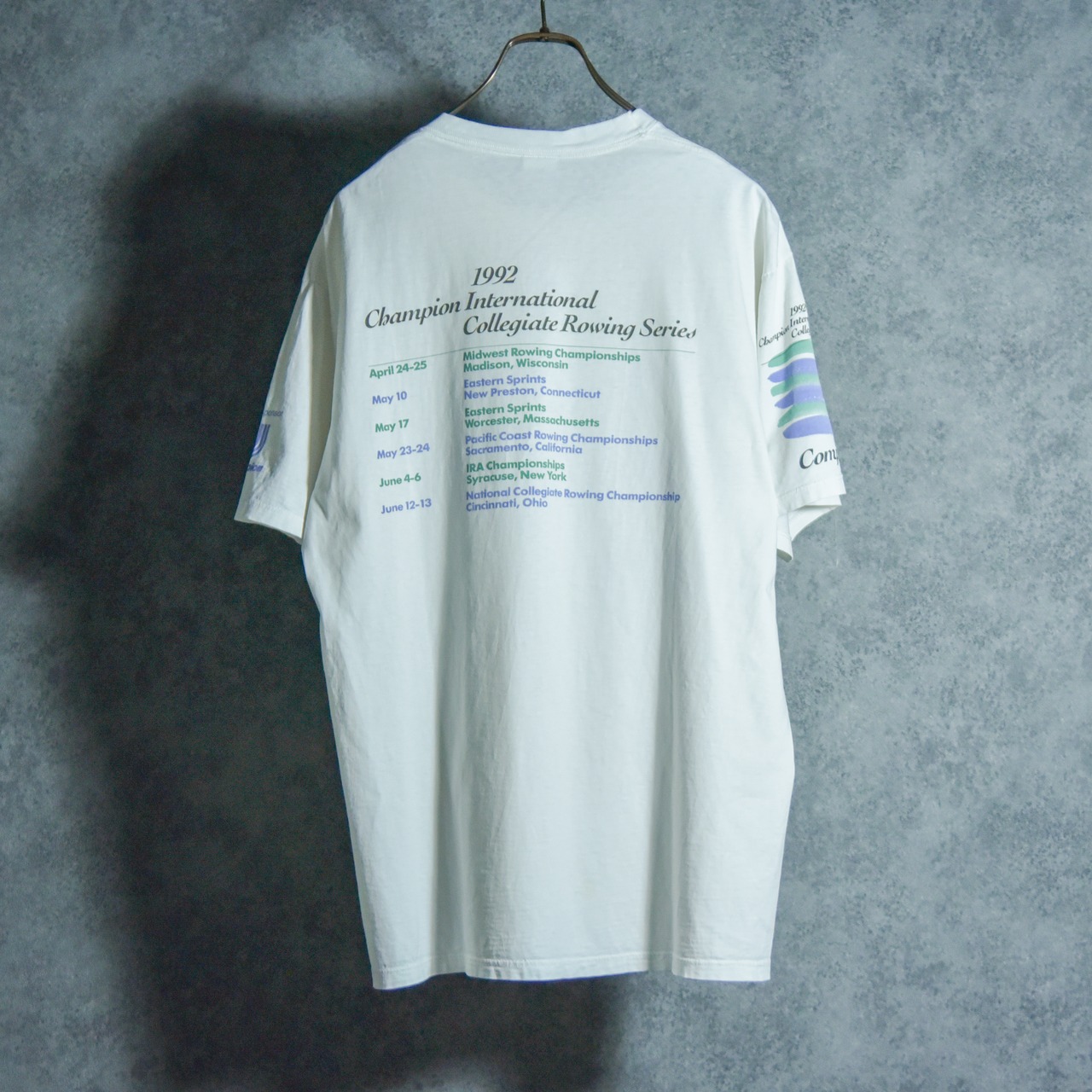champion international corporation というかつて存在した大手製紙・木材製品会社がスポンサーをしていたローイング(ボート競技)アメリカ国内の学生大会の1992年の記念Tシャツ。