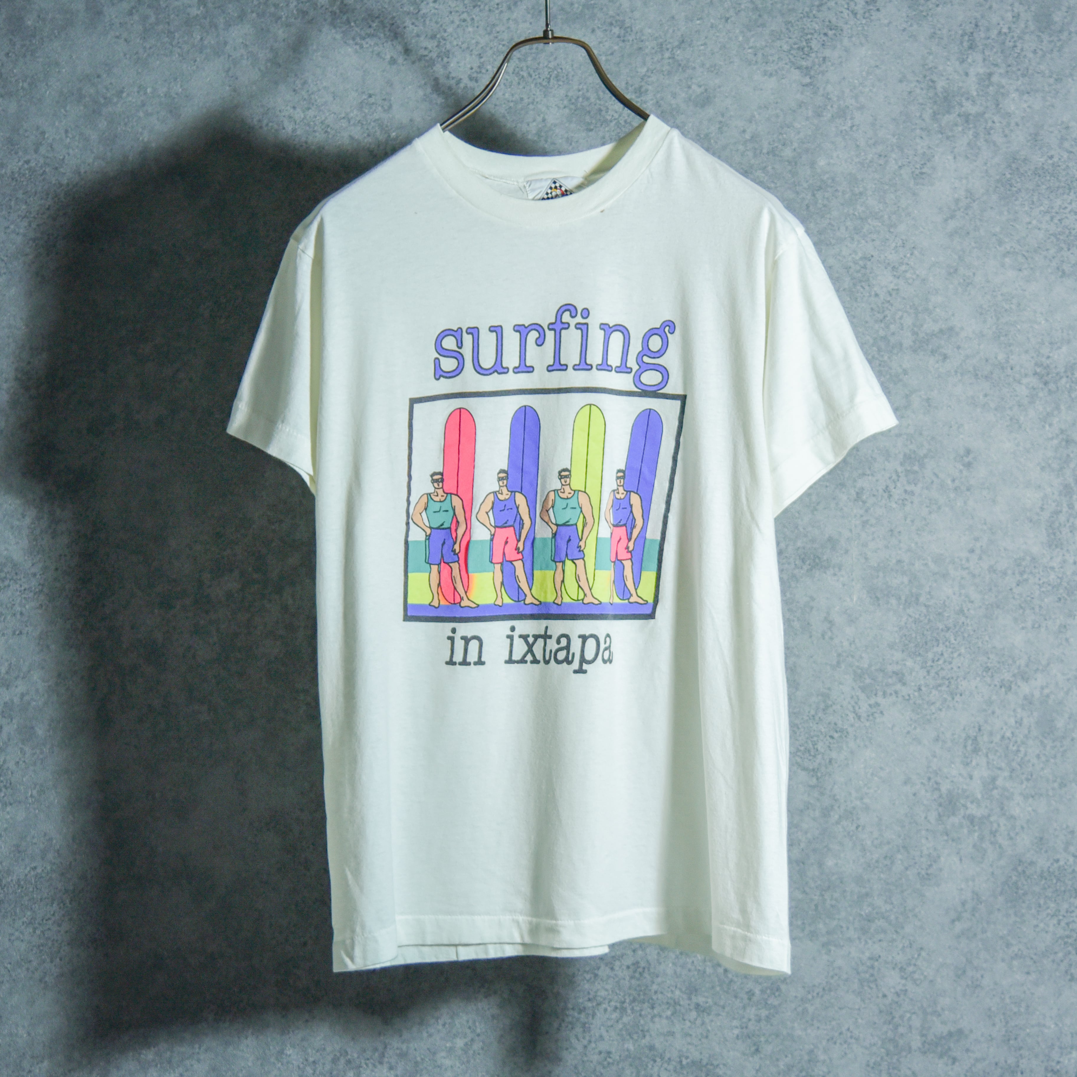 Ixtapaというメキシコのサーフィンのポイントがプリントされており、生地は柔らかいヴィンテージらしい一枚。