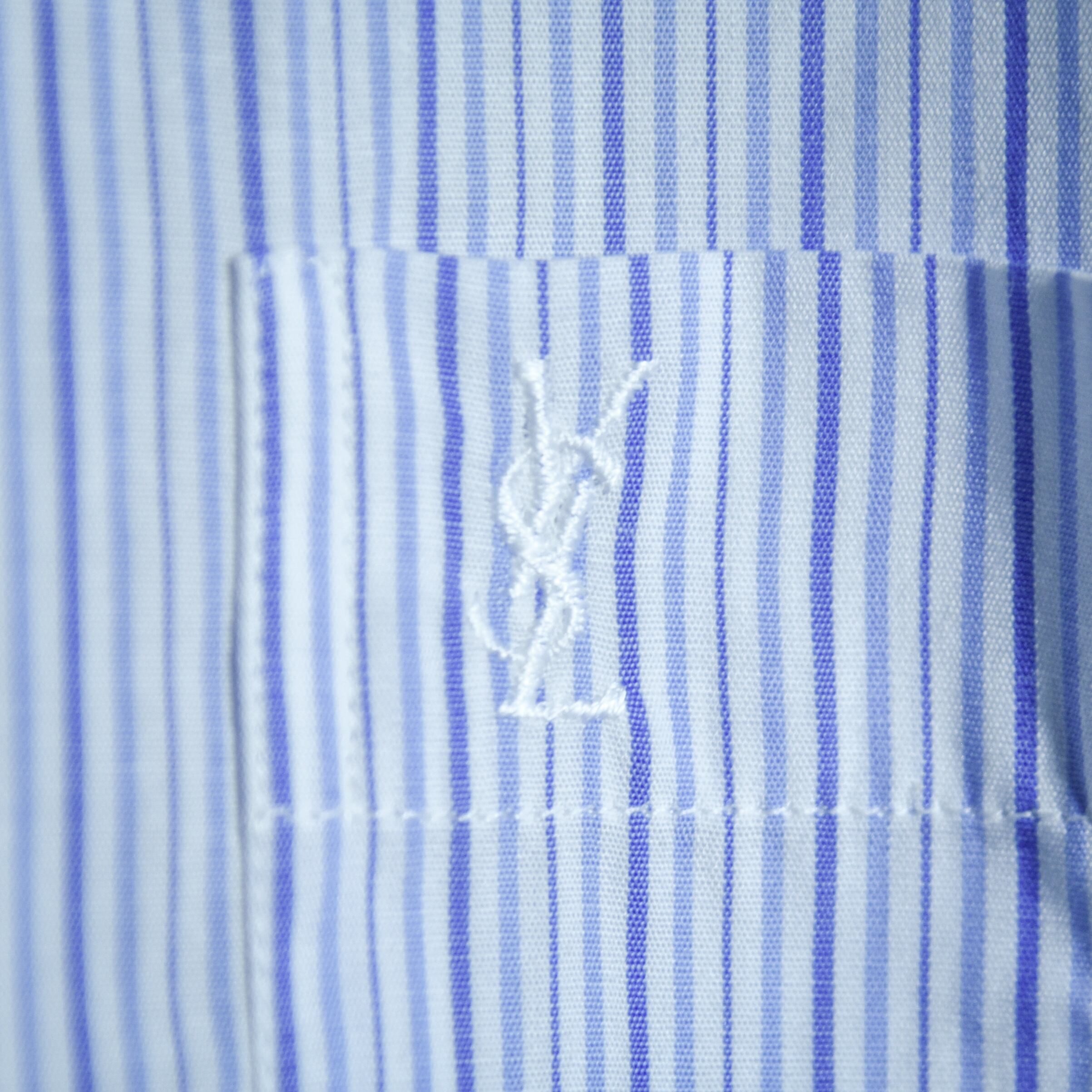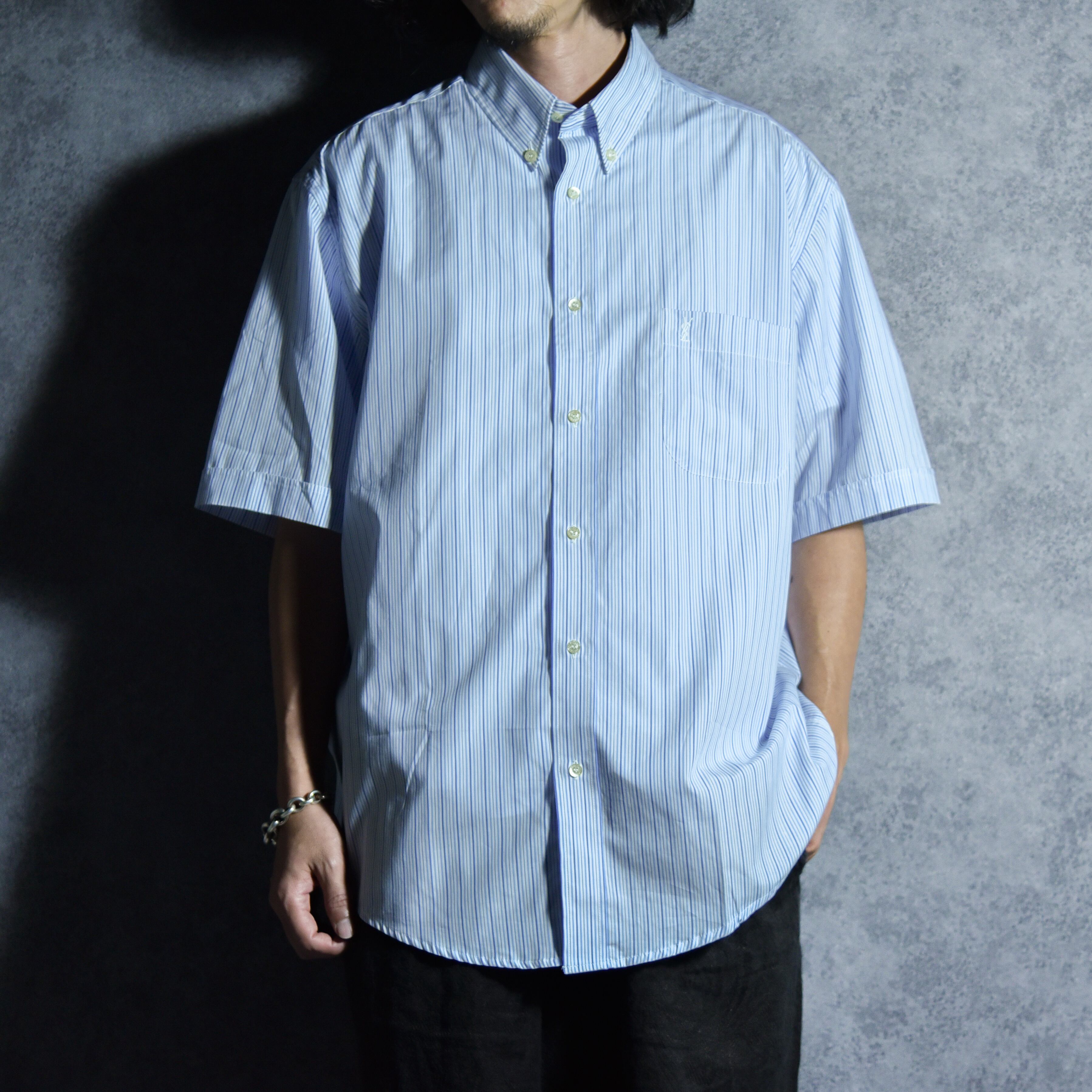 【DEAD STOCK】80-90s Yves Saint Laurent Stripe BD Shirts Blue YSL イヴ・サンローラン ストライプ ボタンダウン シャツ ブルー