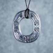 こちらは楕円の柔らかなシルエットながらネックレスと考えると重量感もある迫力のある一点。