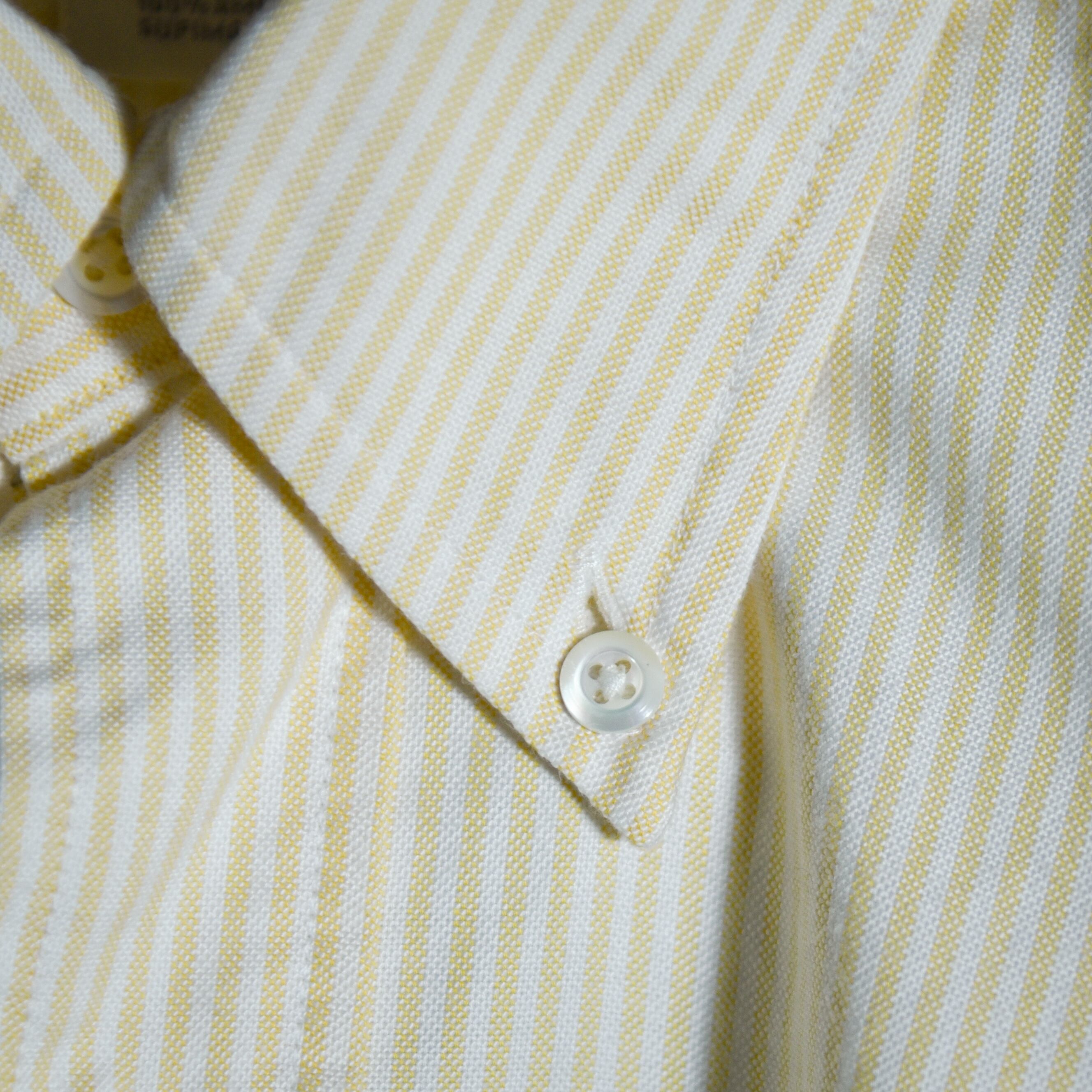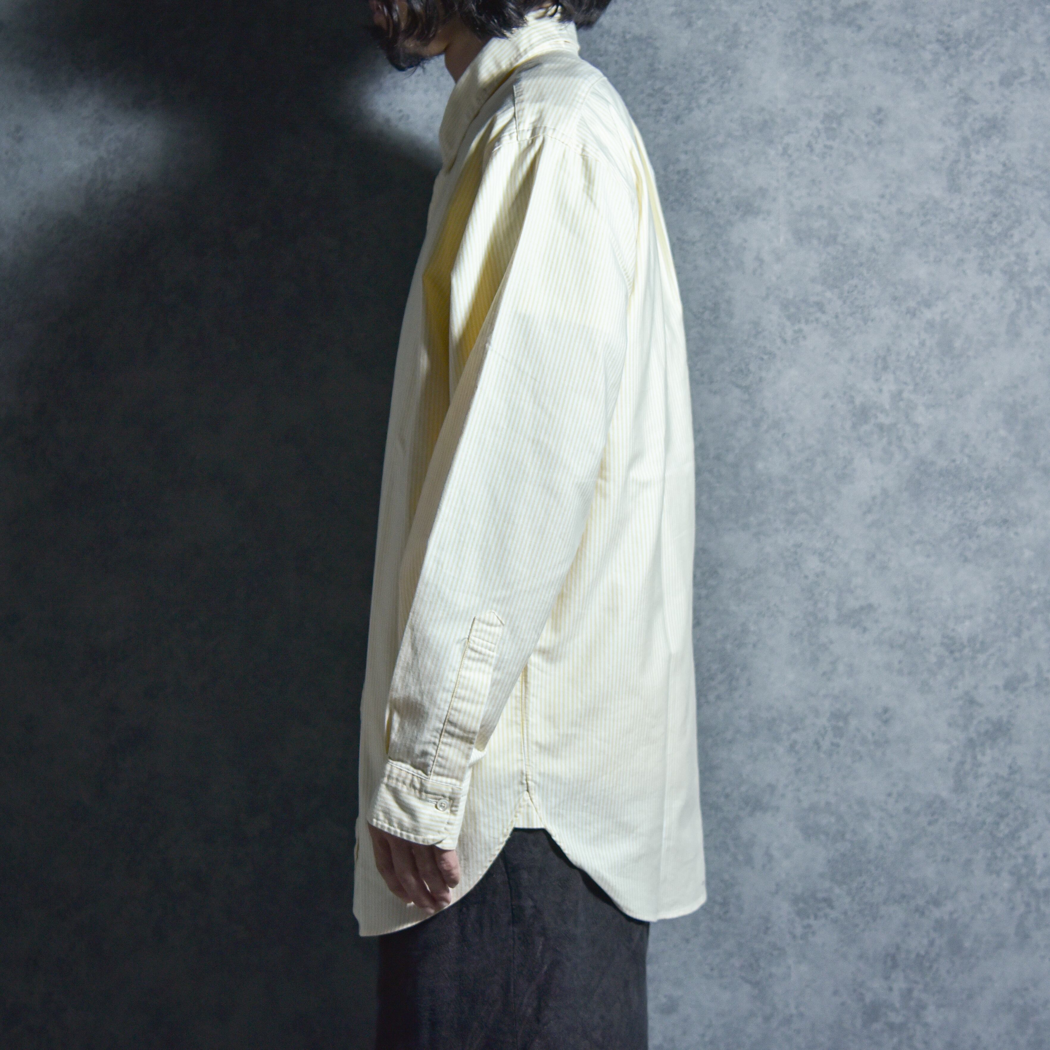 お手本のようなディテールのボタンダウンシャツでイエローのロンストが印象的な一枚。