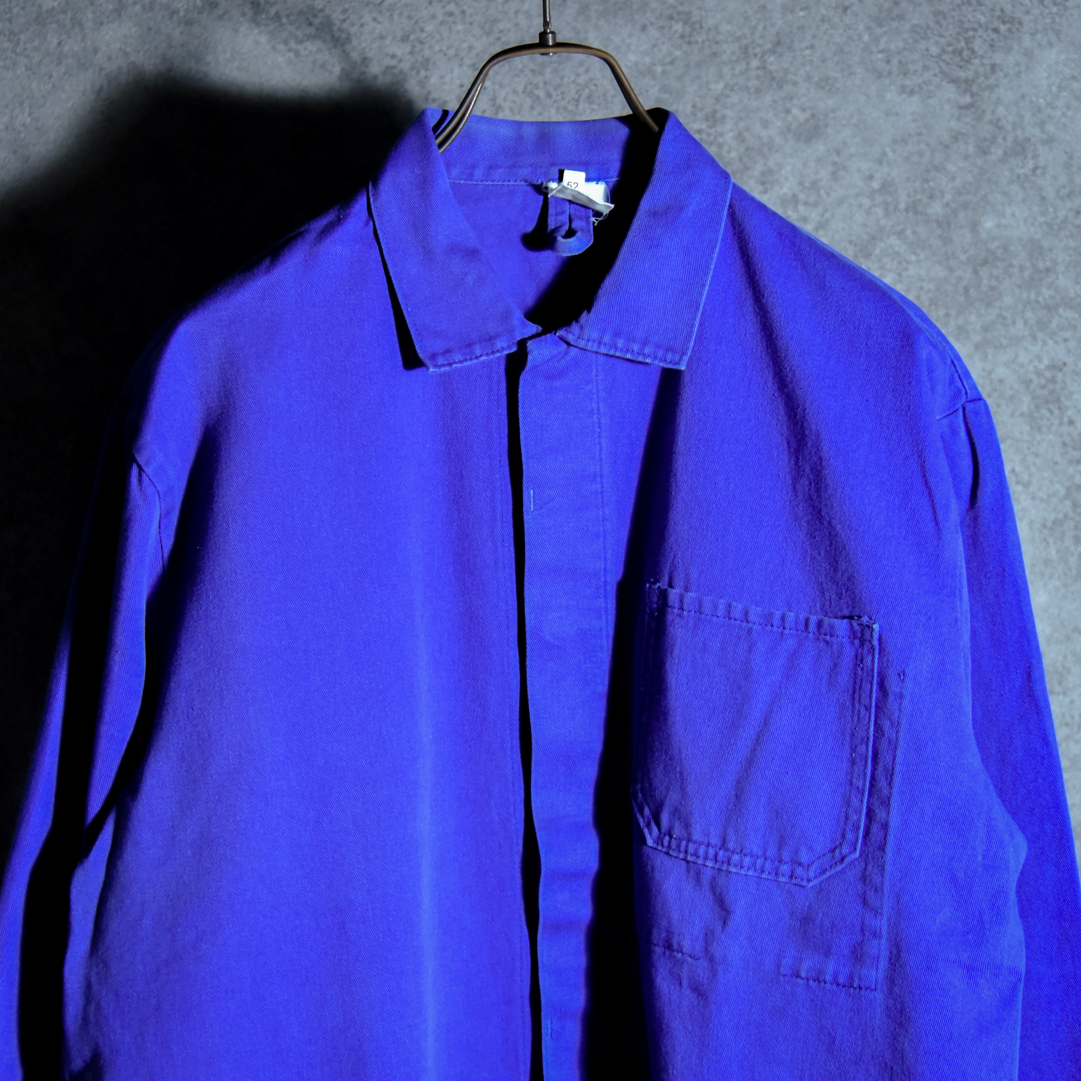 ハンガーループがついていたりとドイツらしいミニマルながら機能的なディテールとユーロワークウェアらしい鮮やかなブルーで魅力のアイテム。