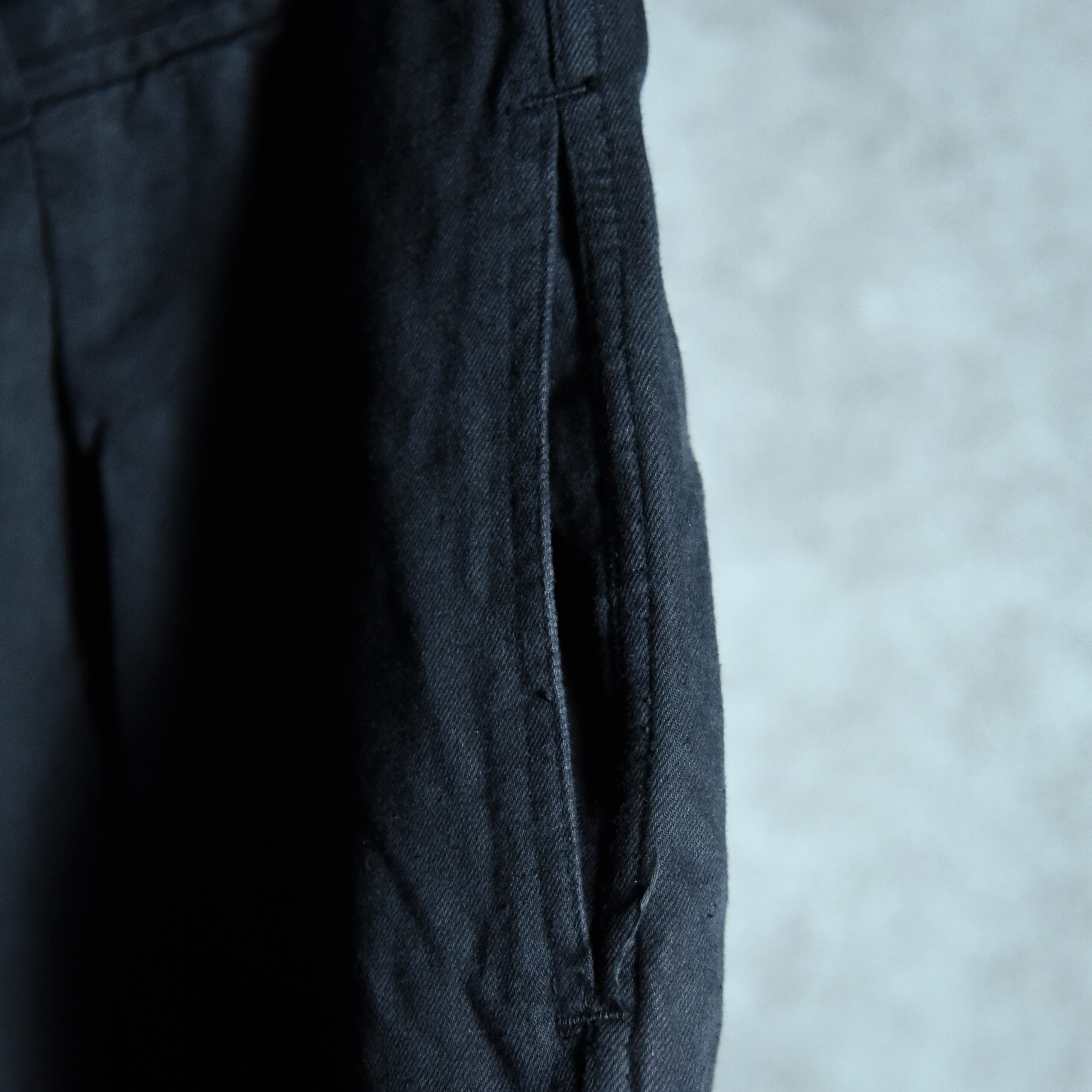 ドイツ軍より、デッドストックの状態から黒染めしたコットントラウザーをご紹介。