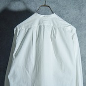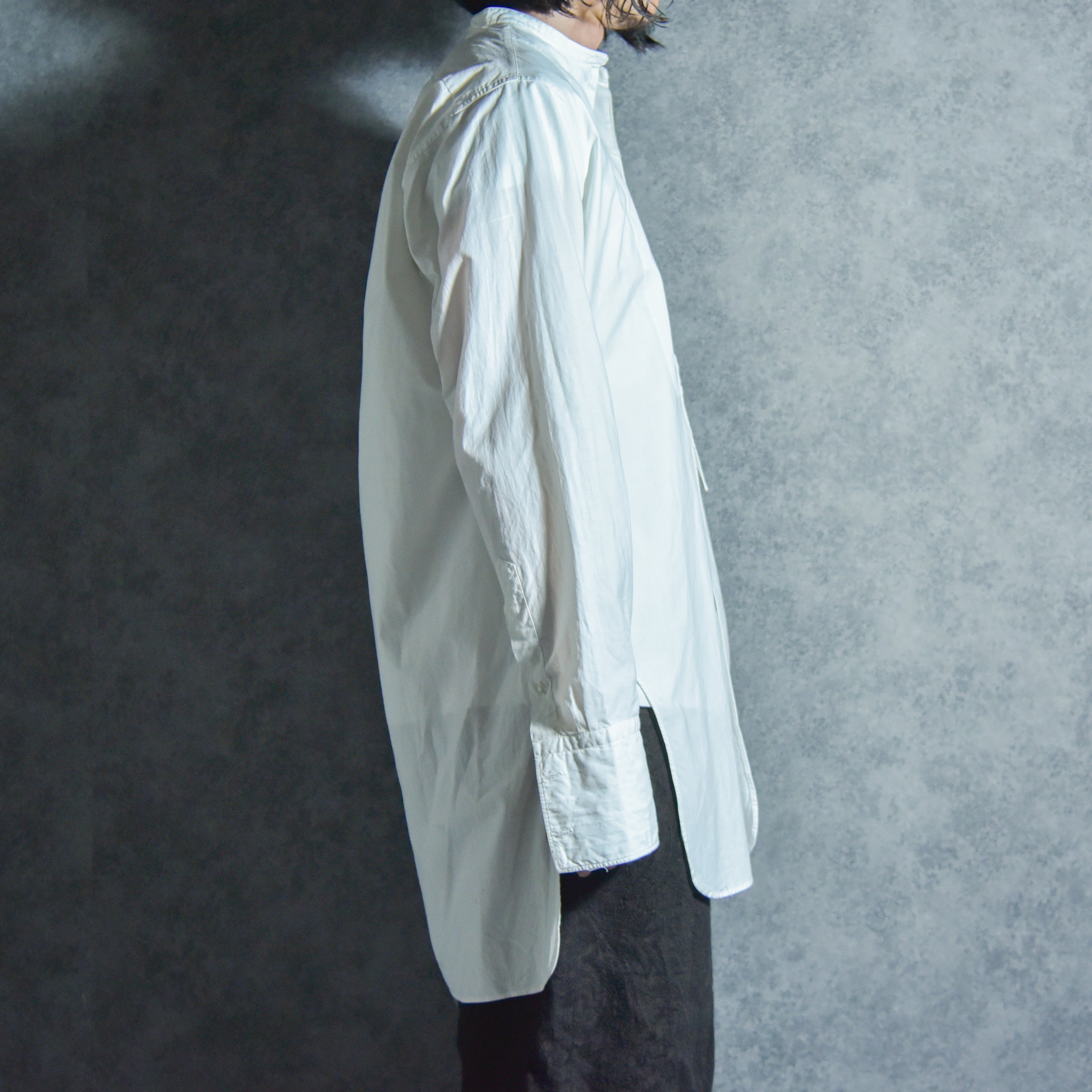 本来的にはデイリーユースというよりはフォーマルなシーンで着ることを想定しているドレスシャツですが、季節の変わり目にはさらっと羽織りで使ったり、カバーオールやハンティングジャケットの中に合わせてもらったりとカジュアルな装いにも馴染みやすいアイテム。