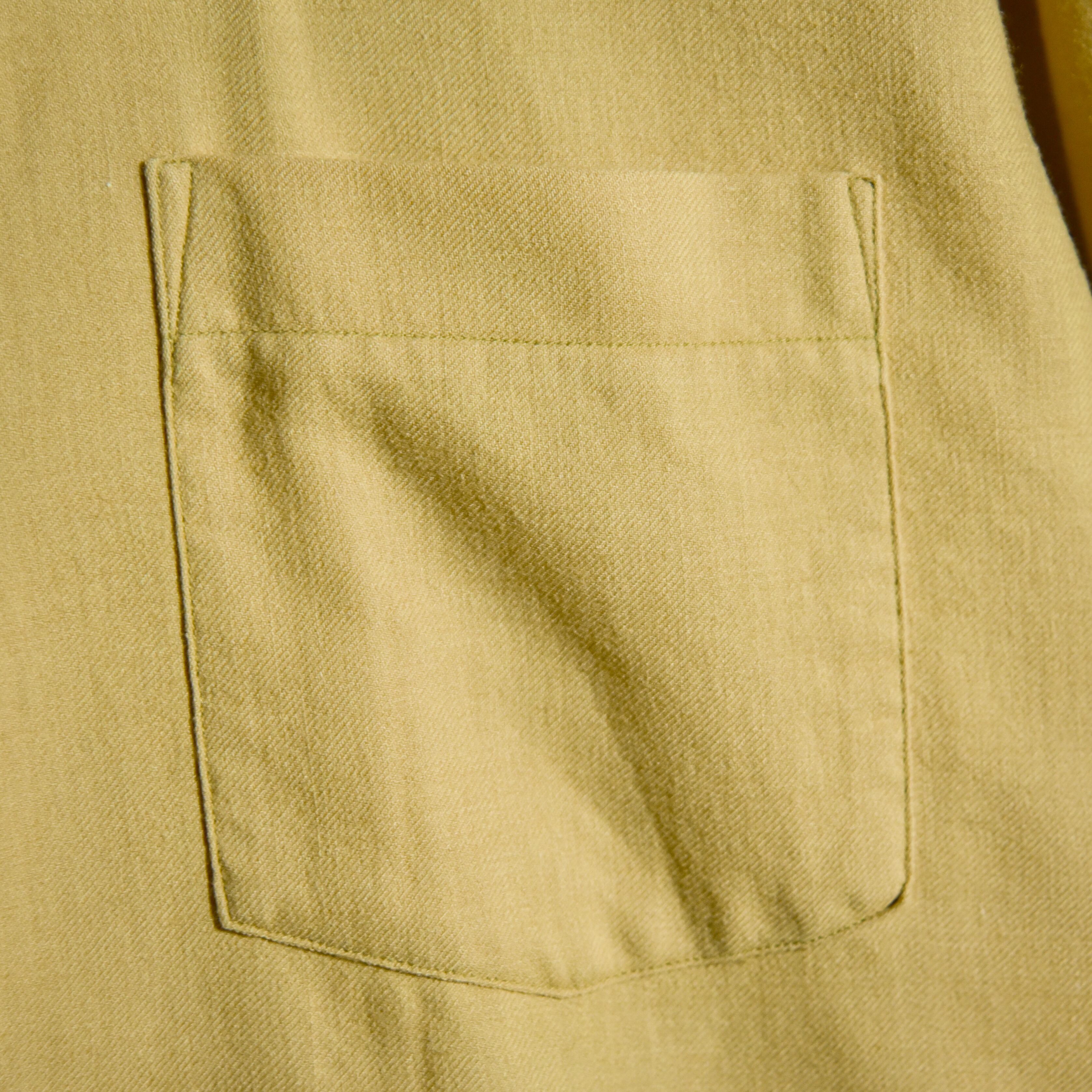 しなやかなウールの落ち感とコットンの張りのバランスなど生地の風合いも良く、見返し裏のステンシルなどの良いディテールです。