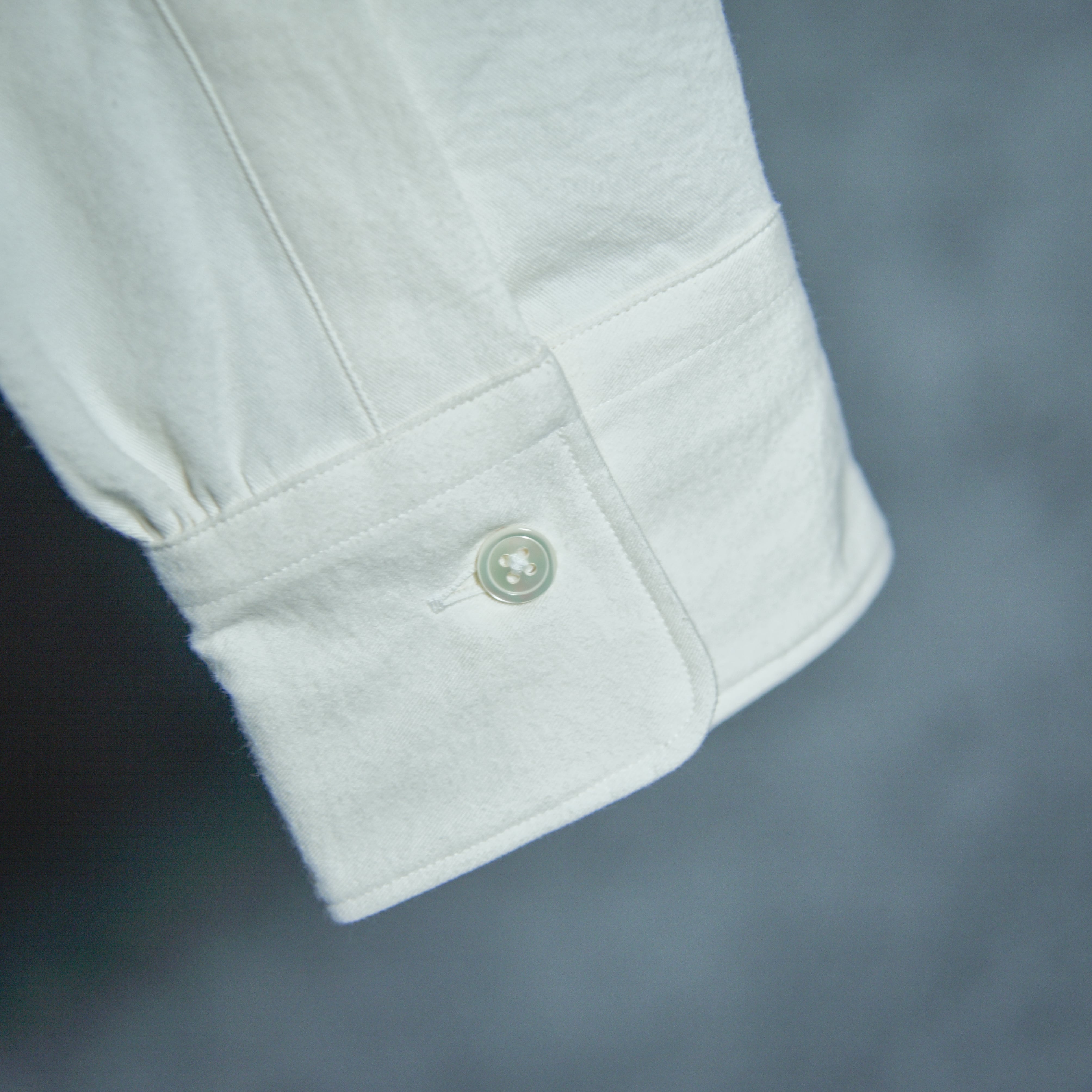 1900年代初頭のフランスアンティークを踏襲したデザインと、日本の江戸の技術を再現して作られた生地、異なる国と時代が掛け合わせがintch.らしいシャツに見事に昇華されています。