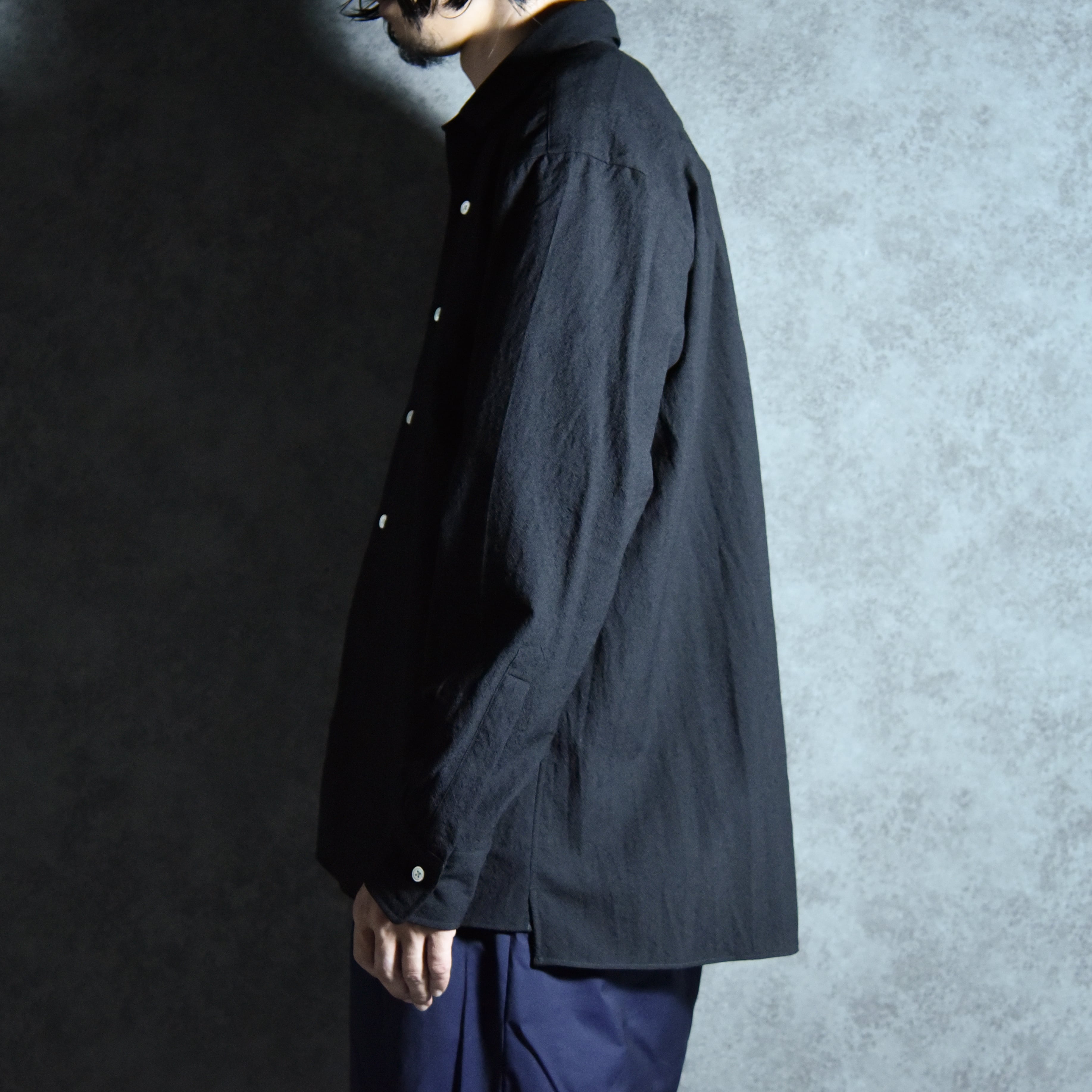 【intch.】"Lye" Wool Regular Collar Shirts BLACK インチ "ライ" 近江晒 ウール レギュラーカラー シャツ ブラック