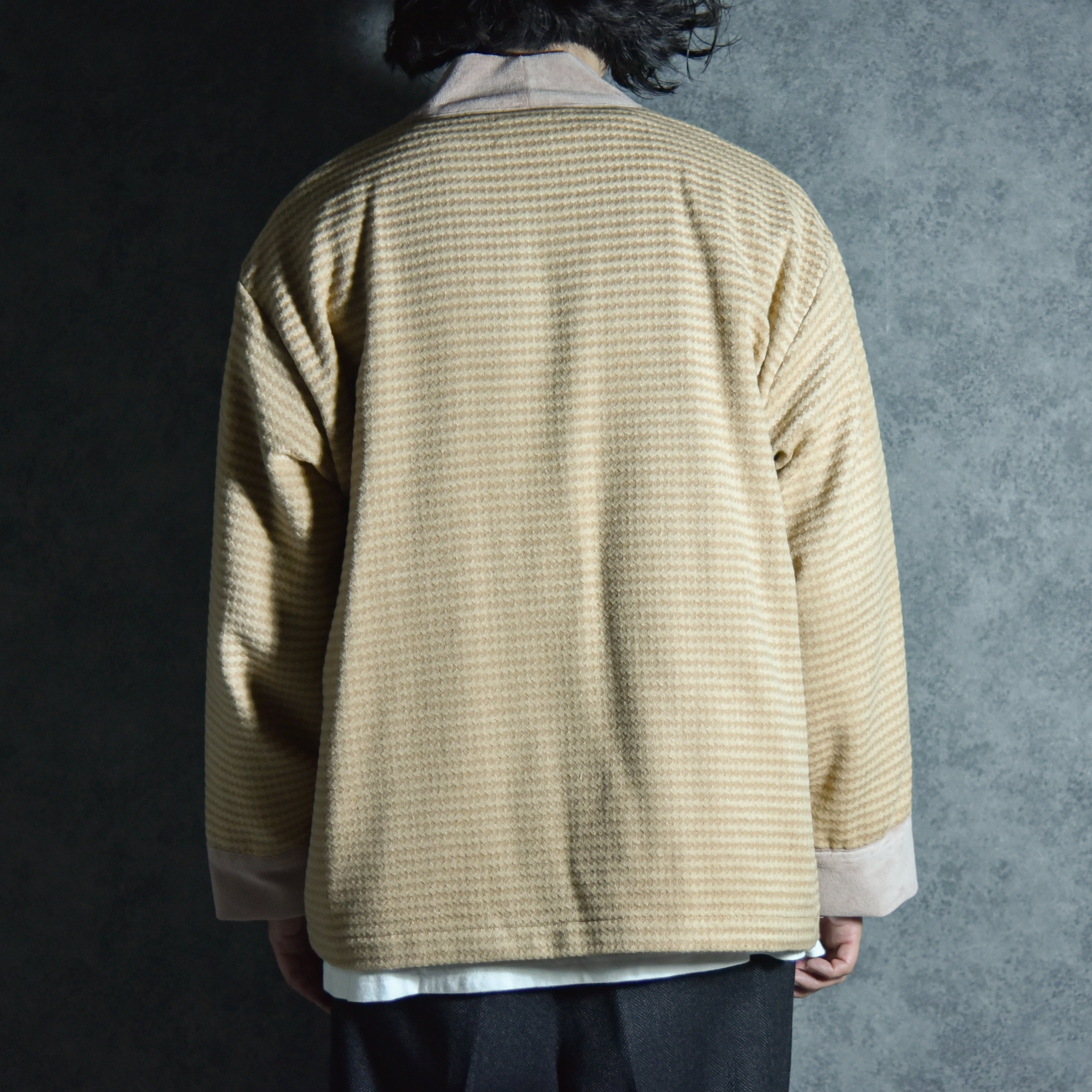日本の伝統的な半纏をベースに、最高級の素材と付属、今日的なシルエットとパターンを用いて再構築されたカーディガン。