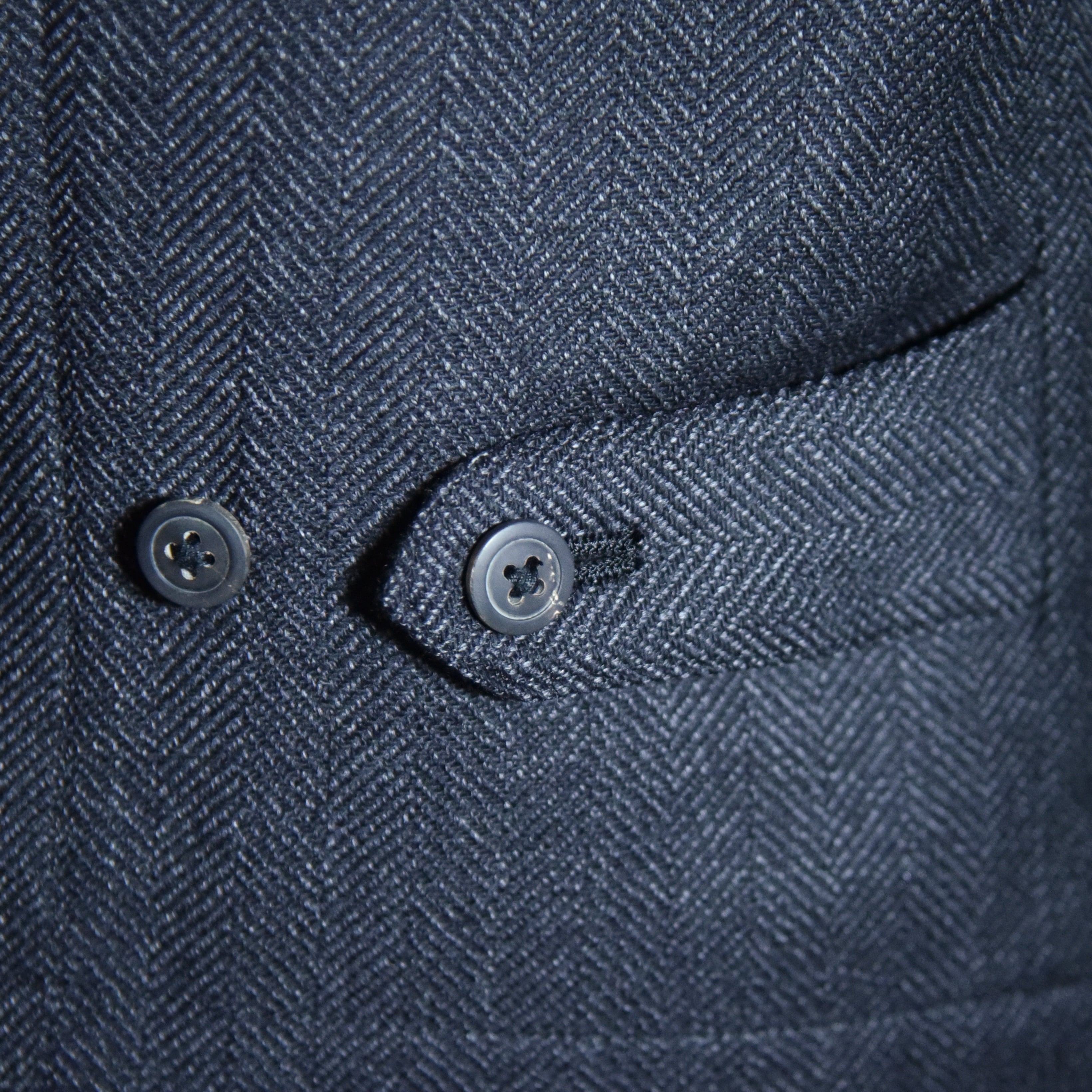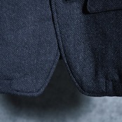 釦付きの両玉縁ポケットと左右の微妙なバランス、さらに総裏の仕立てなど、難しい縫製箇所の多いアイテムですが、古くから続く専業工場ならではの繊細な仕事が光る非常に丁寧な作りが特徴です。