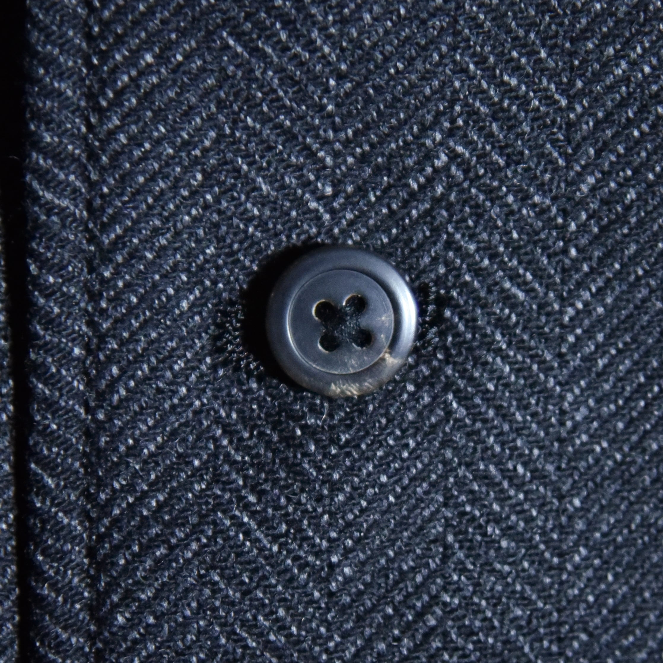 またボタンは全て水牛のから削り出したハーフマッドのナチュラルホーンボタンを使用しているなど、素材、付属、縫製、そしてデザインと、細部に渡り妥協のない作りが見てとれる一着です。
