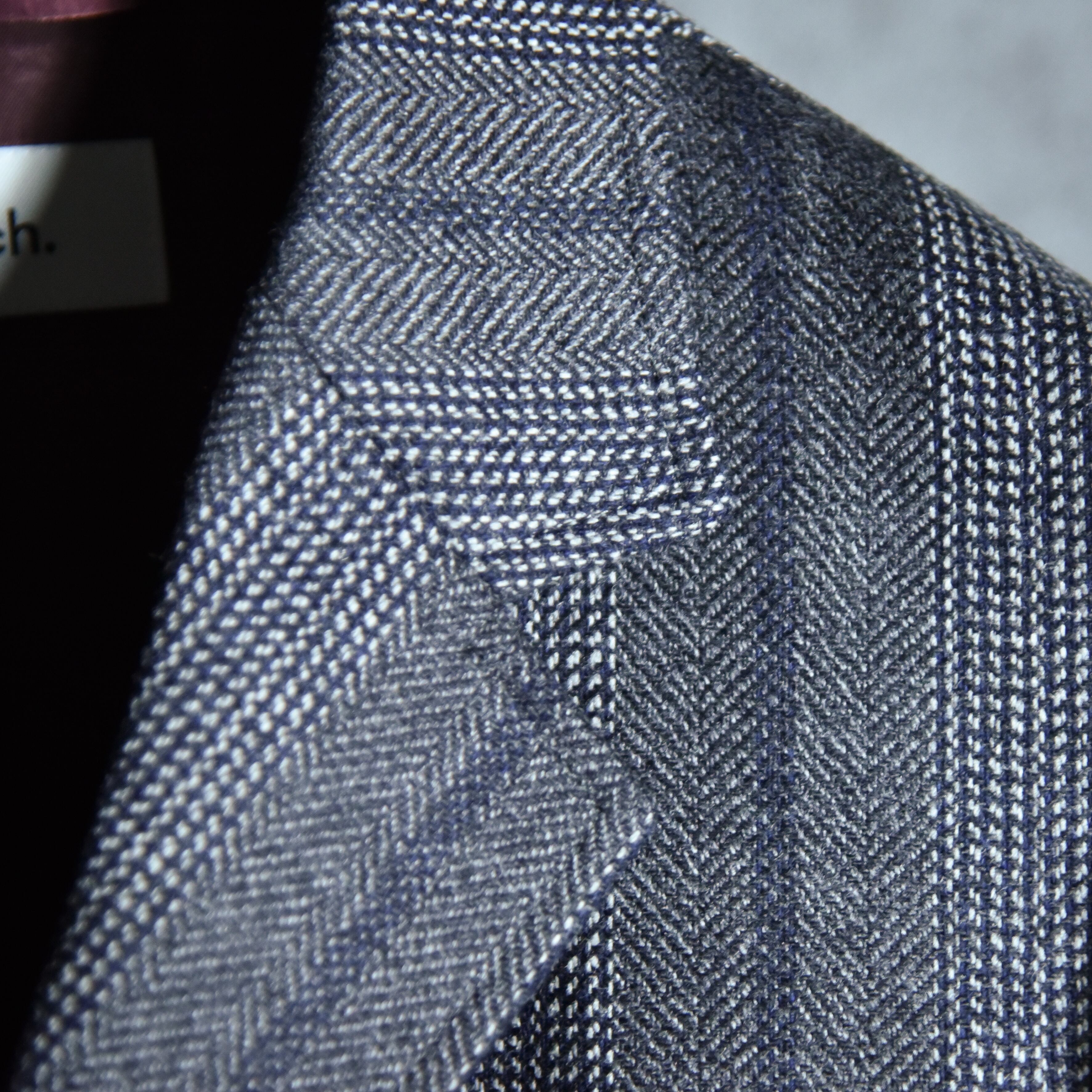 ブラウンとネイビー、そしてベージュが織り重なった英国らしいBROWN GUN CLUB (ブラウンガンクラブ)、ピンドットとヘリンボーン、ピンストライプの組み合わせで独特のランダムストライプが構成されたGRAY STRIPE(グレーストライプ)、深いチャコールグレーの中に僅かに織り込んだ白糸で奥行きを表現したGRAY HERRINGBONE(グレーヘリンボーン)の、印象の異なる3色で展開。