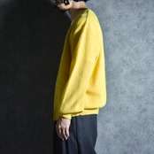 鮮やかなイエローが印象的なニットで、変形天竺のようないわゆるパール編みで編み立てられた糸のループを生かした風合いの良いヴィンテージニット。