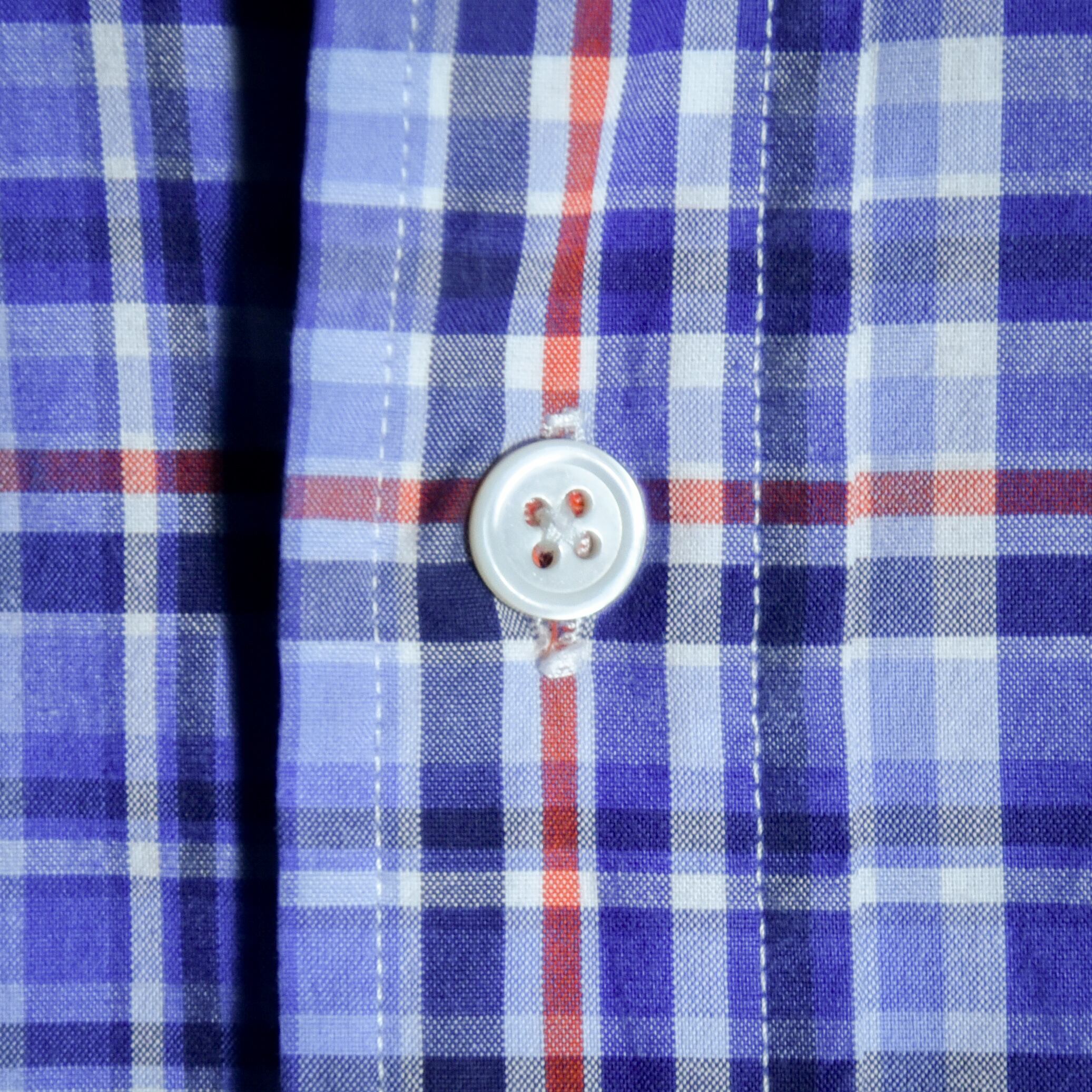 細番手の柔らかな生地感でブルー系に暖色系の差し色の入ったクラシックであり、上品な落ち着きのと調和のとれた印象の配色。