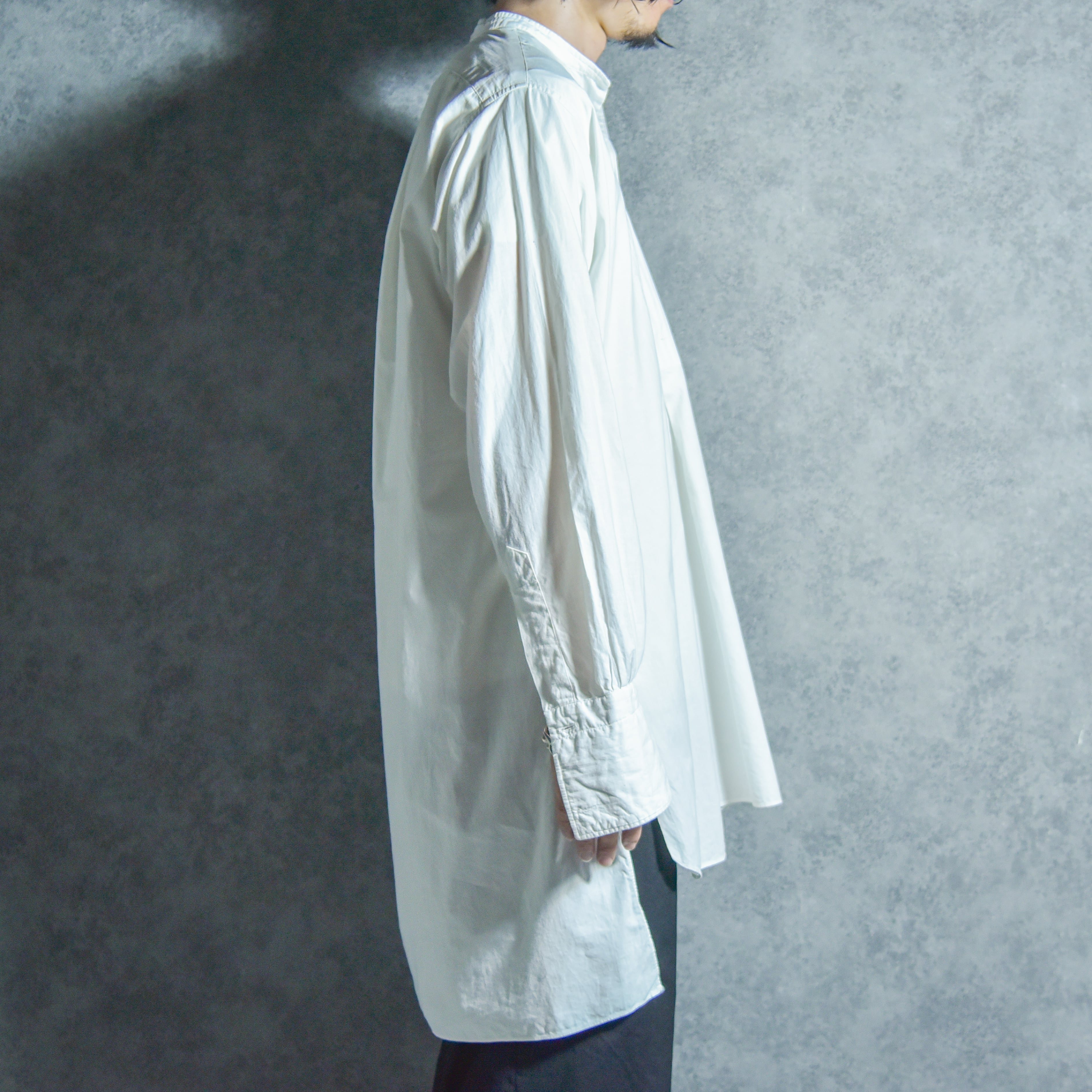 1910s-30s French Antique Cotton Long Shirts フランス アンティーク コットン バンドカラー シャツ