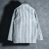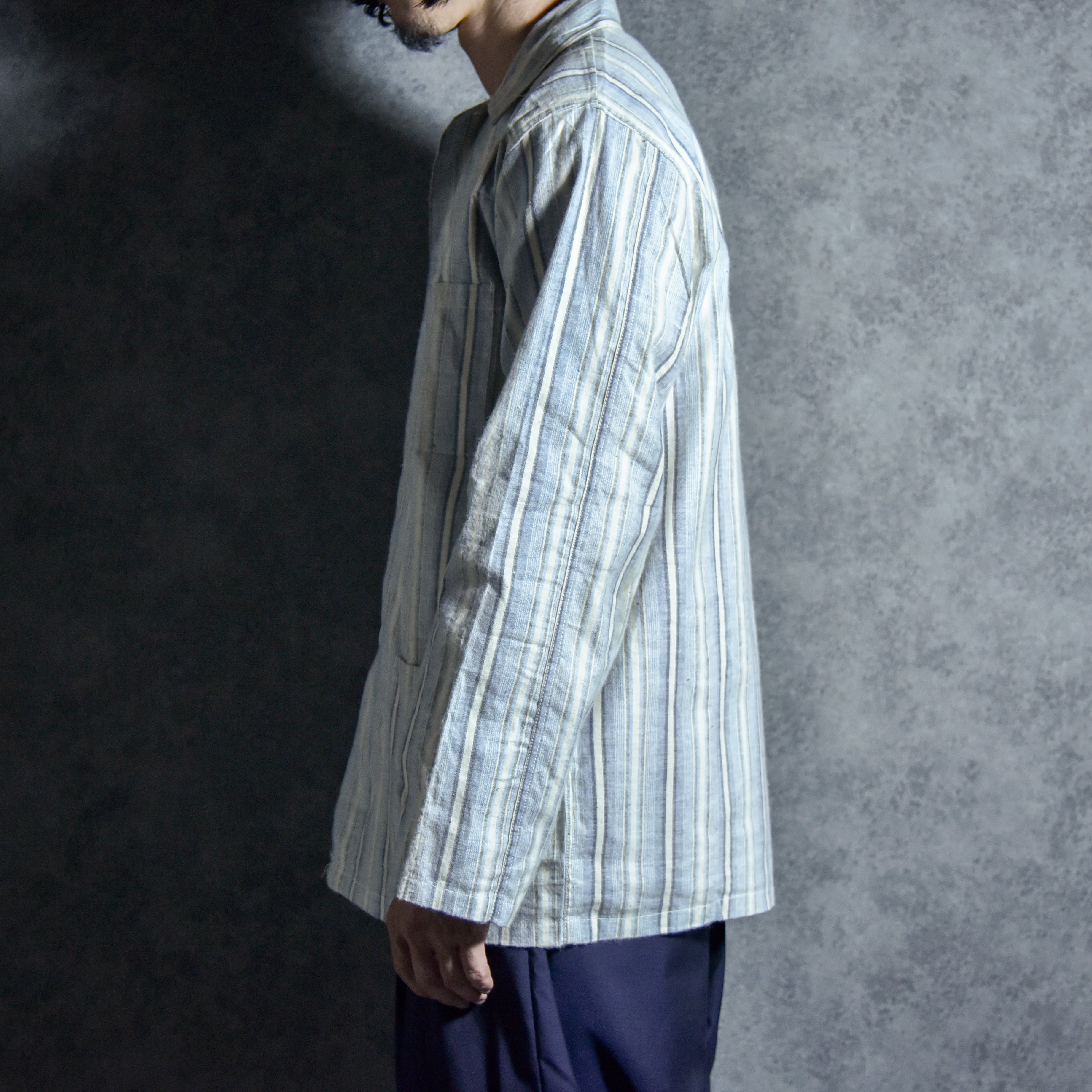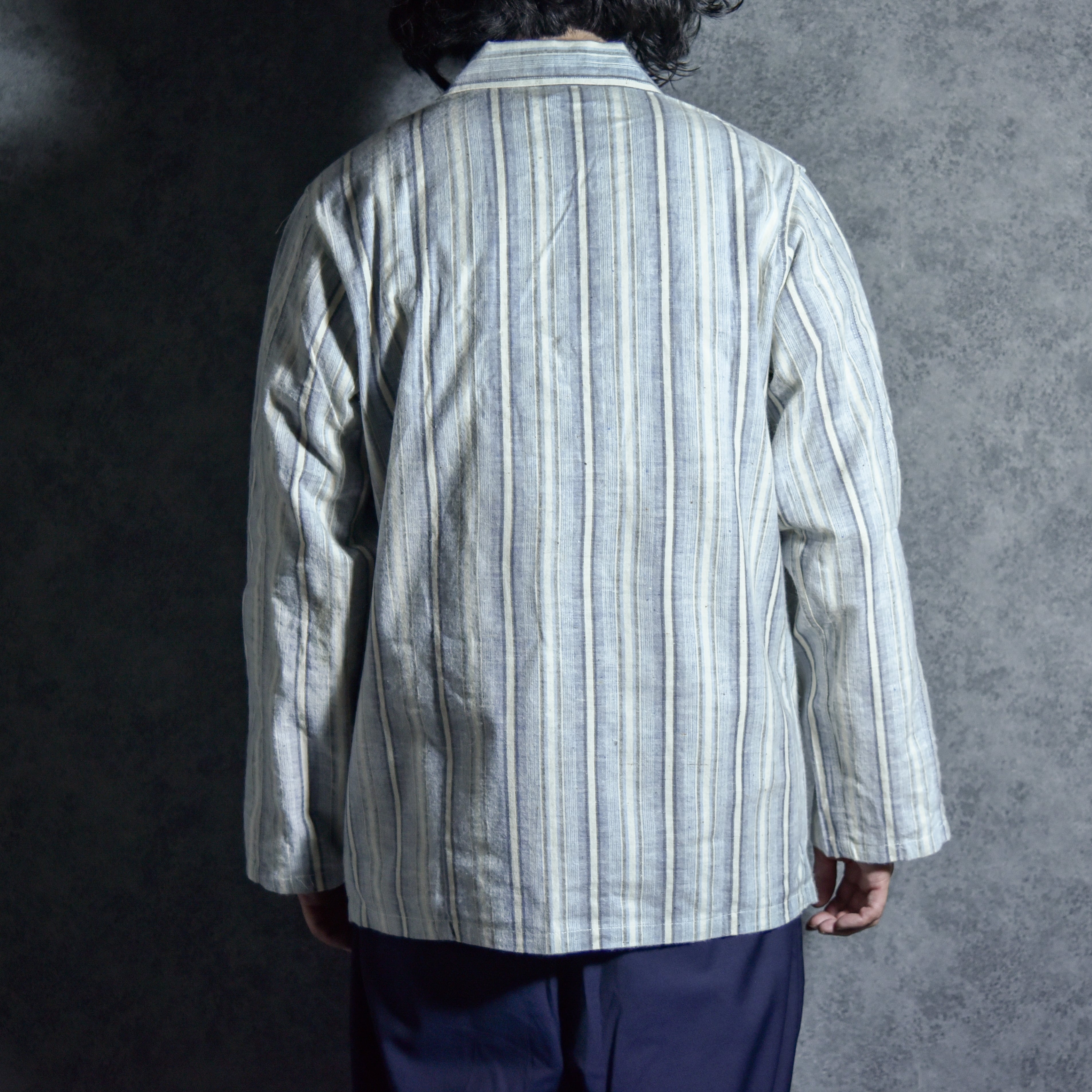 適度にハリと起毛感のあるコットンフランネル生地で仕立てられた一着で、特徴的な淡い色合いのストライプ柄がフランスらしく、カジュアルアイテムながらどことなく上品さも漂う隠れた名作です。