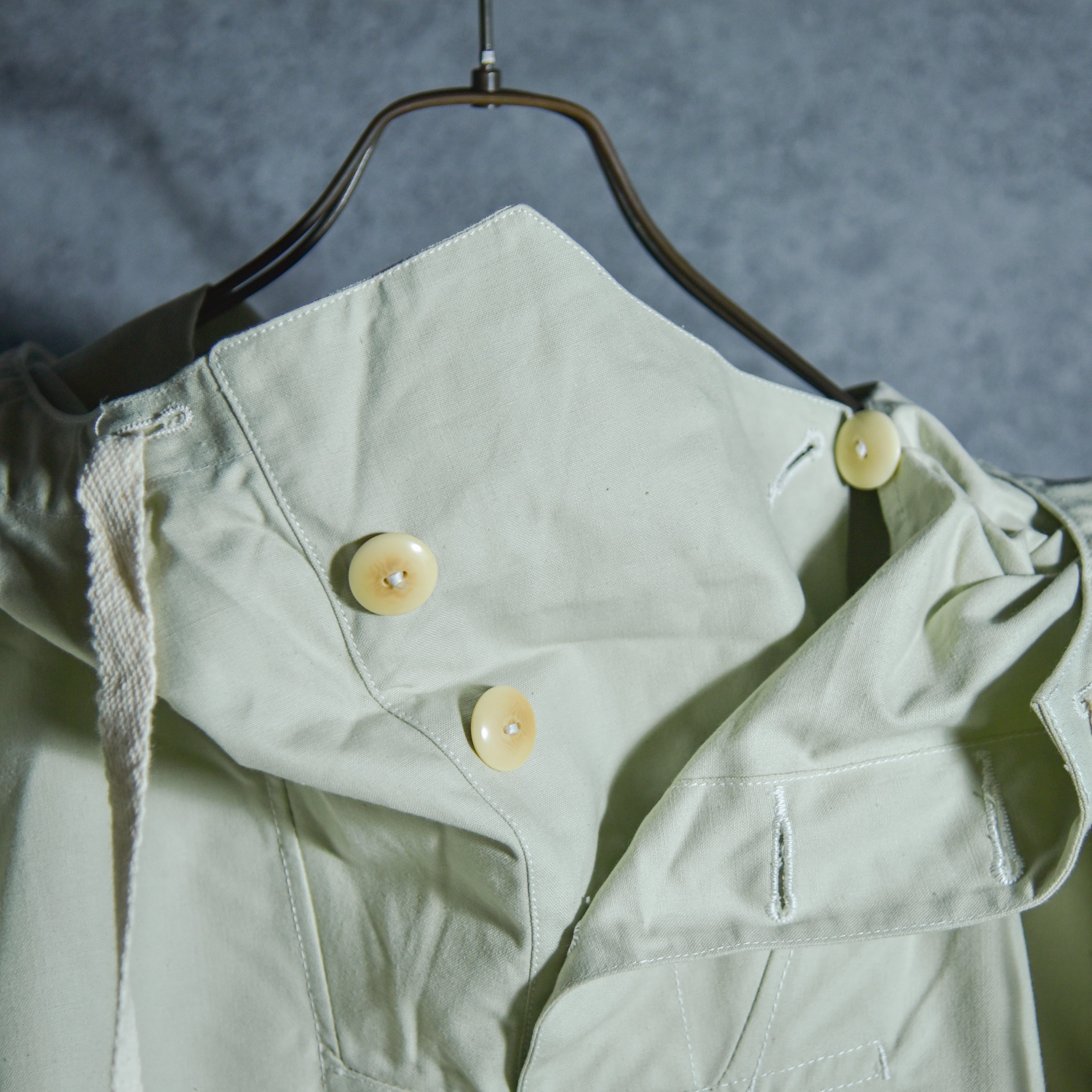 状態の良いデッドストックですが、僅かな保管時の汚れがある場合、個体によりボタンの種類やスタンプの位置やデザインなど細かなディテールが異なる場合がございます。
