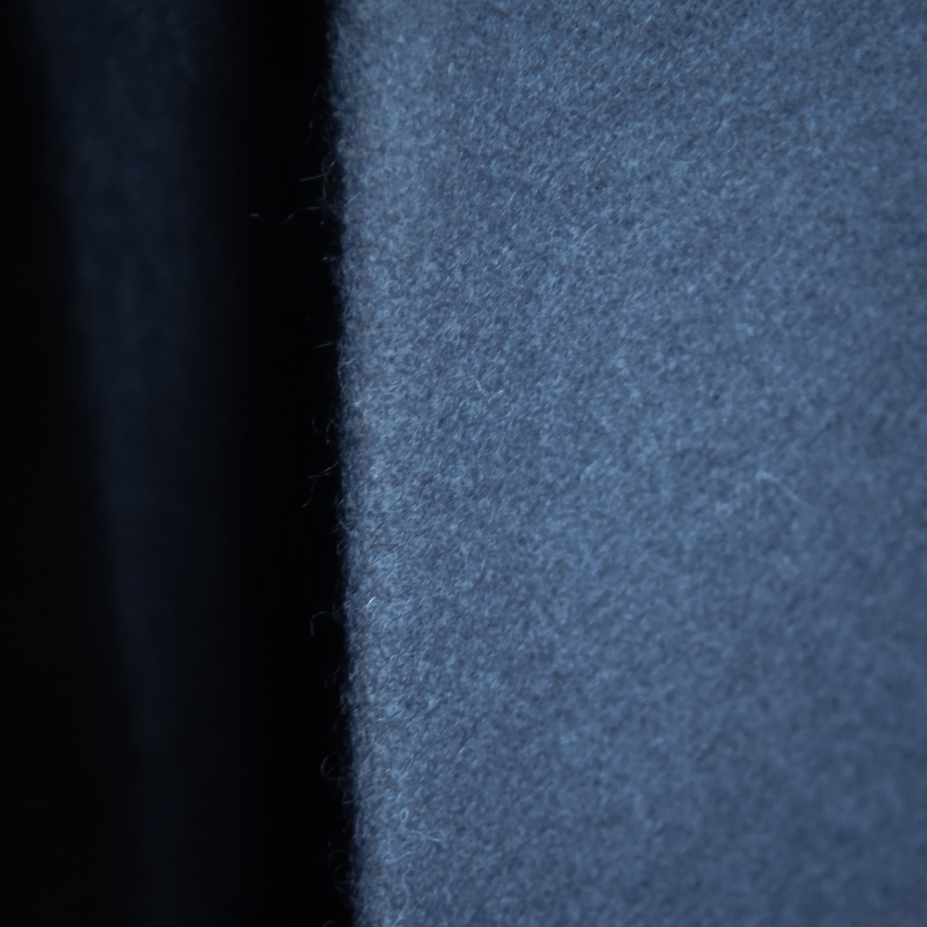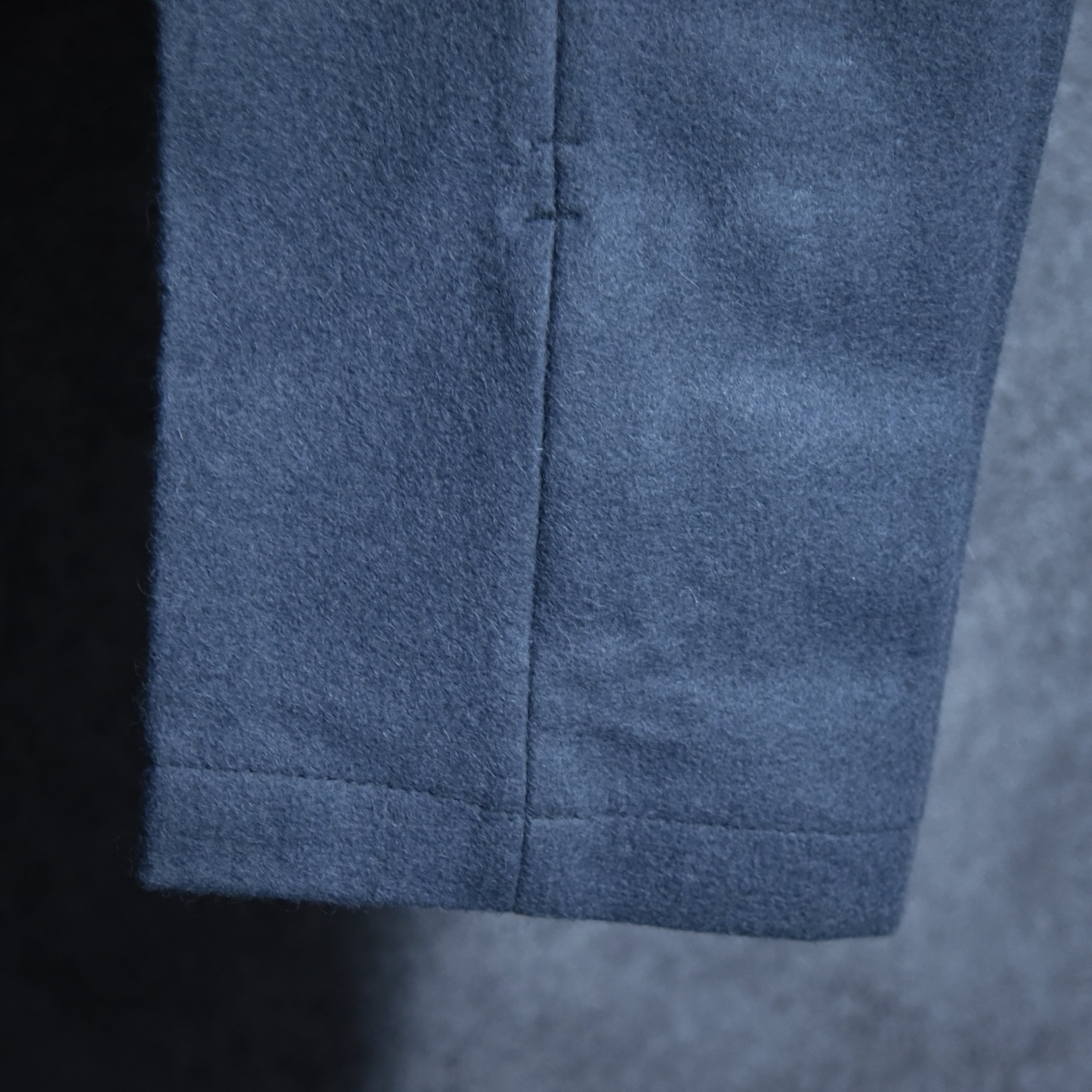 生地はしっかりと肉厚なウールが使われていますが、シルエットとやや青みがかったグレーカラーも相まって粗野な雰囲気はなく、洗練された印象を受ける一着です。