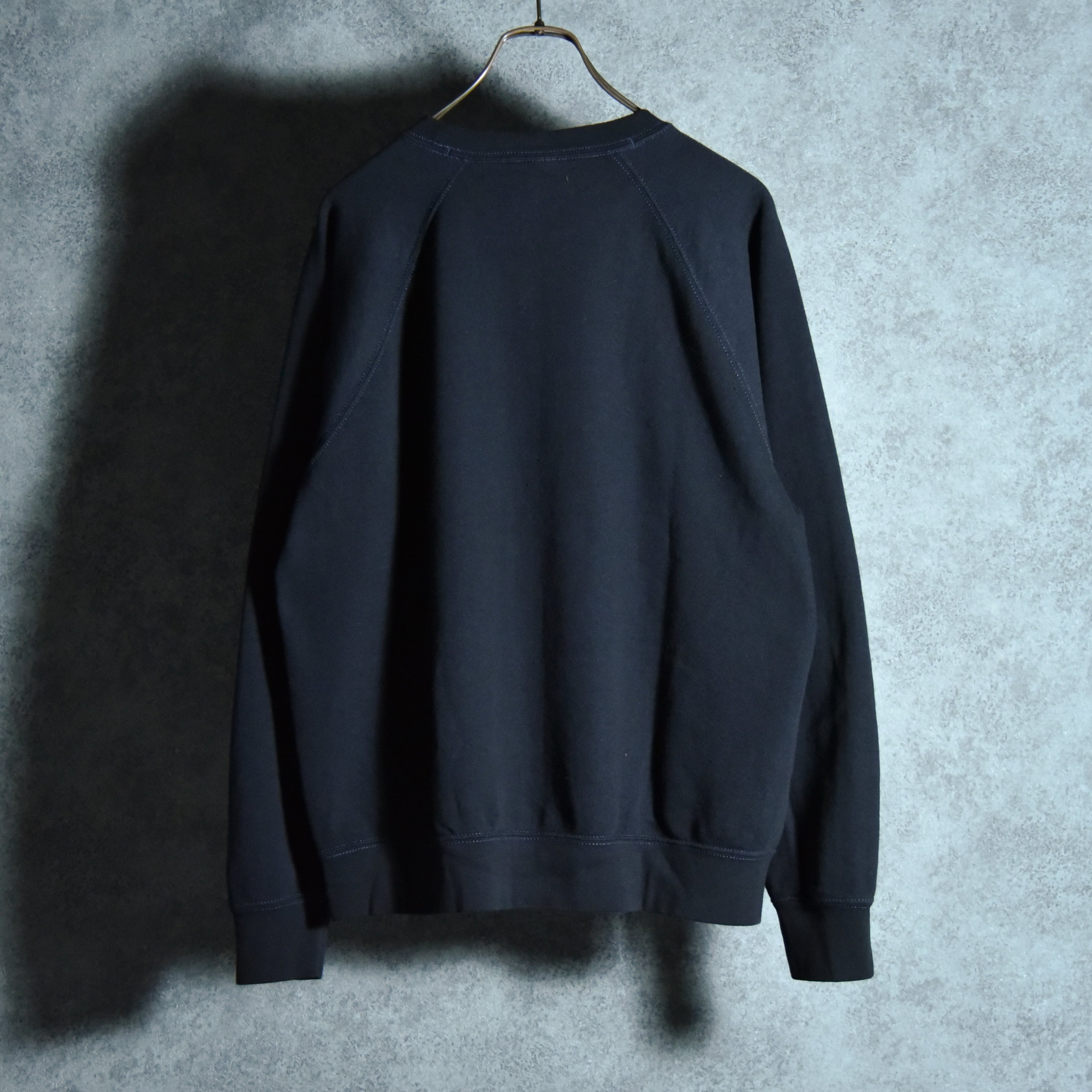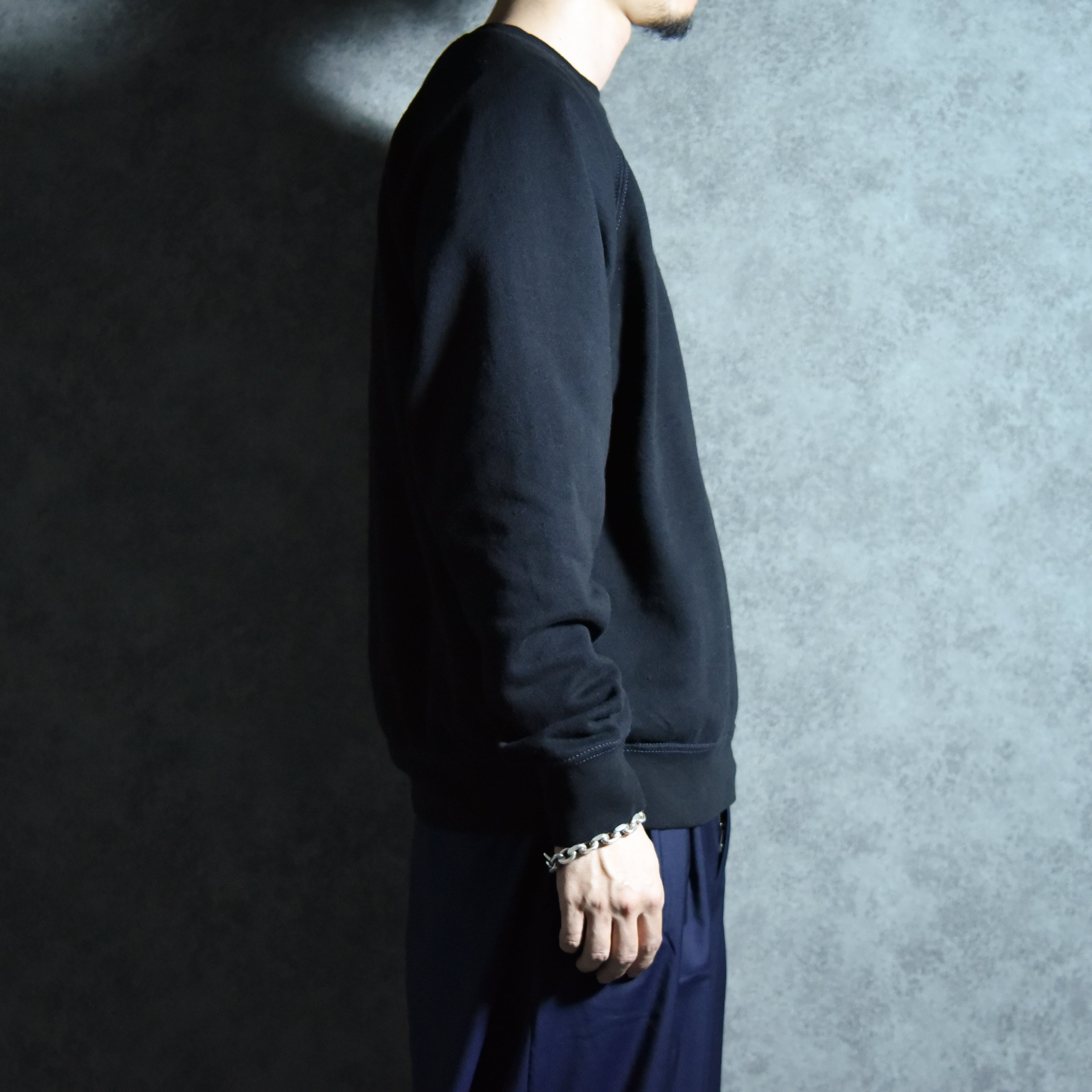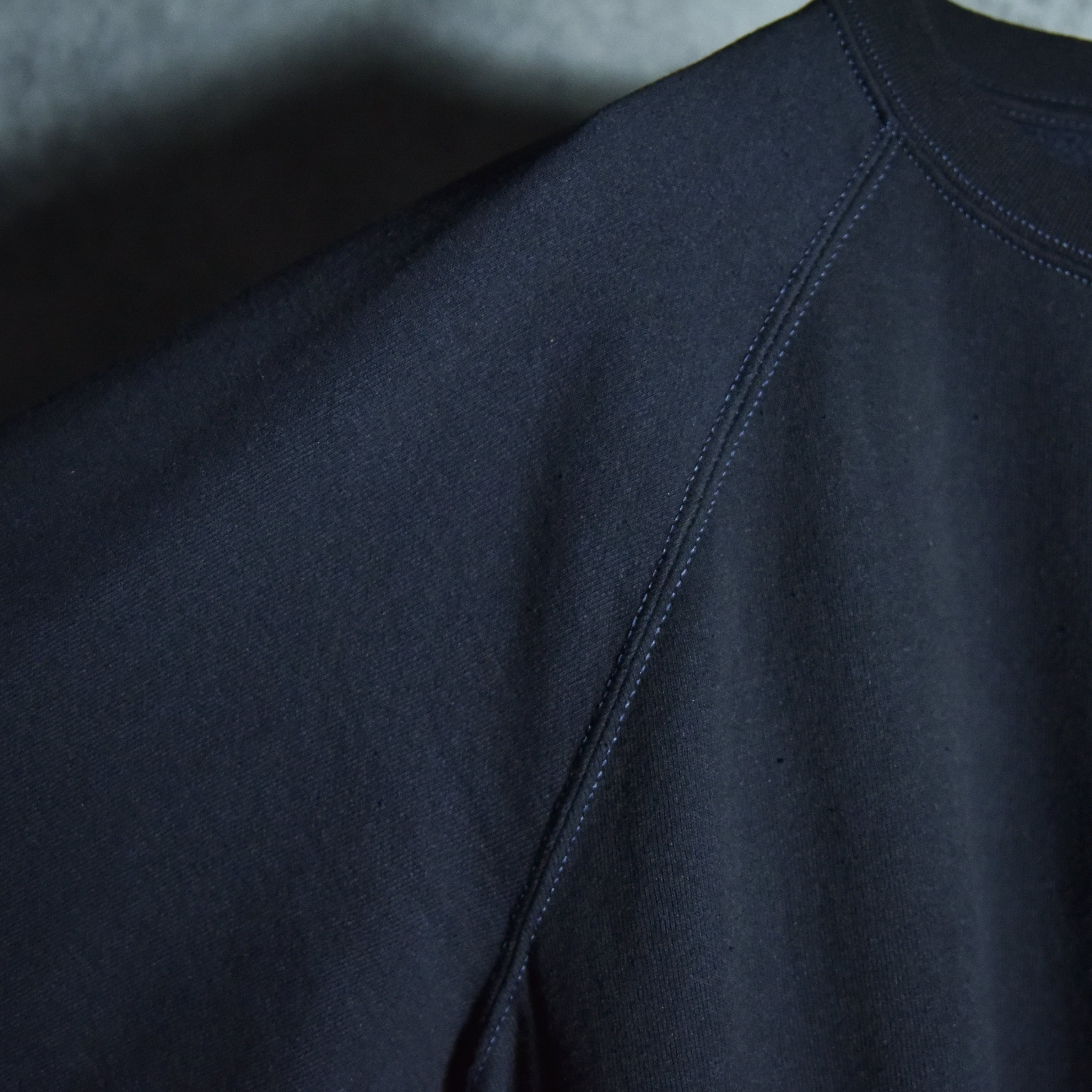デザインはベーシックなクルーネックで使い勝手が良く、袖付がラグランになっているので肩の落ちがスムーズで、ゆったりしたサイズでもシルエットが綺麗に出るところも魅力のひとつ。