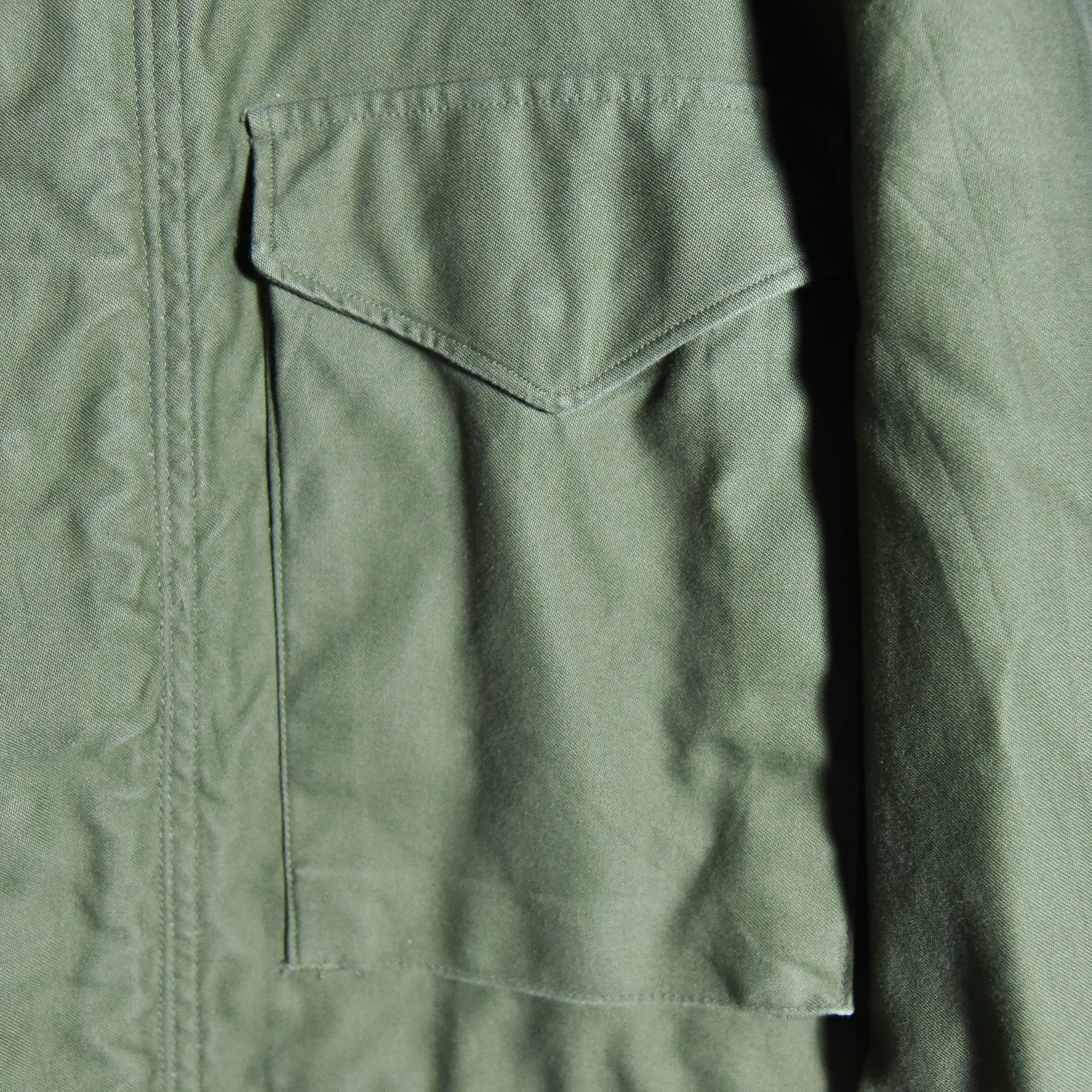 後継モデルのM65と異なり襟型がスタンドカラーではなく、首元に干渉しないタイプのレギュラーな襟型の為、ハードな印象になりづらく綺麗目なスタイリングにも取り入れやすいかと思います。
