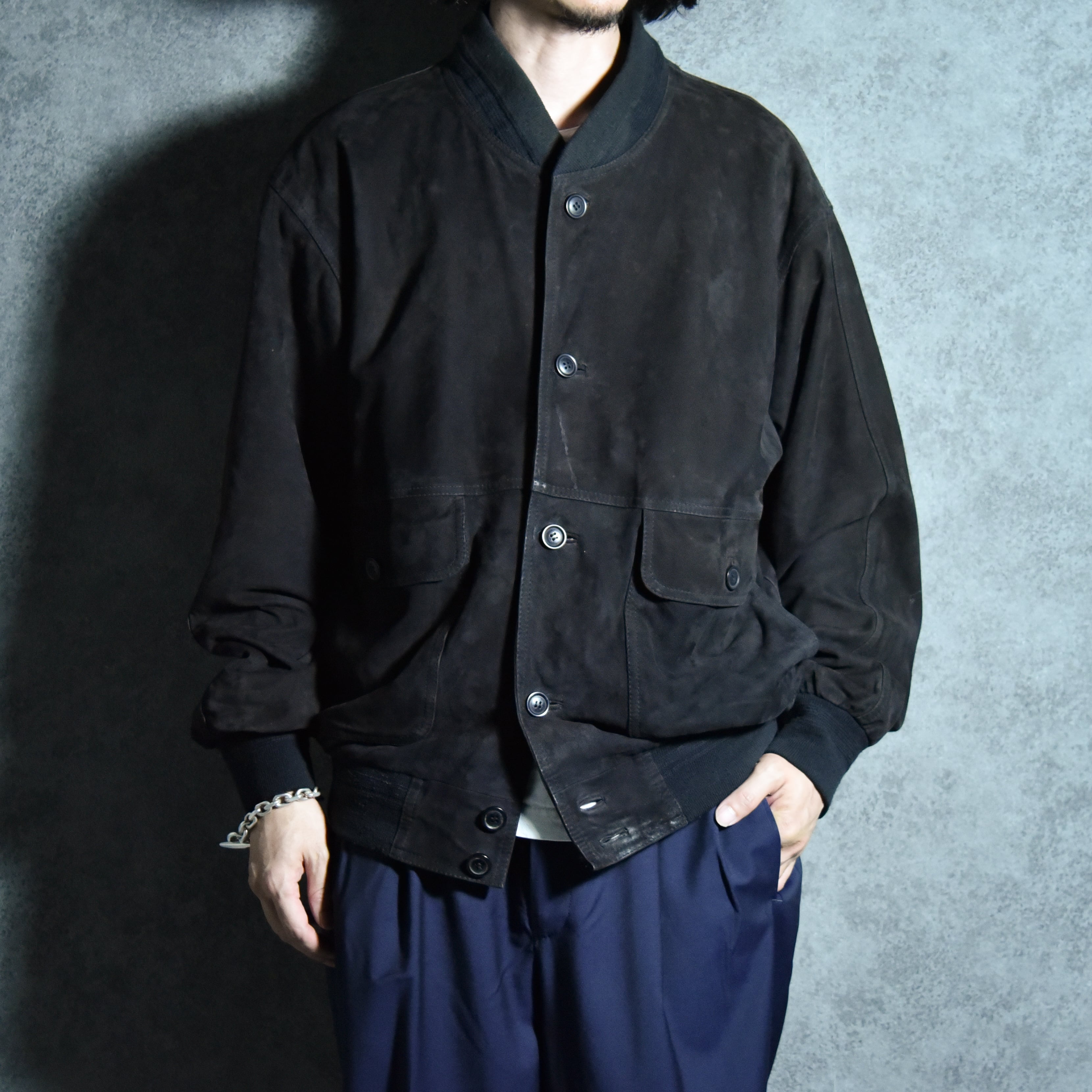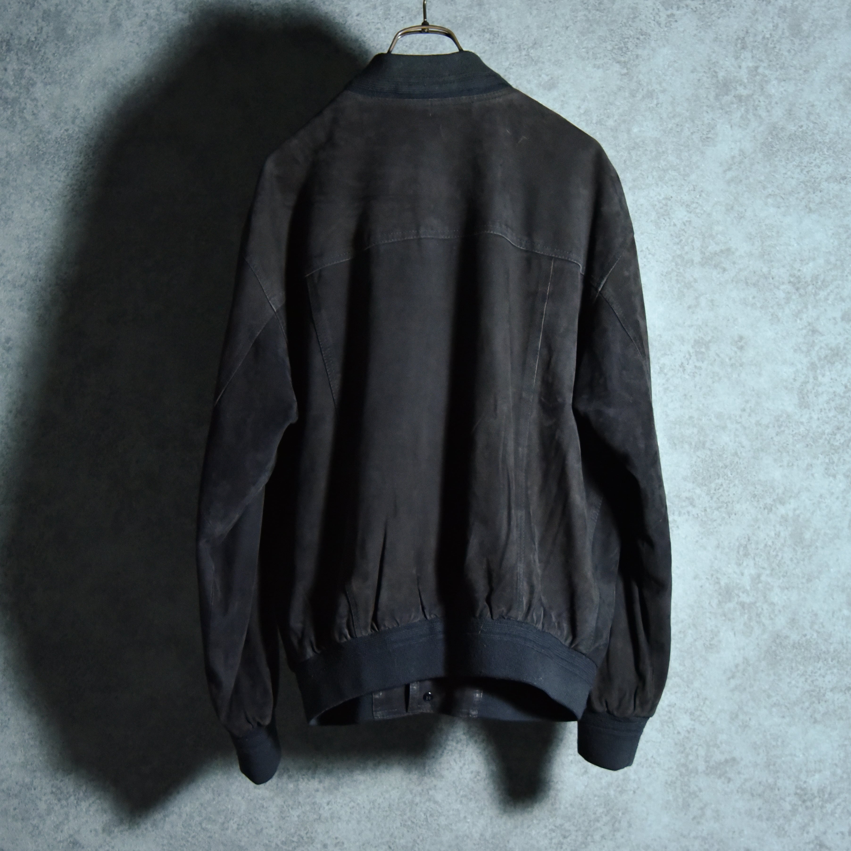 90s Italian Suede Leather Bomber Jacket VERA PELLE Black スエード レザー ボンバージャケット