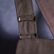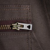 ジップやベルトのアジャスターの燻んだゴールドと身生地のブラウンの配色が魅力的なヴィンテージらしいアイテム。