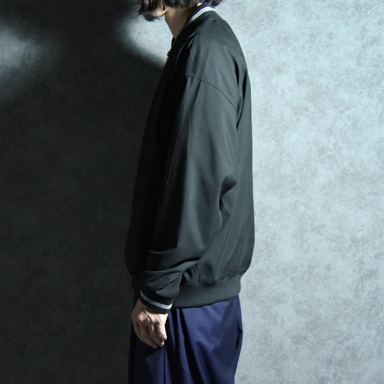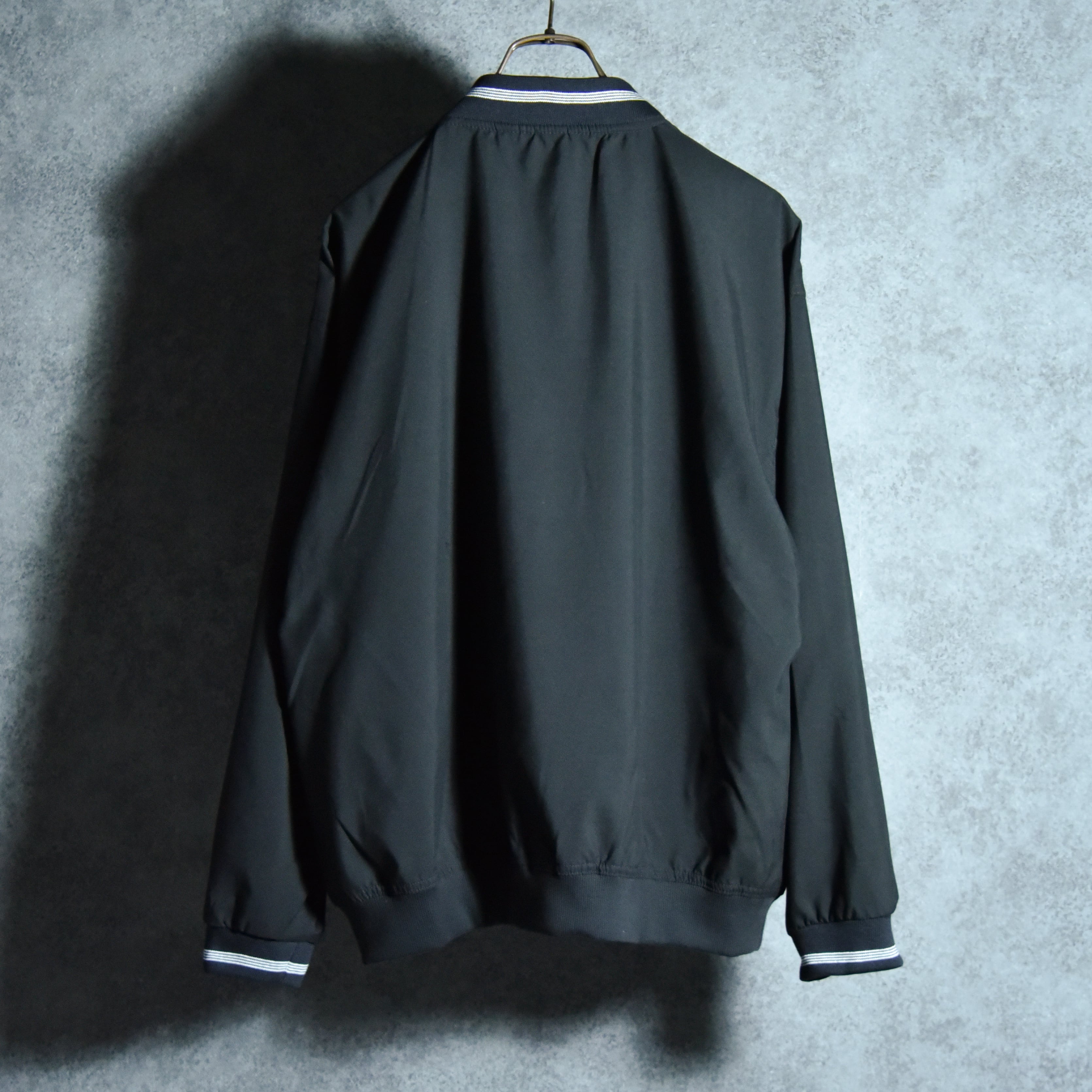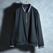 首元のハーフジップと袖口のリブはライン入り、裾はソリッドのリブが採用されているなど、無機質な雰囲気の中にクラシックスポーツのニュアンスが丁寧に配置された良デザイン。