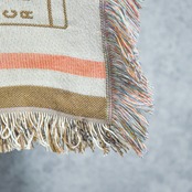 ブランケットとラグの中間的な重さのため、大判のブランケットとして室内での膝掛けや肩掛けに使ったり、ソファや床に敷くこともできるユーティリティなアイテムです。