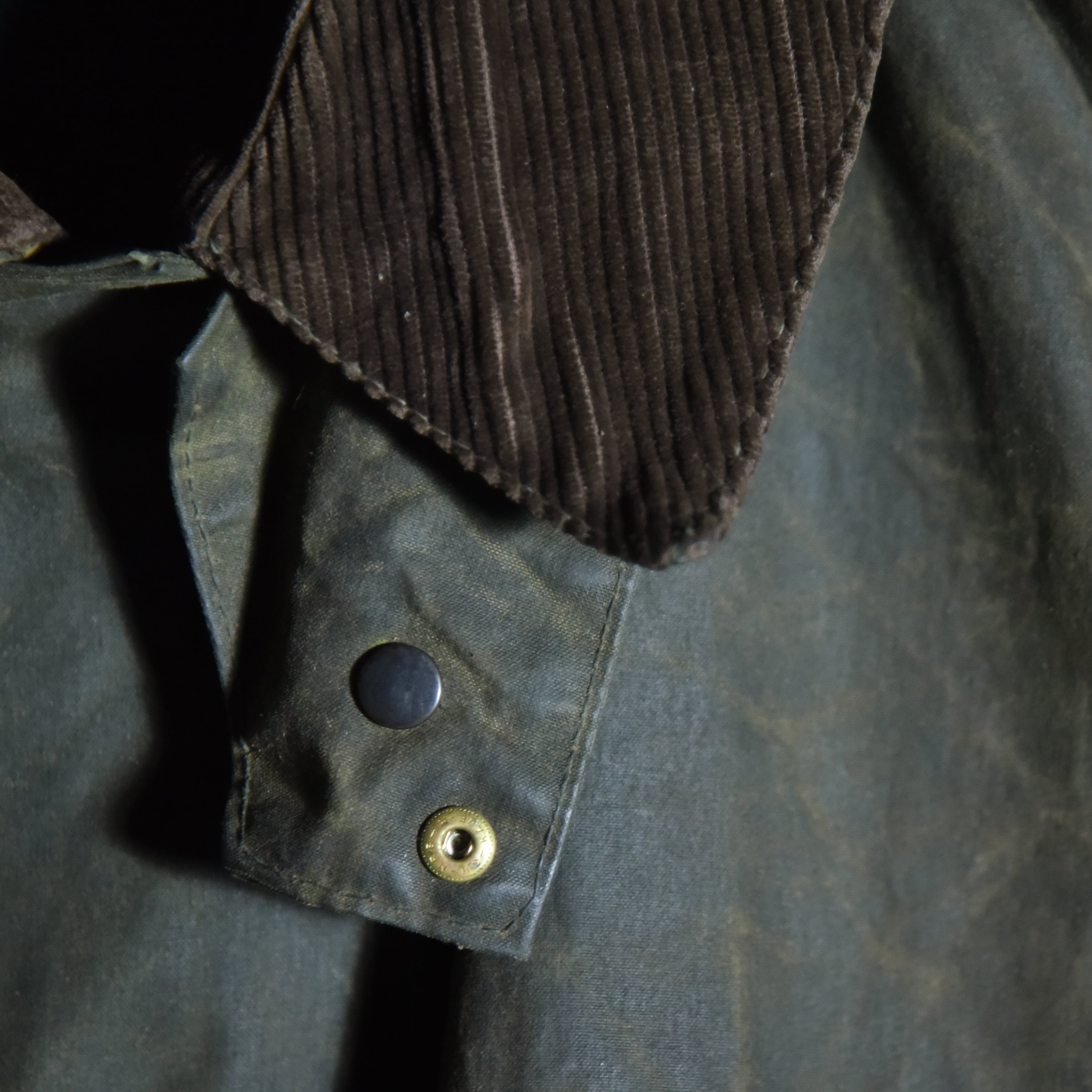 アウトドアやフィッシングなど、ハードな用途で着用されるため、状態の良いものになかなか出逢えないヴィンテージバブアーですが、こちらは袖口などの擦れ、背面に右下に8mm程度の生地裂けはあるものの、その他コンディションの良い一着です。
