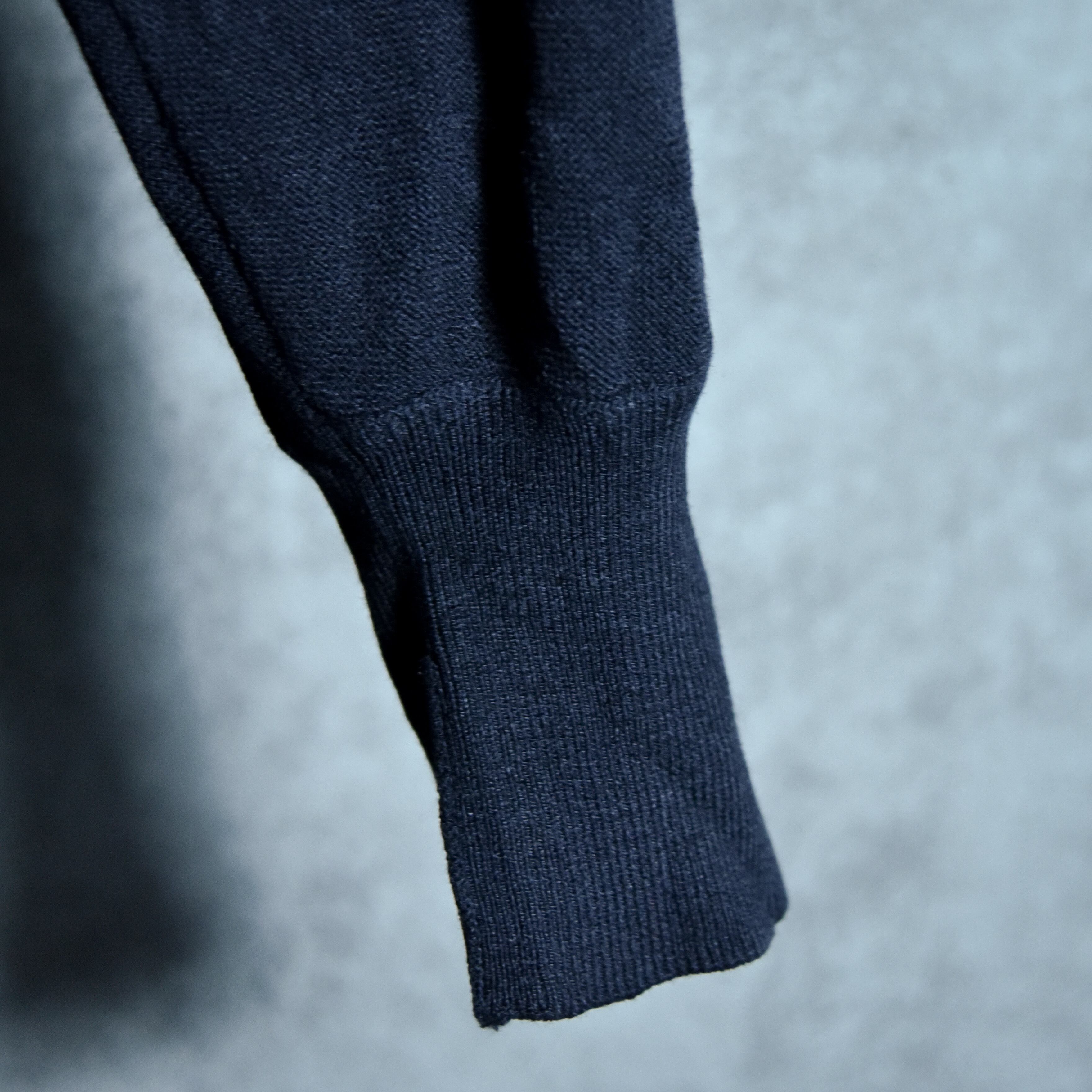 天竺裏目使いの90年代以前によく見られるアクリルセーターで、安定した物性とドライな手触りが魅力の一着。