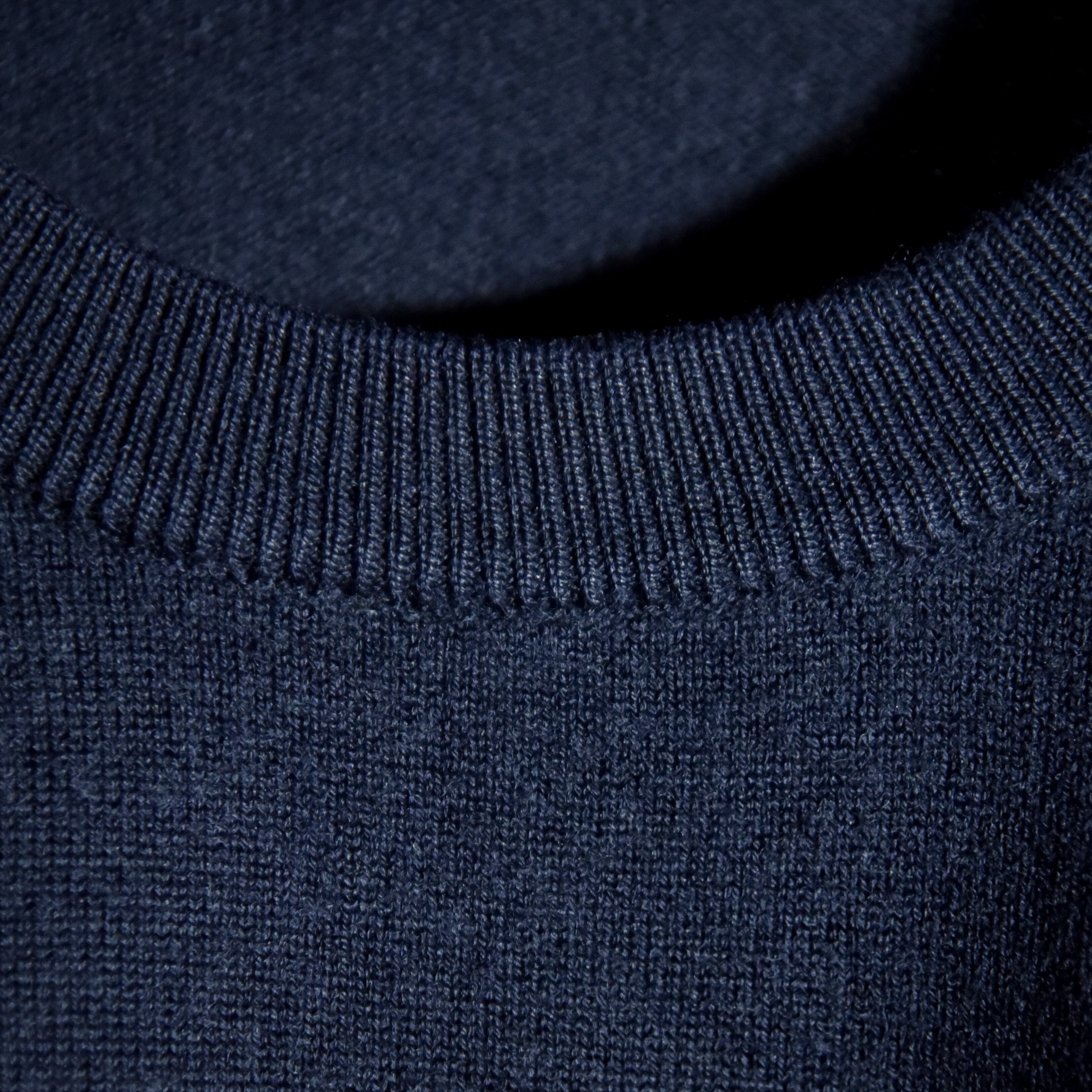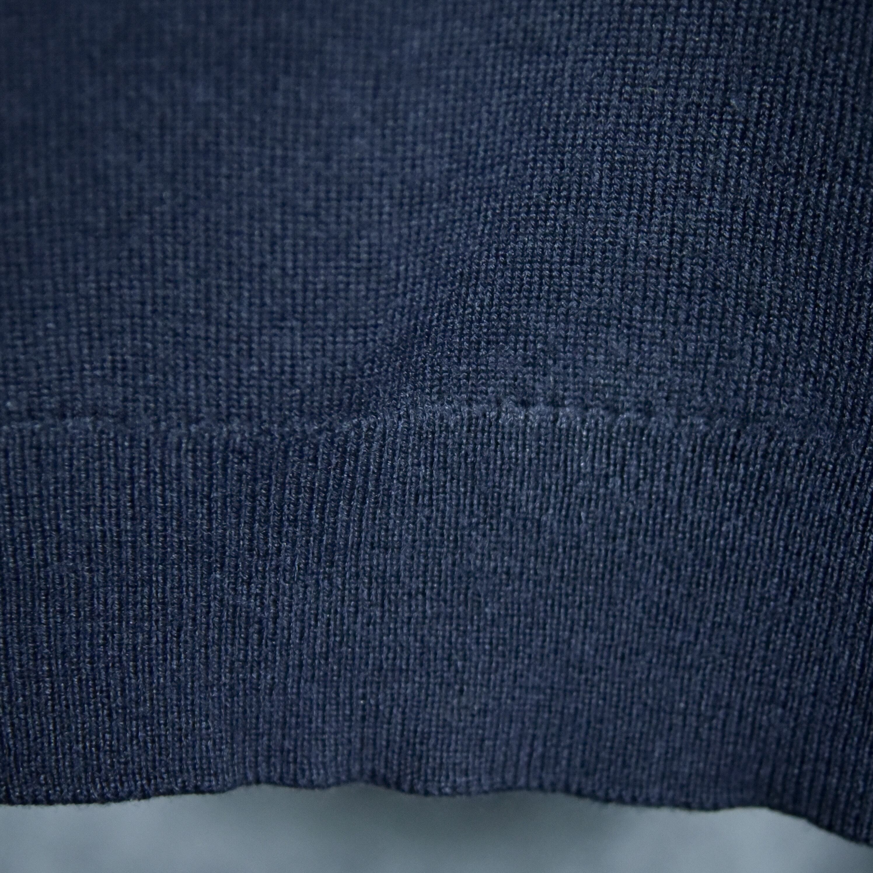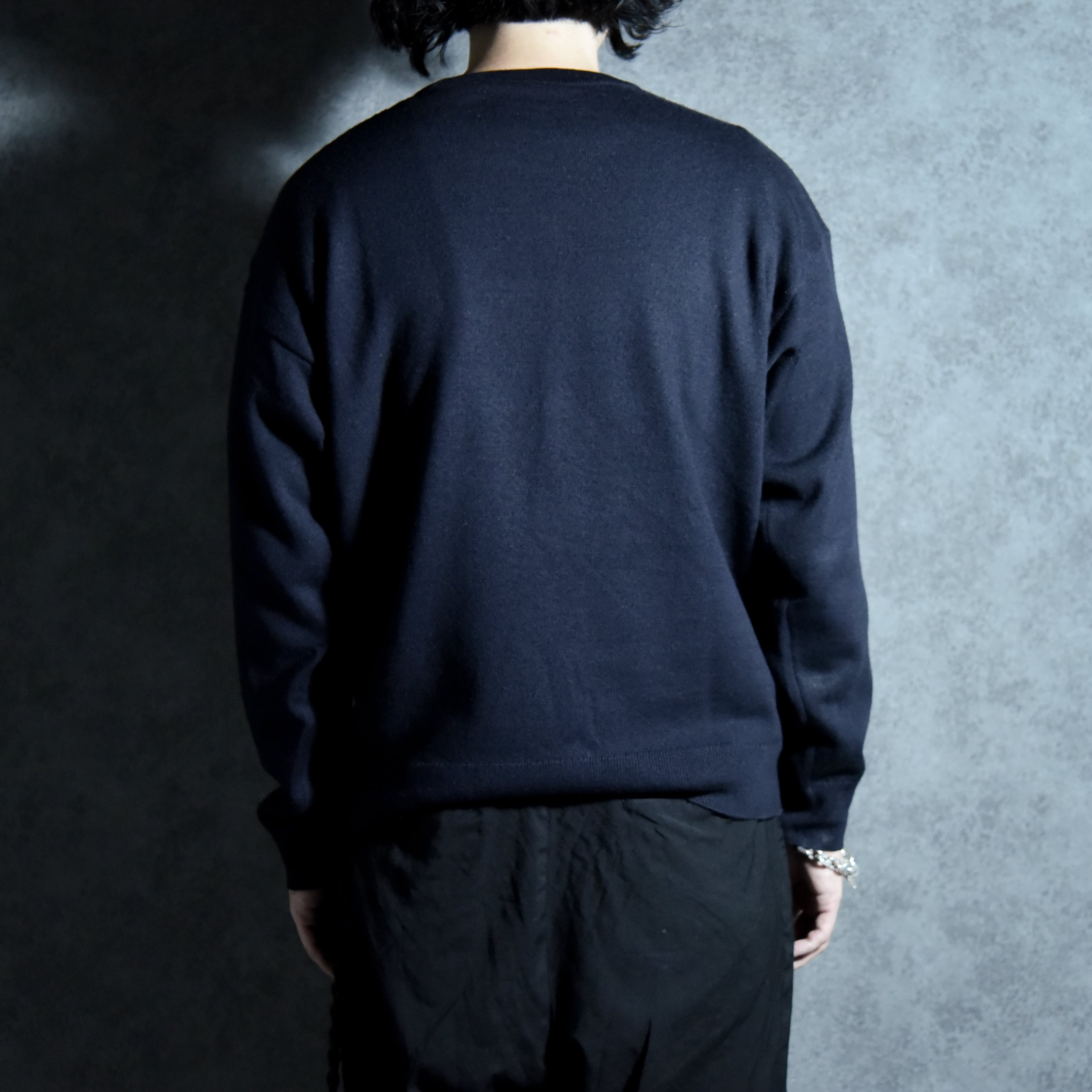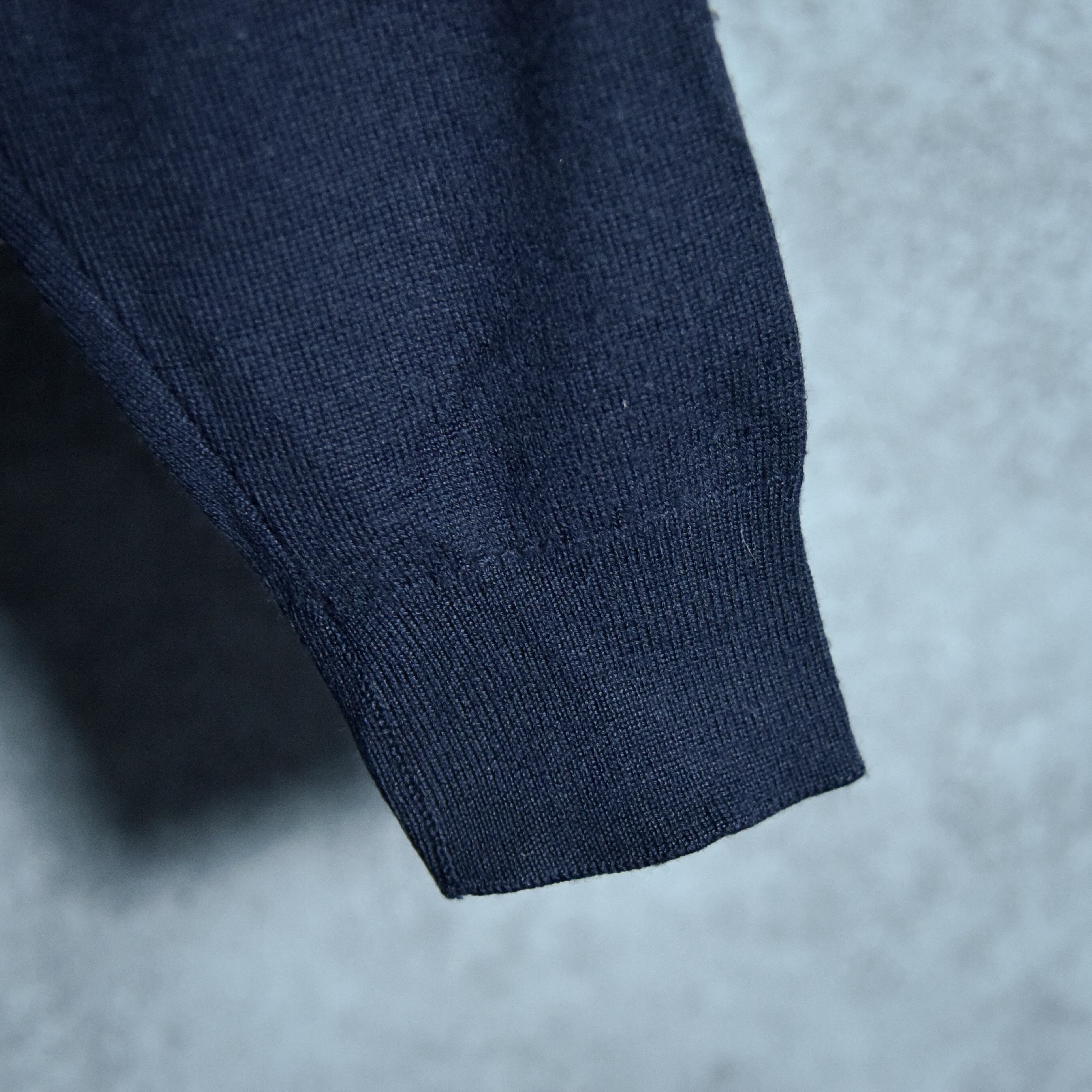非常に綺麗な目面の編み地で、ウールの温かみとアクリルの安定性を兼ね備えた、実用的な組成の一着です。