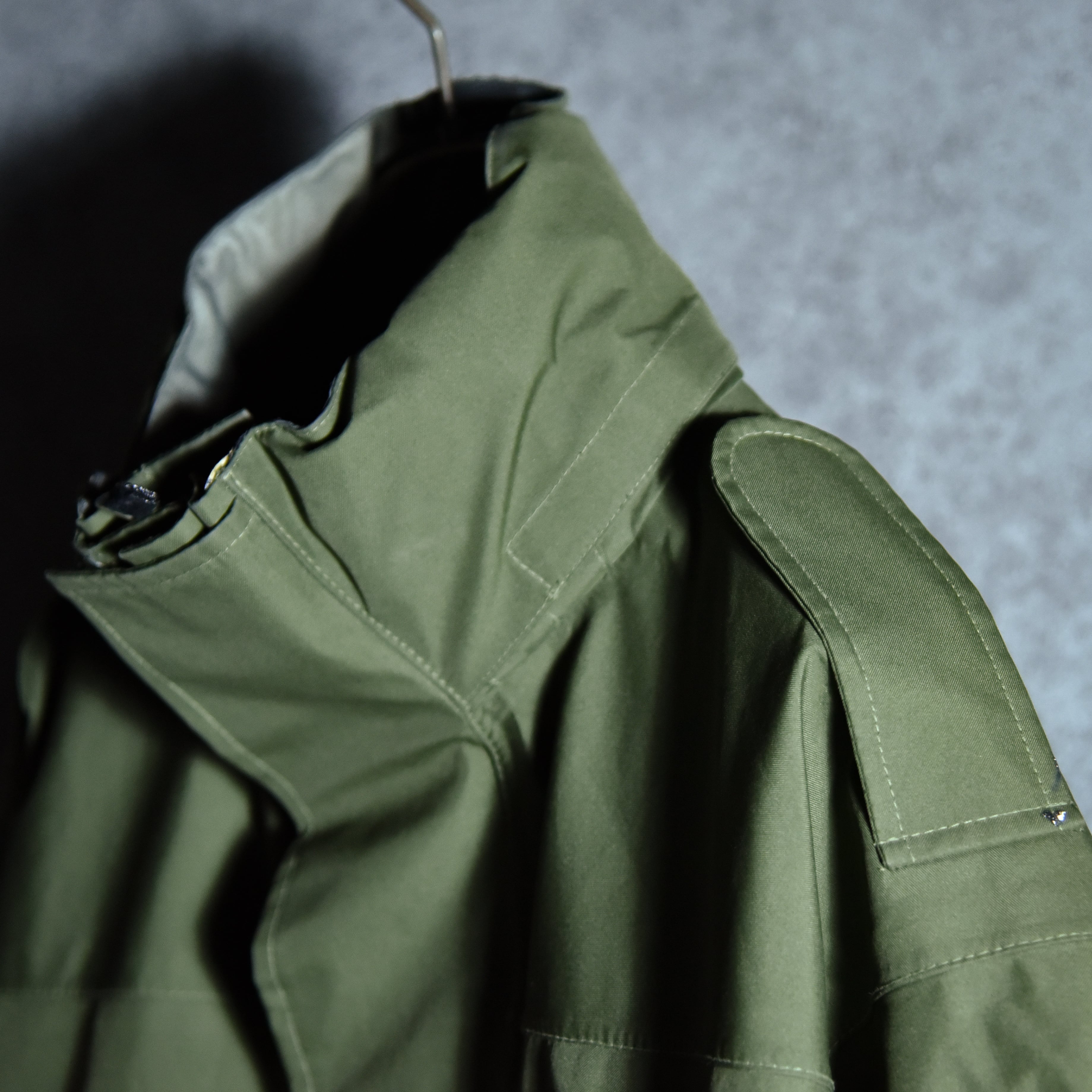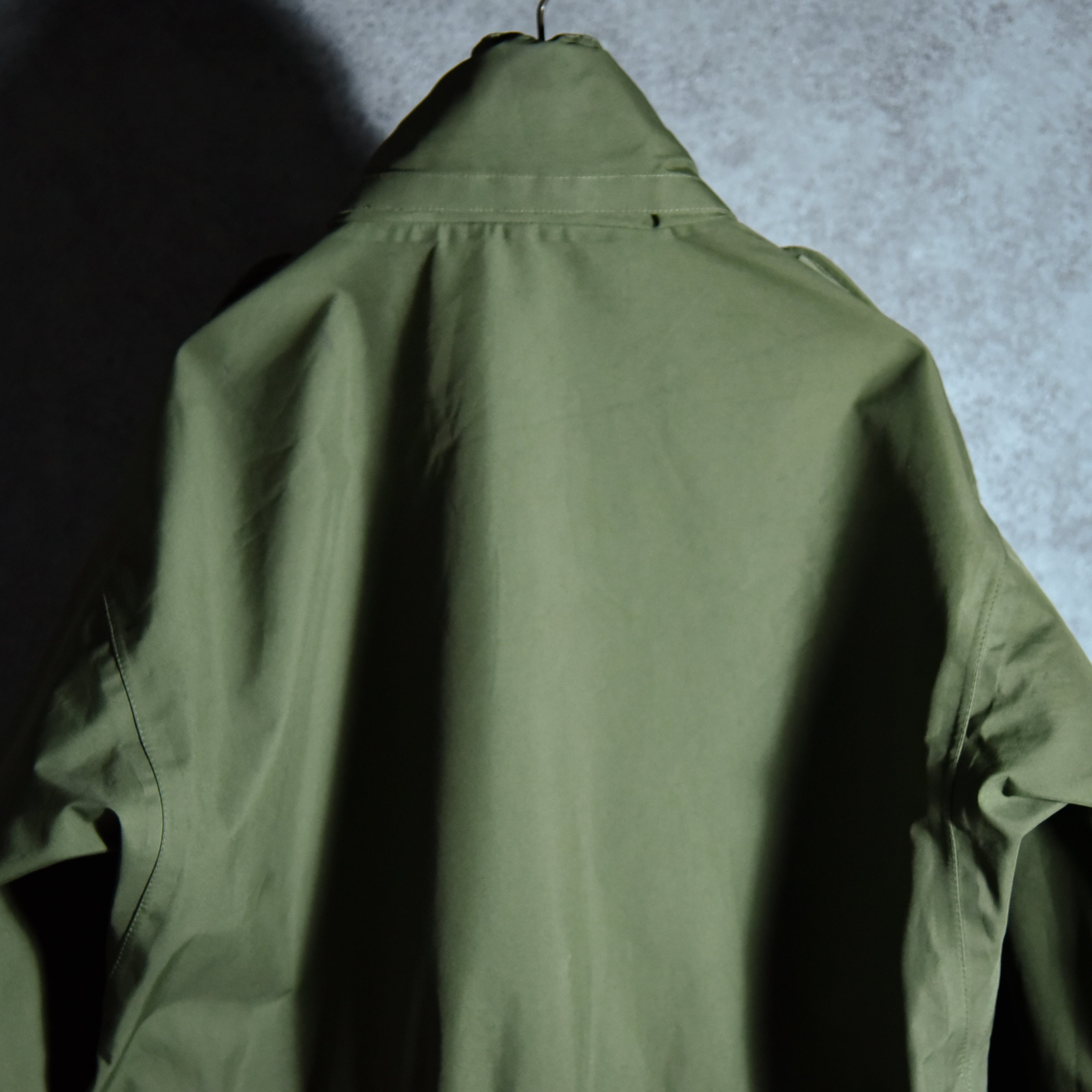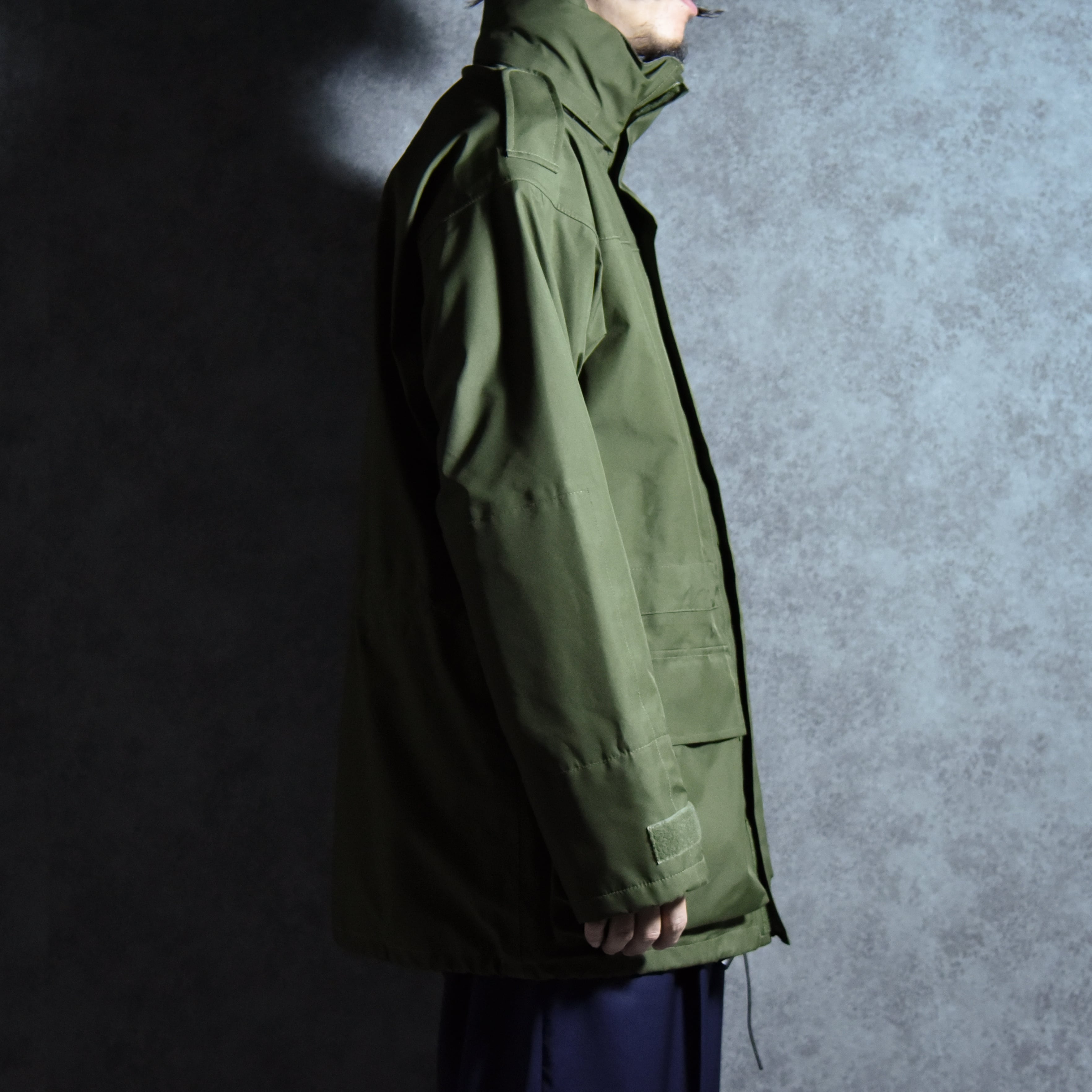 イギリスの海兵隊で採用されていたモデルで、ナイロンボディに浸透防水性フィルムをボンディングし、さらに防水テープで全てのシームを処理した、ゴアテックスと同等の機能を有した近代ミリタリーの技術を惜しみなく注ぎ込んだ名作です。