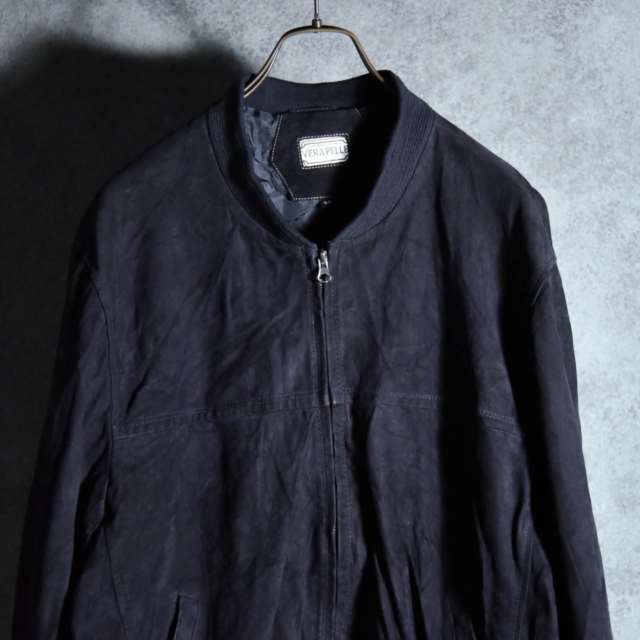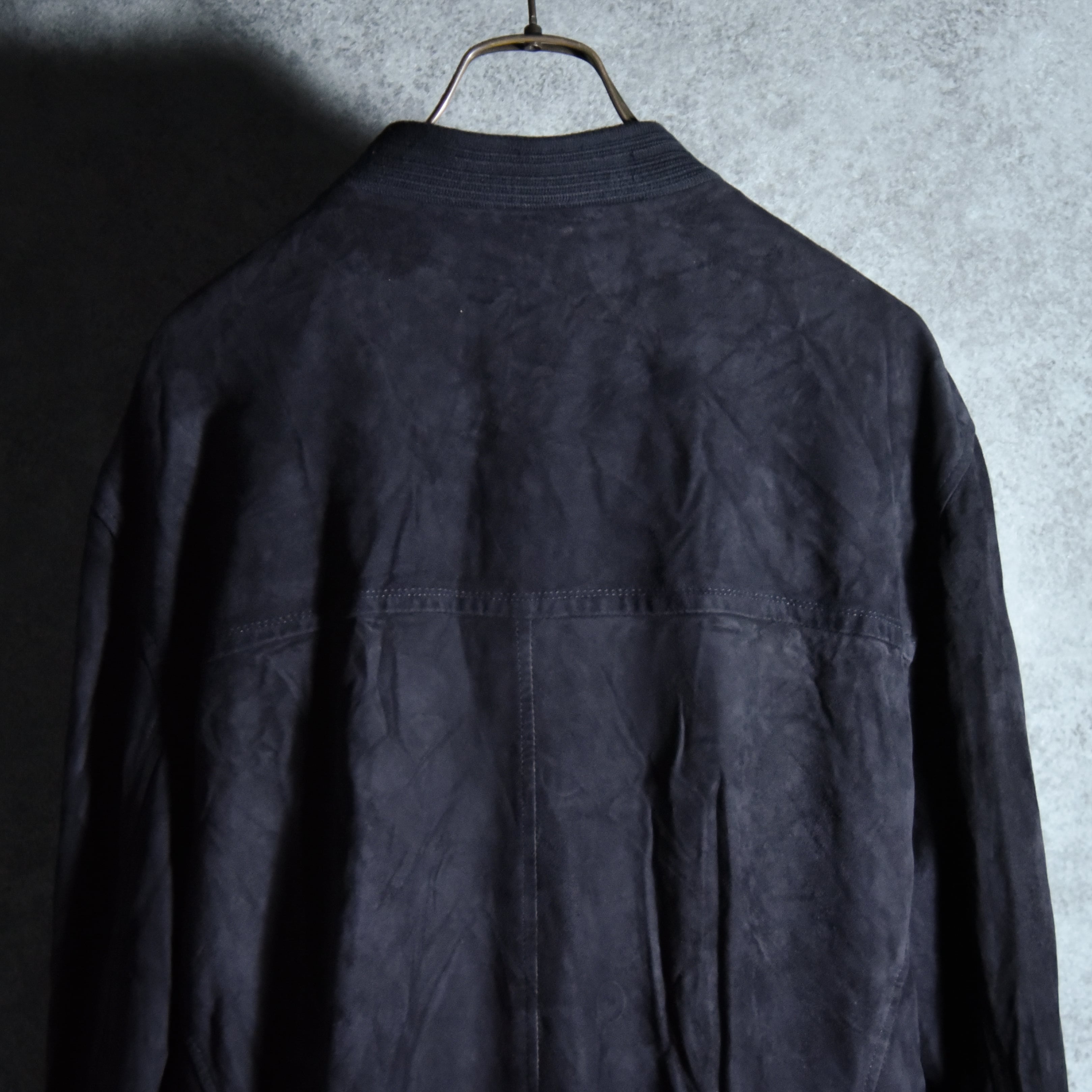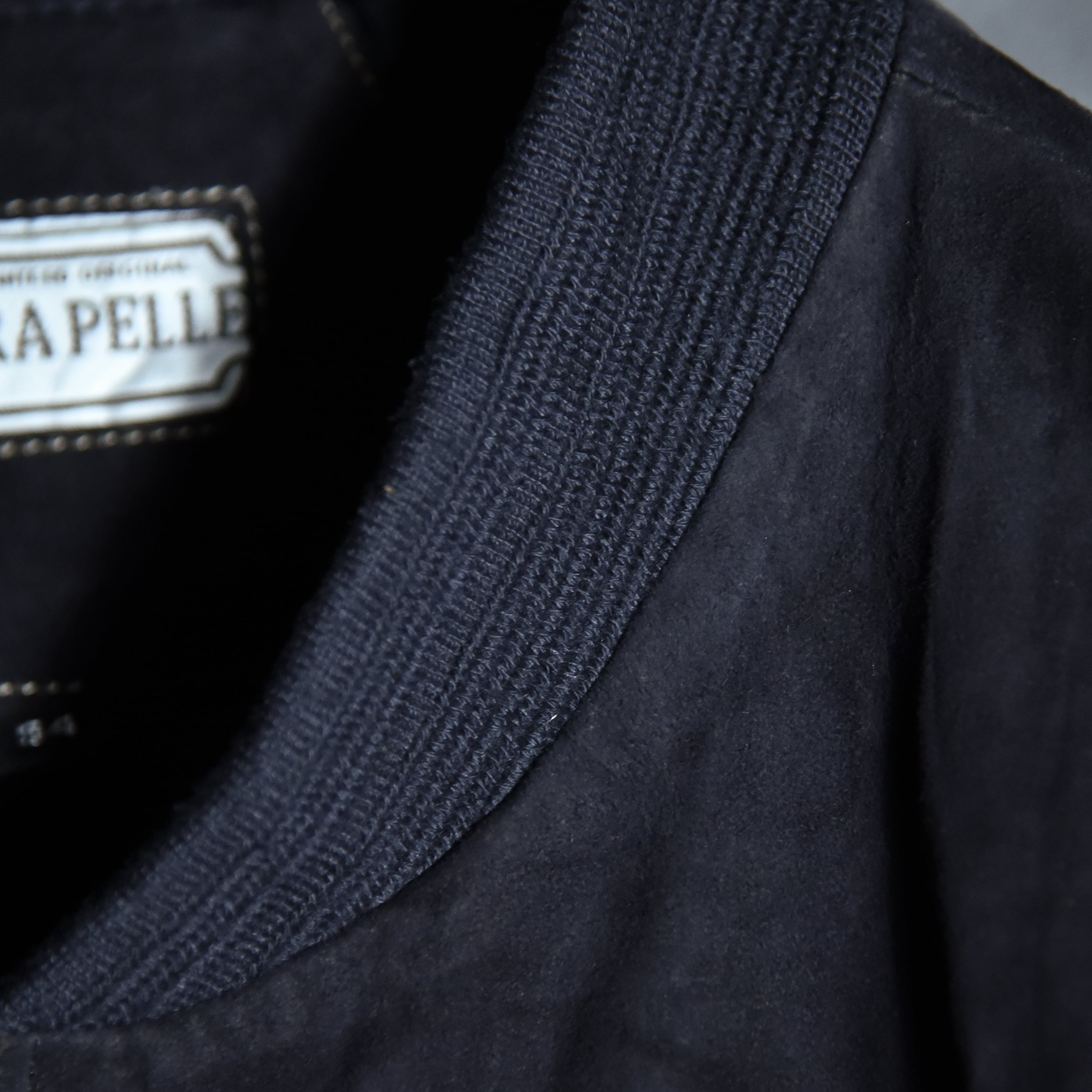 90s Italian Suede Leather Jacket VERA PELLE Black スエード レザー ジャケット 013
