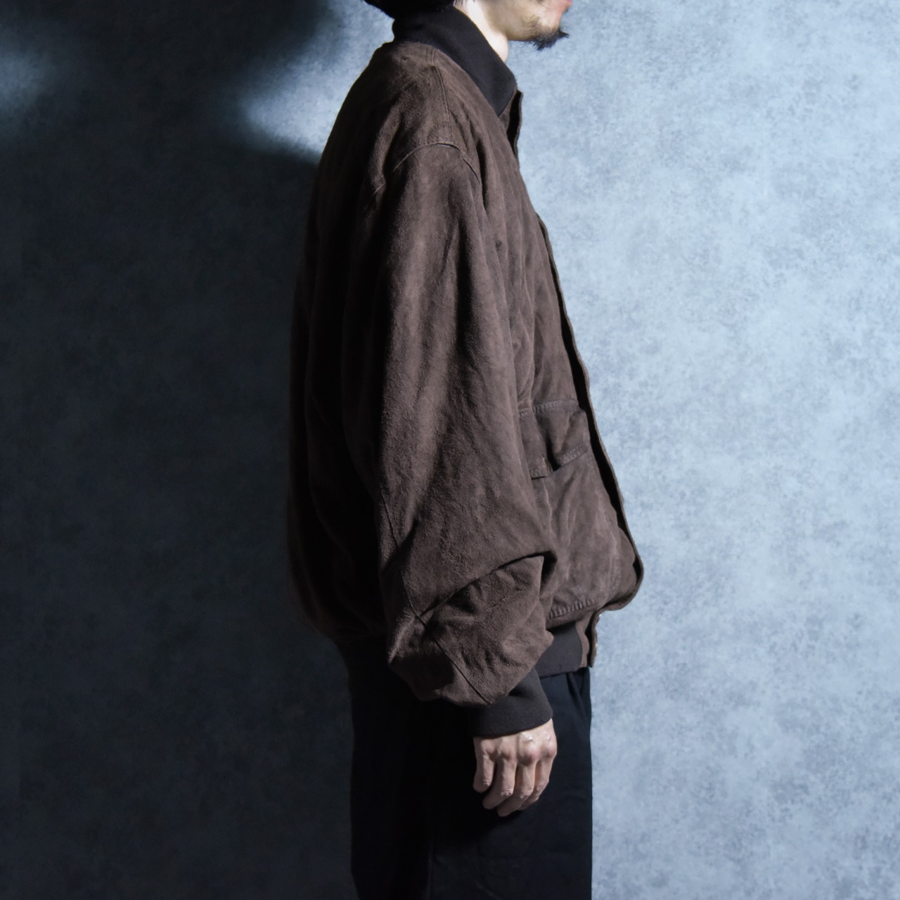 90s Italian Suede Leather Jacket VERA PELLE Dark Brown スエード レザー ジャケット 014