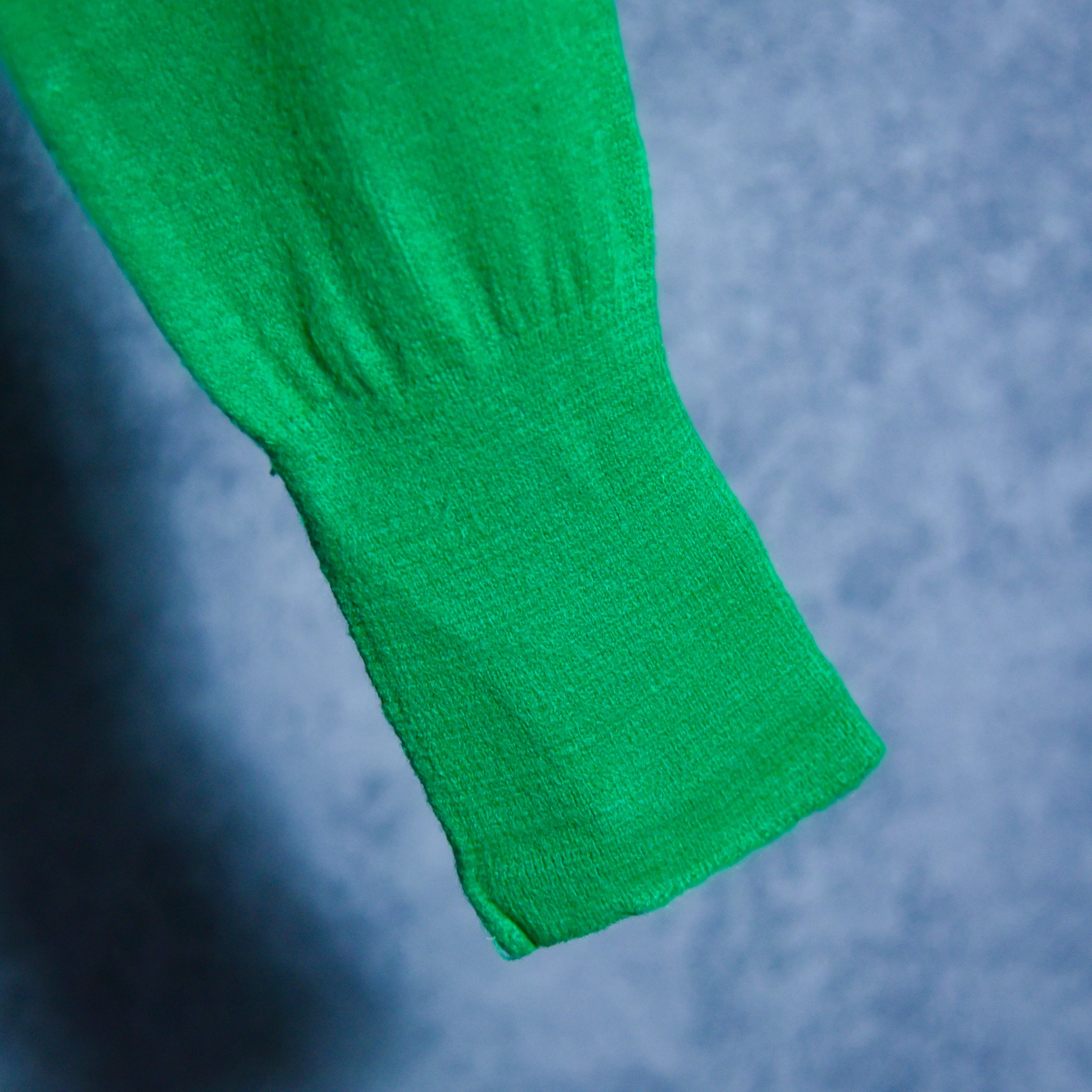 ラコステを象徴するような鮮やかなグリーンは当時のアクリルの風合いも相まってヴィンテージらしい一着。