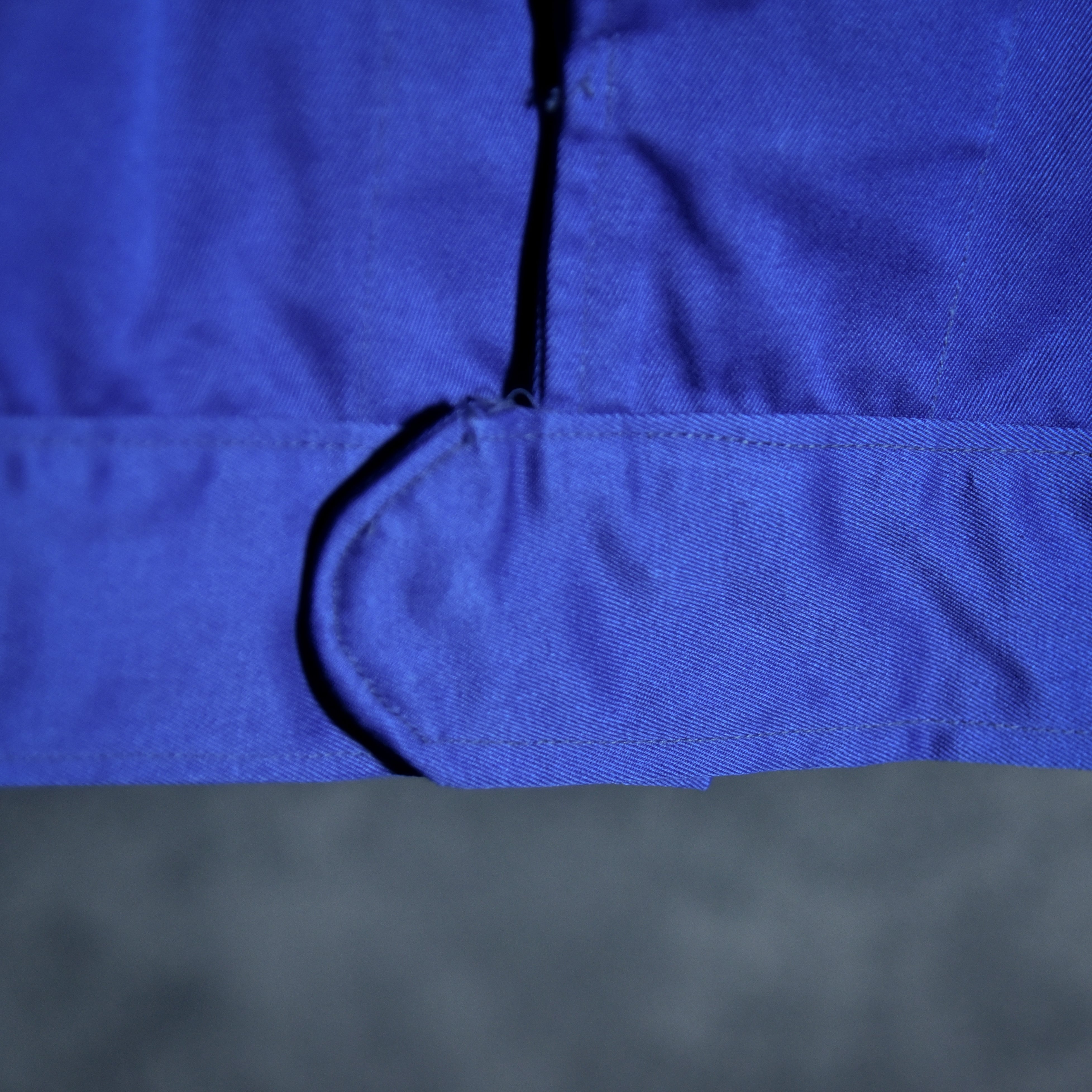 簡素とはいえ比翼になった前立てや持ちだしの付いたウエストベルト、フラップ付きのWパッチポケットなど、使い勝手やデザイン性に優れたディテール満載の一着です。