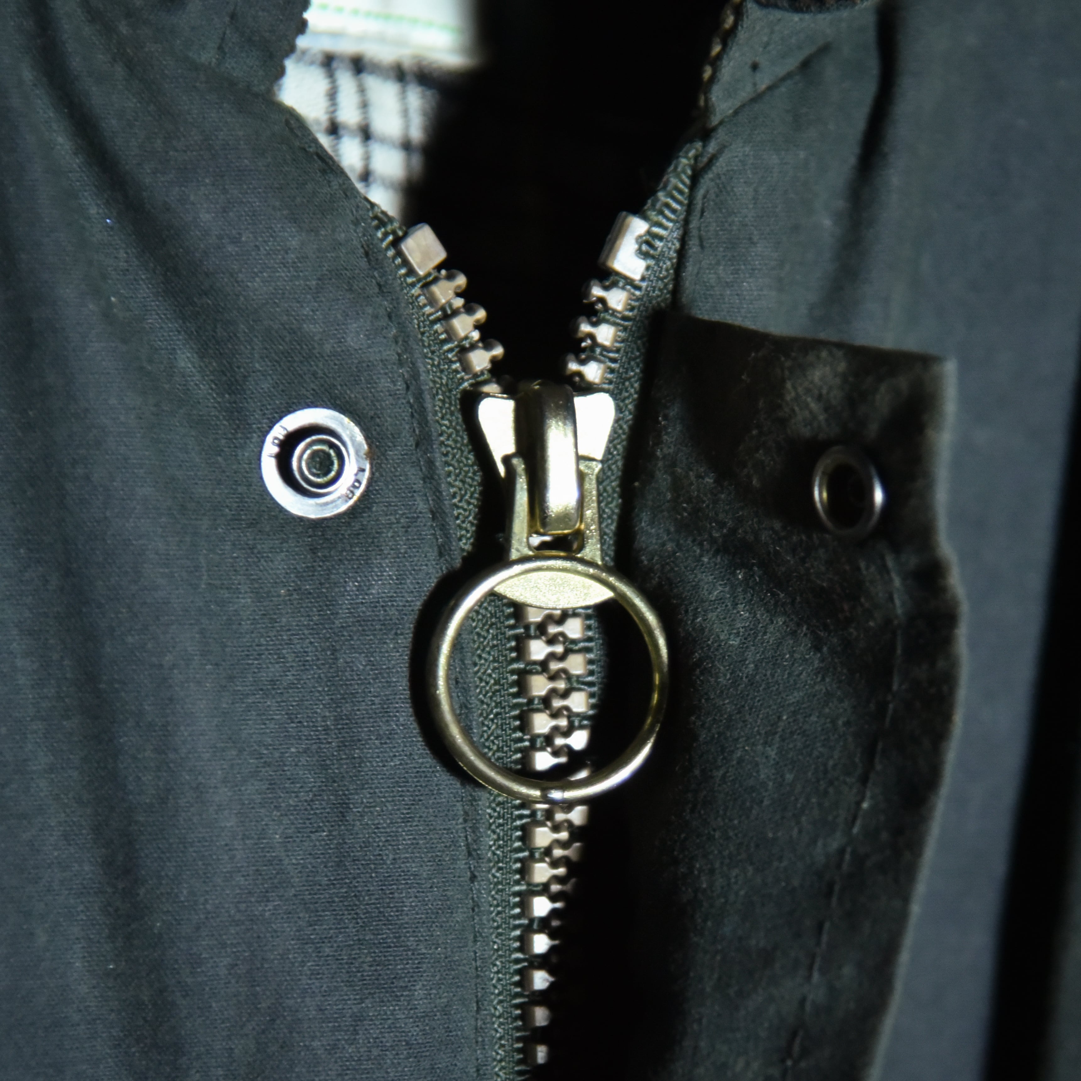 イギリス定番のオイルドハンティングジャケットの袖をそのまま切り取った様なデザインで、ハンドウォーマーや大きな腰ポケット、フロントのドットボタンとジップフライなどオーセンティックなディテールを完備。