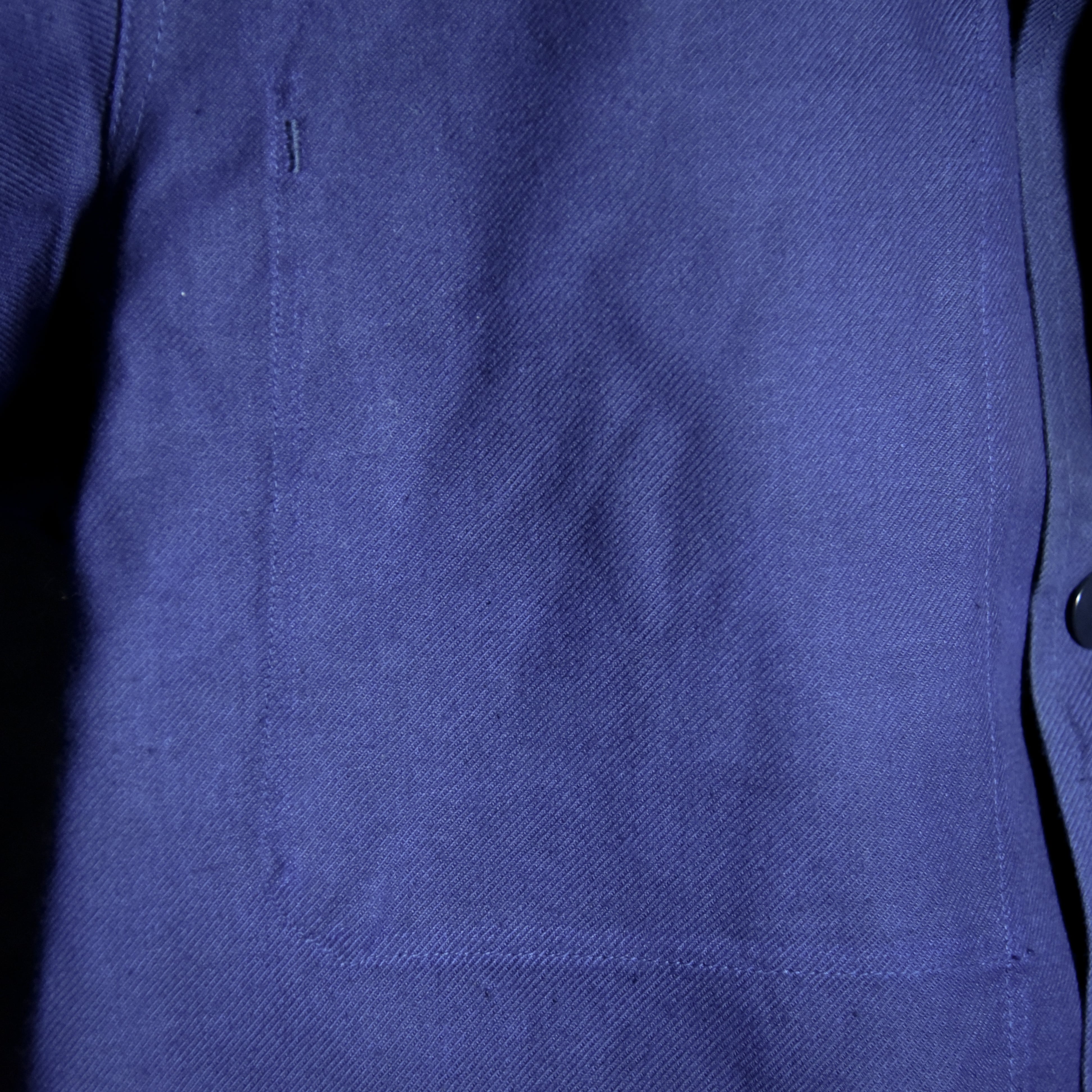 丸みのある襟に3パッチのポケット、右胸の内ポケットなど、この年代ならではのディテールが目を惹きます。