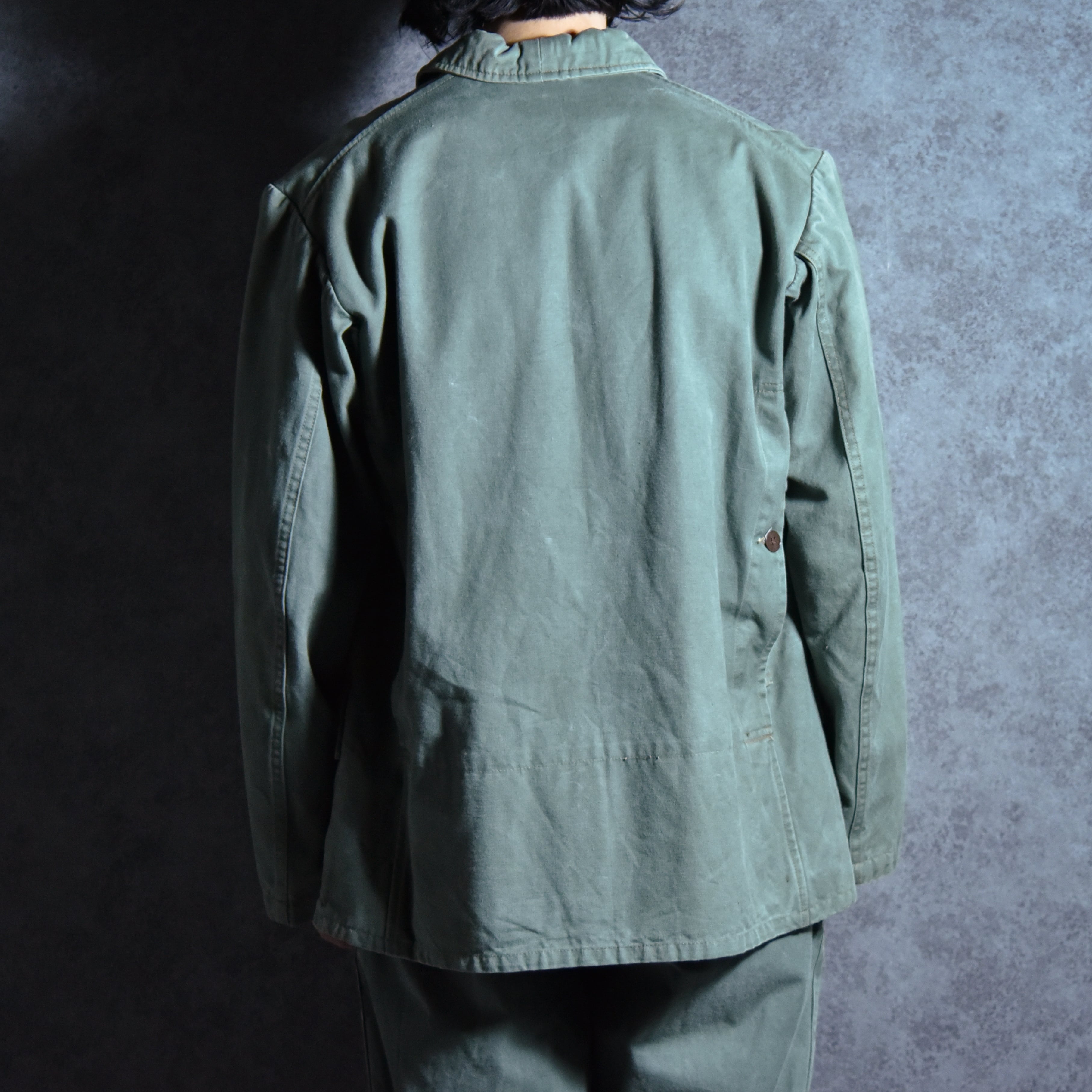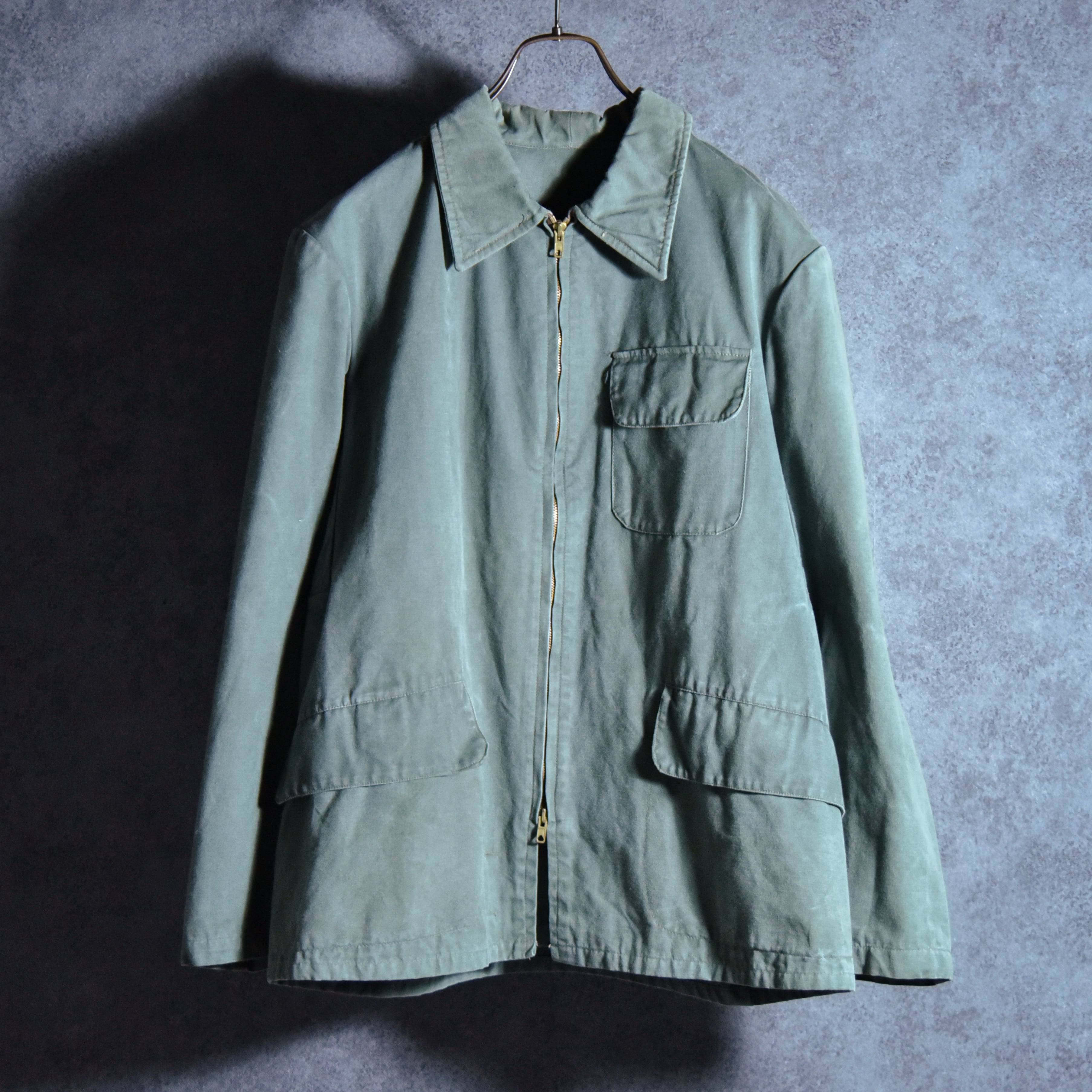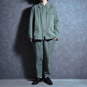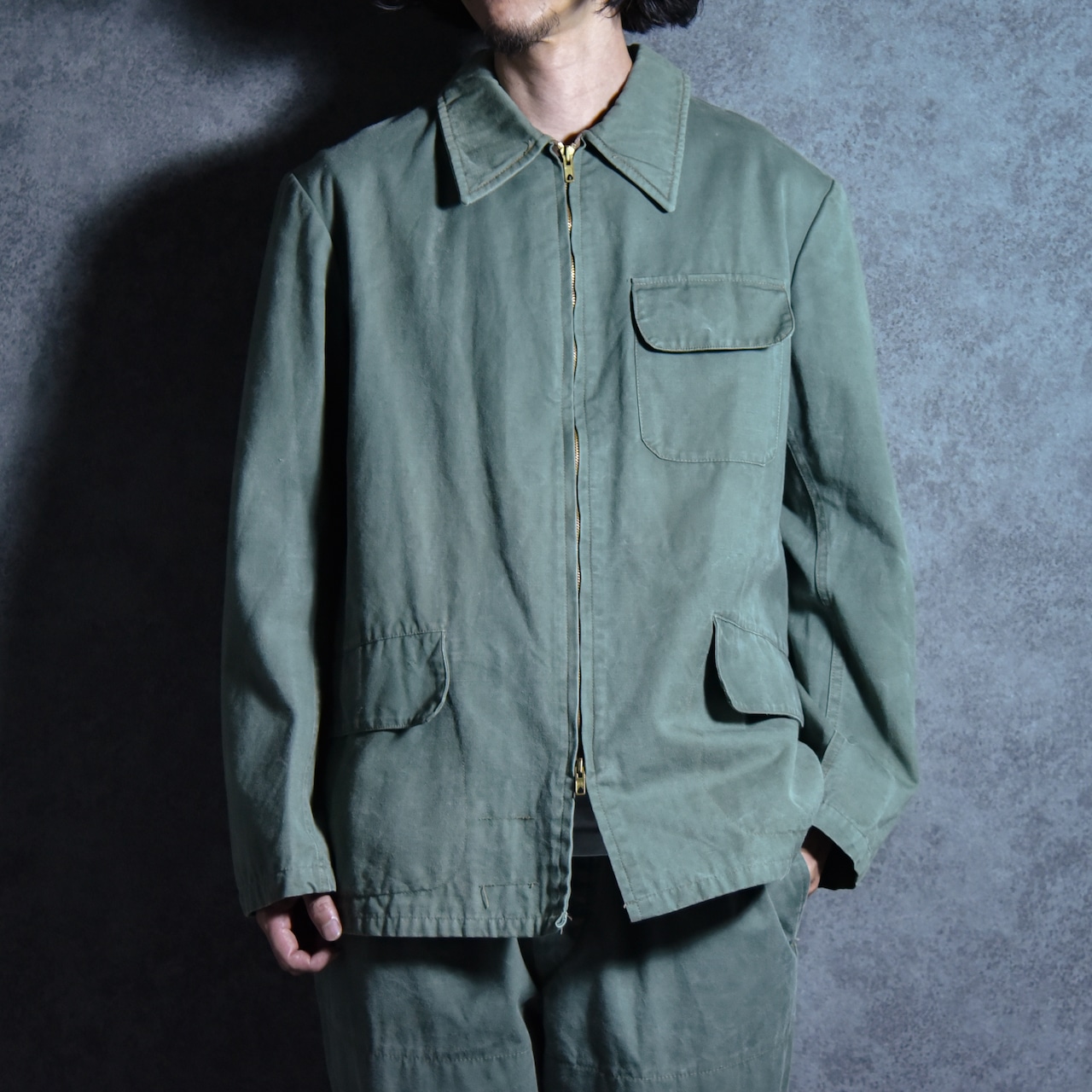フランスでは、ワークウェアがファッションとして再評価される以前から、実用性と耐久性を兼ね備えた日常着として広く用いられており、こちらのジャケットもまた、その背景を物語る資料的価値も高く、ハンティングブルゾンがパンツと合わせてセットアップで出てくることもあまりない貴重な一着。