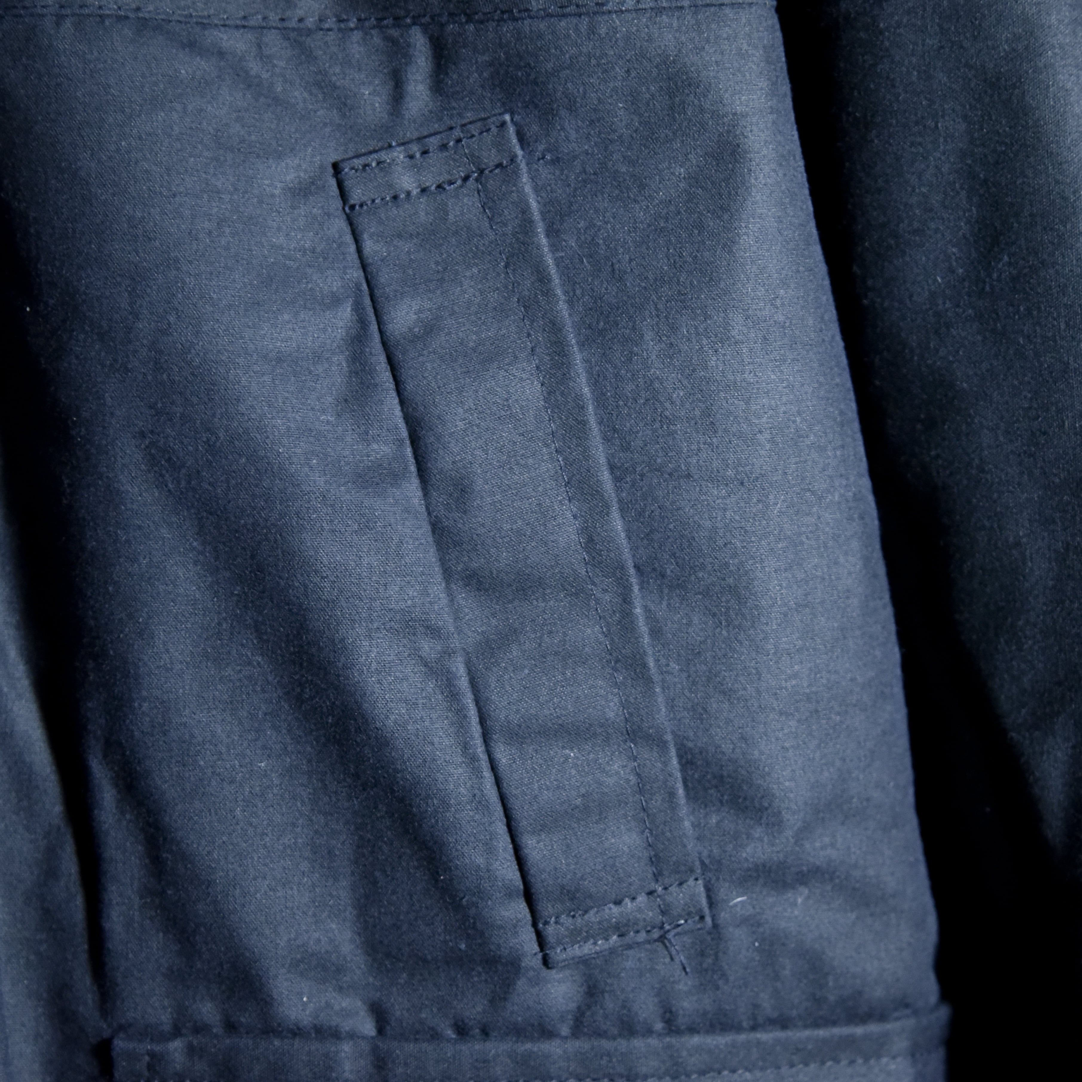 生地はしっかりとしたオイルドコットンで、裏地は英国らしいタータンチェック、さらに薄手の中綿も入っているため、防寒性、防風性は抜群です。