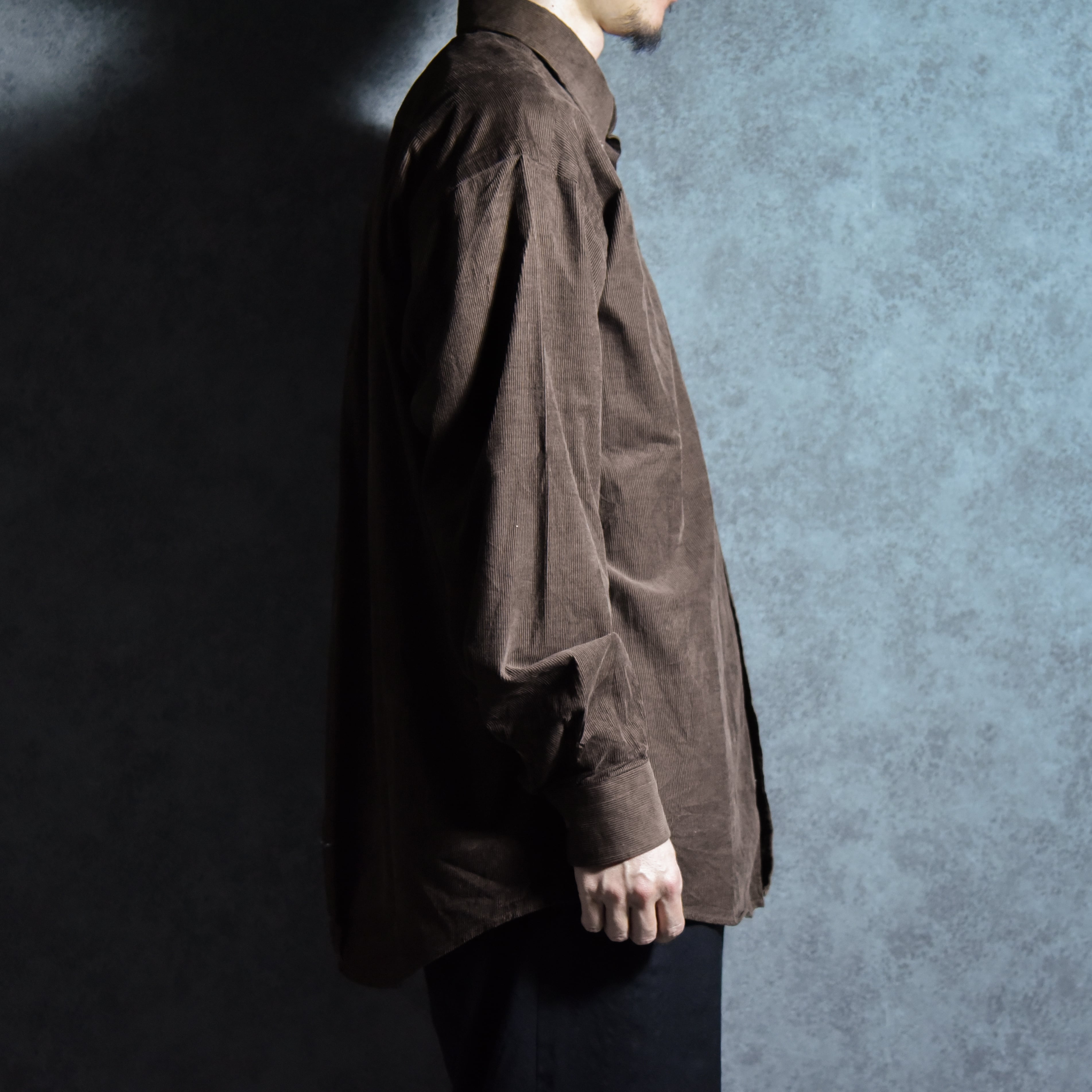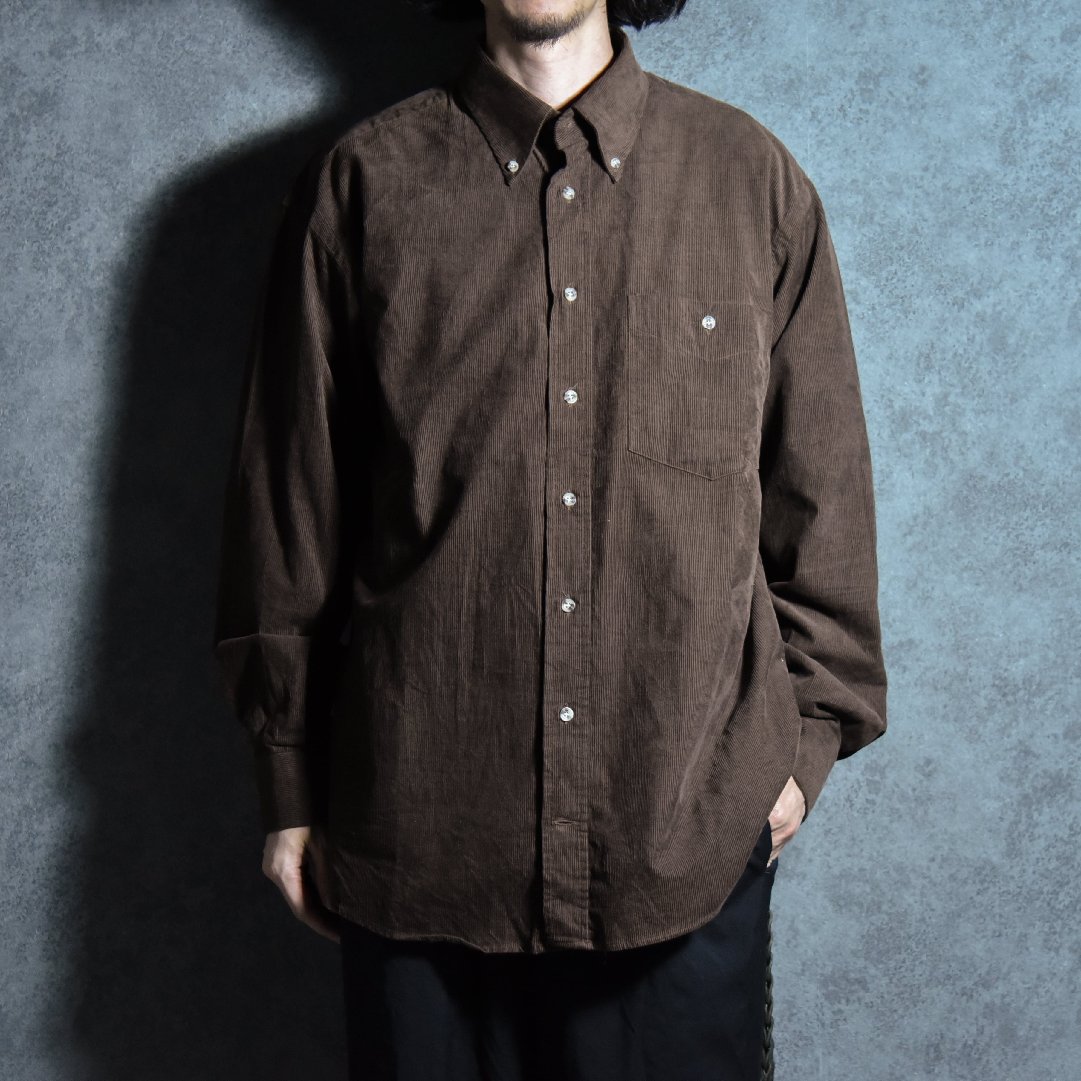 生地はオイルドに次いでブランドイメージのブラウンのコーデュロイでデザインはベーシックなボタンダウン。