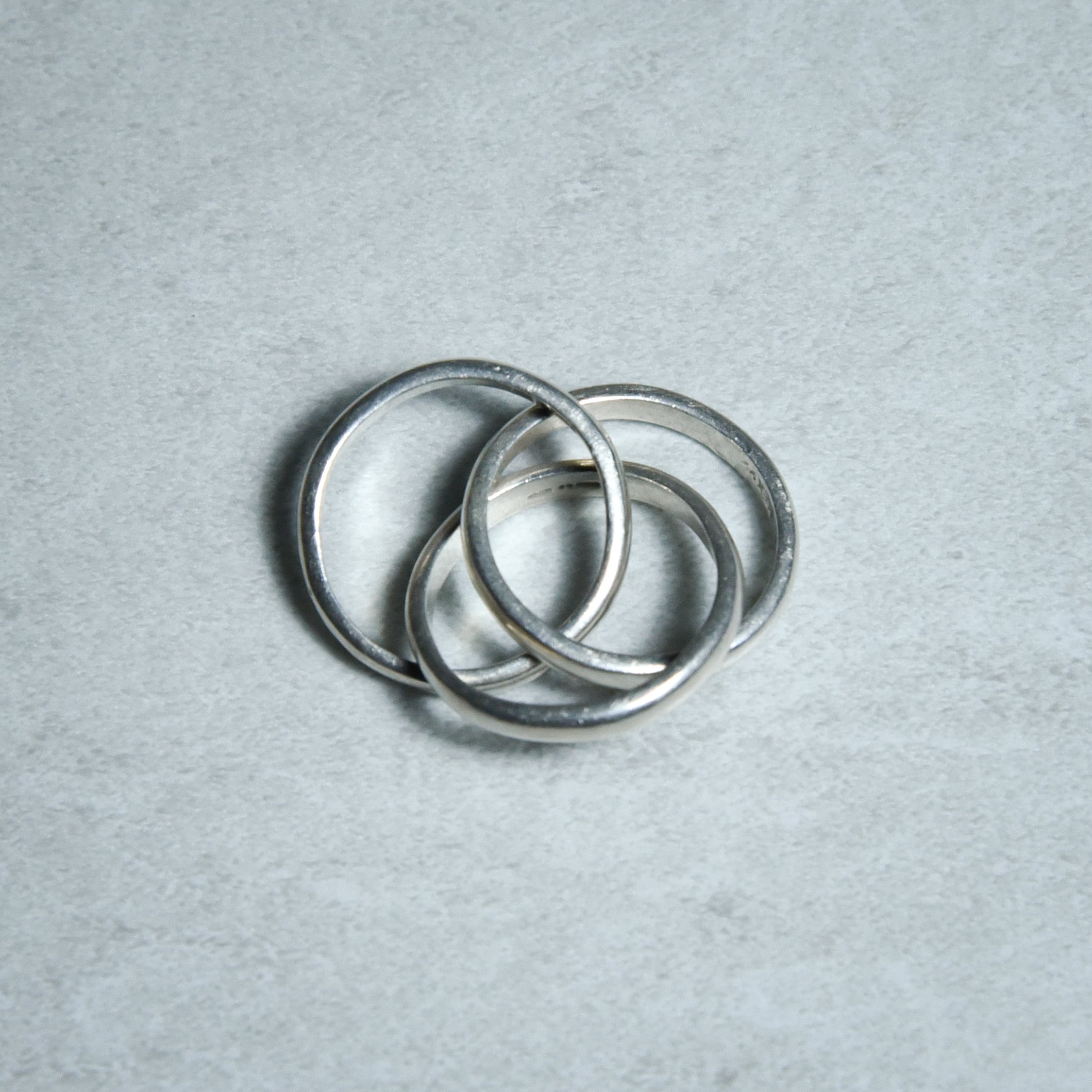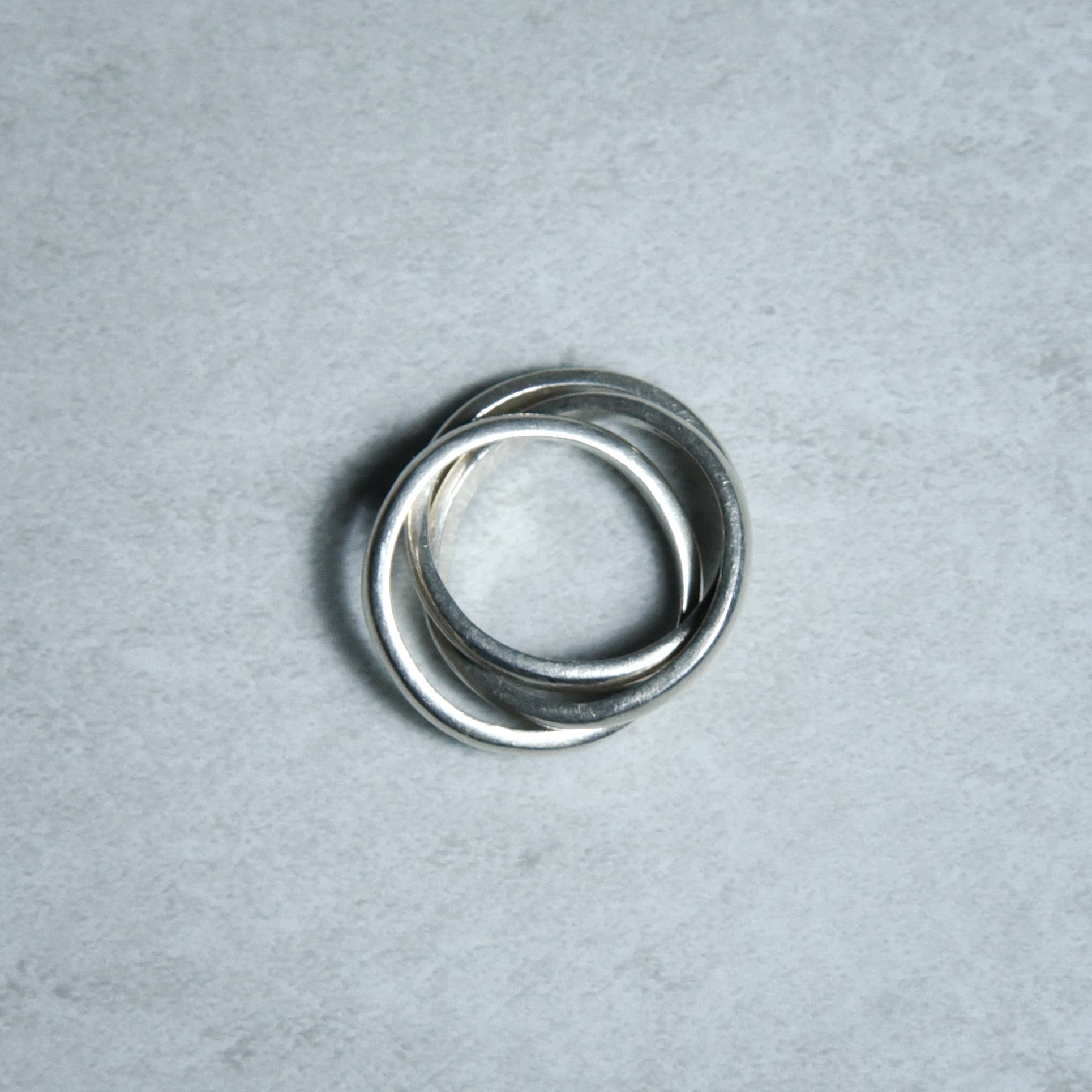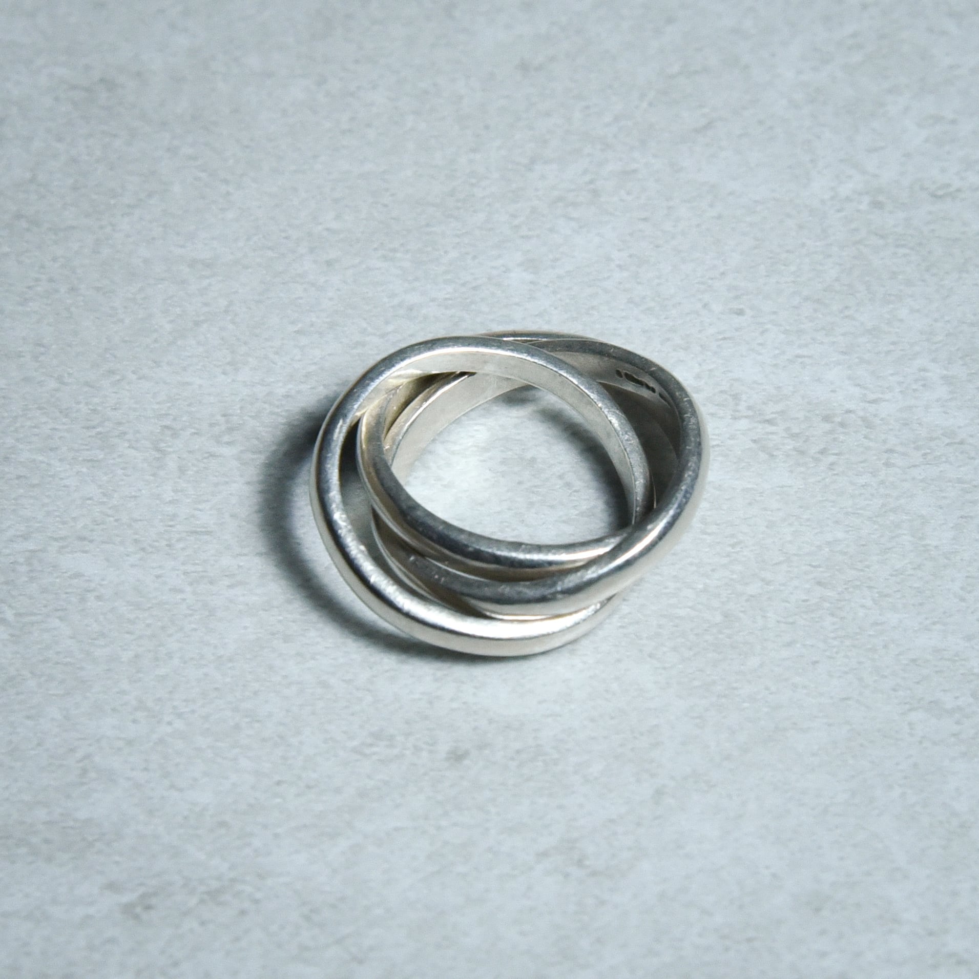 3つのシルバーリングが絡み合うトリニティスタイルのリングでヴィンテージのメキシカンジュエリーではあまり見かけないデザイン。