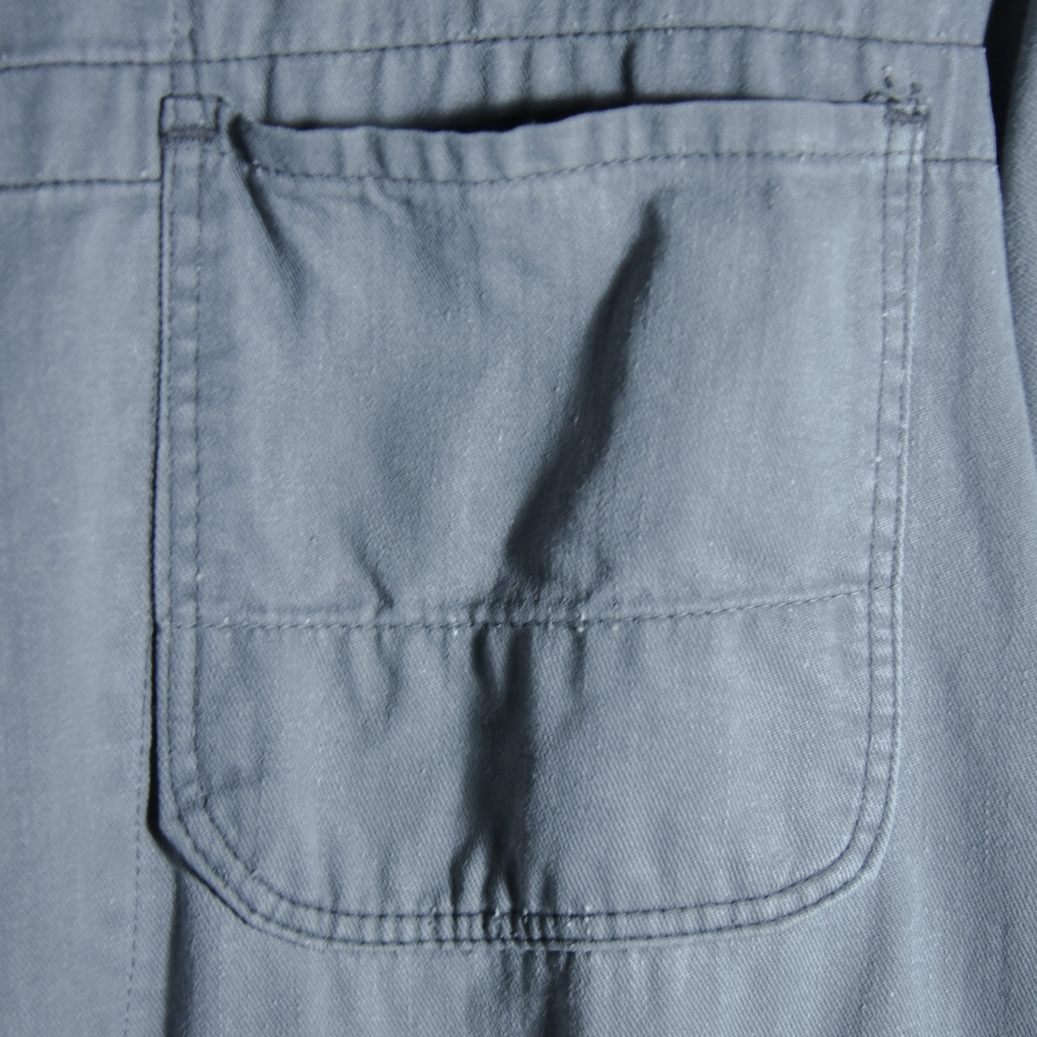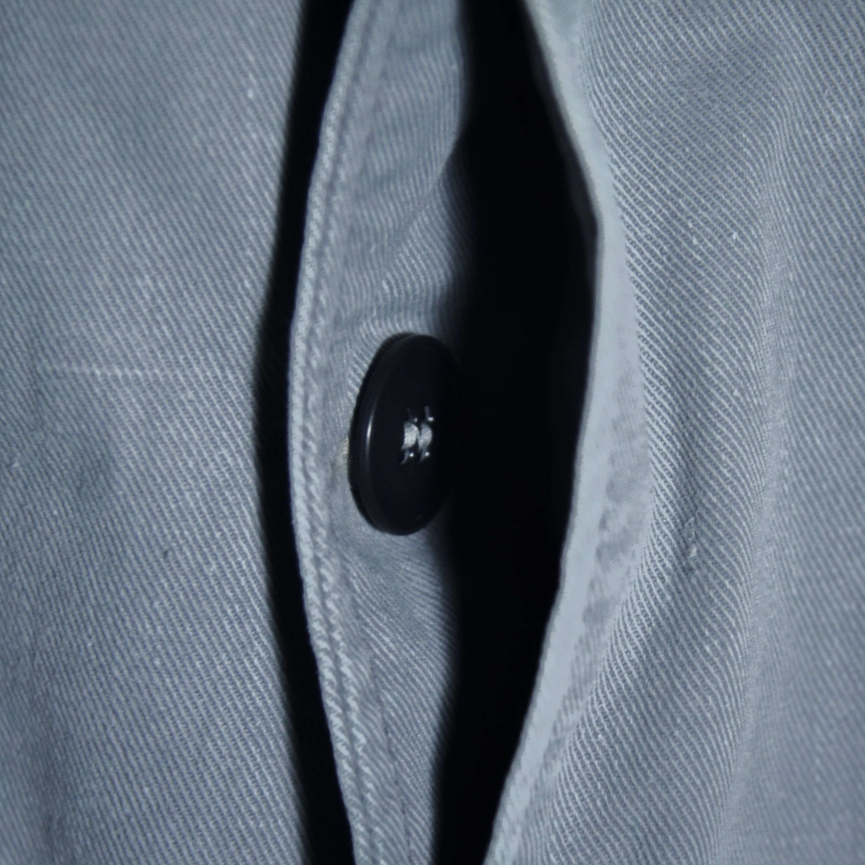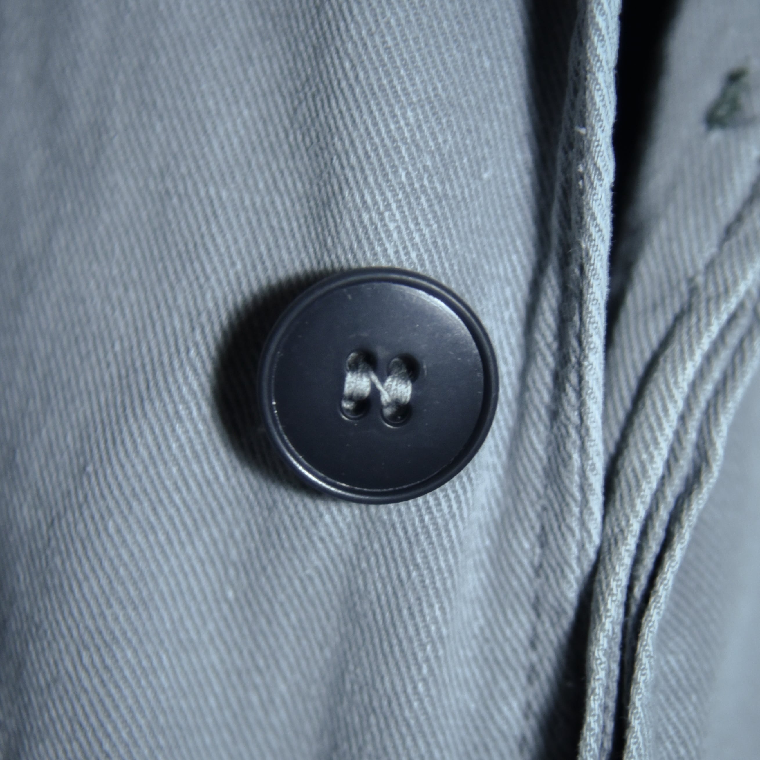 ディテールから推察するにおそらく同年代のドイツで作られたもので、比翼仕立てのフロントにスリーパッチポケット、腰にはベルトが付き、ハンガーループを備えたオーセンティックな一着。